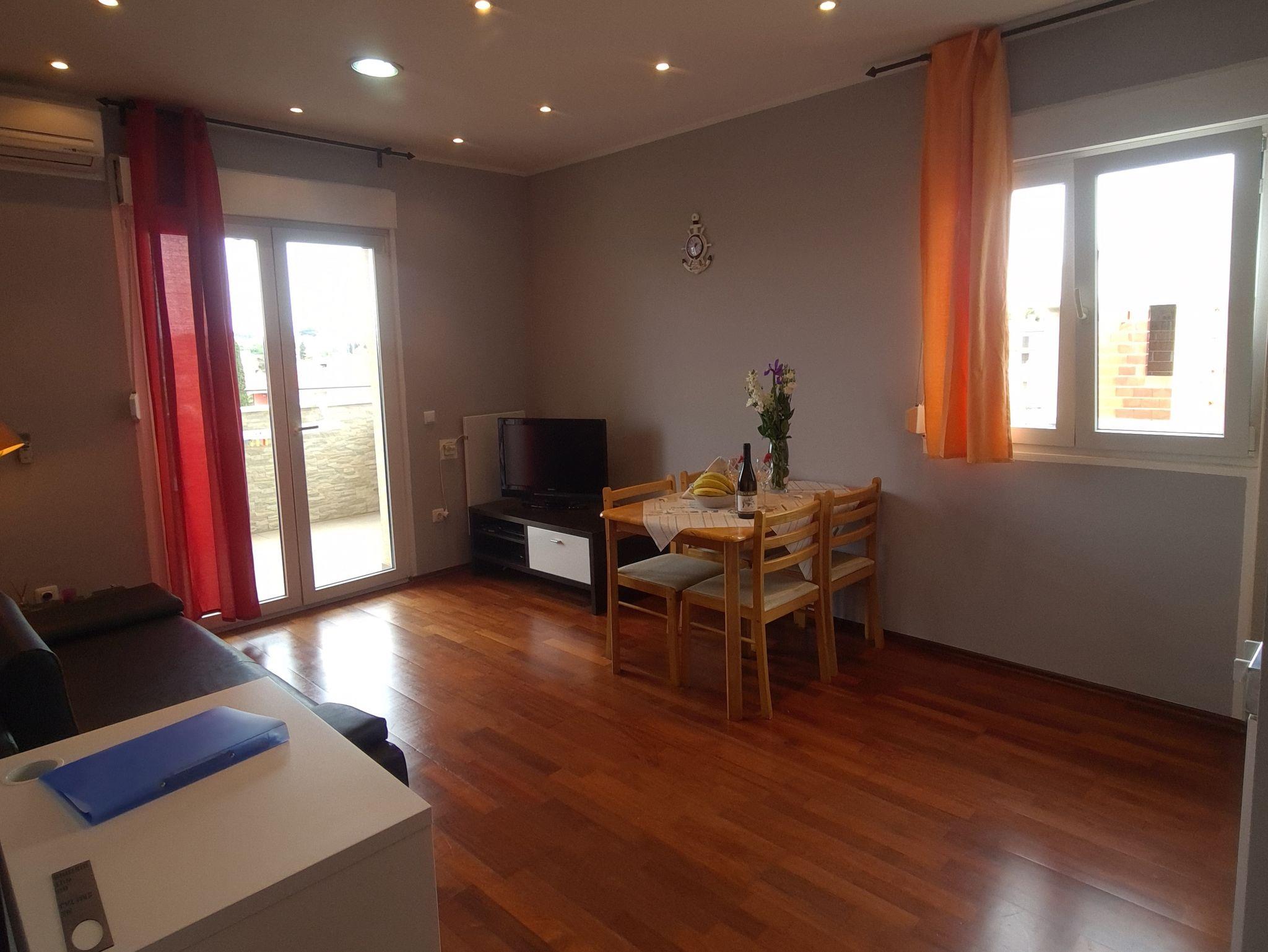 Ferienwohnung bietet Platz für 4 Gäste. Die Betten sind in Schlafzimmern, die es 1 gibt, und in Wohnzimmer, innerhalb einer Gesamtfläche von 38m2, angeordnet. Die Gäste haben einen eigenen Balkon zur Verfügung, auf der sie in warmen Sommernächten genießen können. Es ist erlaubt, Speisen auf dem Gemeinschafts-Grill vorzubereiten. In der Unterkunftseinheit besteht die Möglichkeit des Mitbringens von Haustieren gegen Aufpreis. IM PREIS INBEGRIFFEN: Kurtaxe, Endreinigung, Klimatisierung, Parkplatz, Internet, Bügeleisen, Bügelbrett, Föhn. VERBINDLICHE ZUSÄTZLICHE KOSTEN: Aufzahlung für Kurzaufenthalte (prozentualer Zuschlag pro Nächtigungsanzahl: 30% - 1, 20% - 2, 10% - 3). UNVERBINDLICHE ZUSÄTZLICHE KOSTEN: Wäschewaschen (5,00 € Waschen), Boot (350,00 € pro Nacht), Haustiere (15,00 € pro Nacht), Fahrrad (12,00 € täglich (pro Stück)). Die Verfügbarkeit zusätzlicher Dienstleistungen in Ihrem reservierten Termin und die Preise derselben (falls nicht aufgeführt) müssen im Voraus überprüft werden. Zusätzliche Dienstleistungen die in der Zahlungsaufforderung nicht aufgeführt sind werden direkt beim Vermieter bezahlt, angenommen der Gast nutzt auch diese.