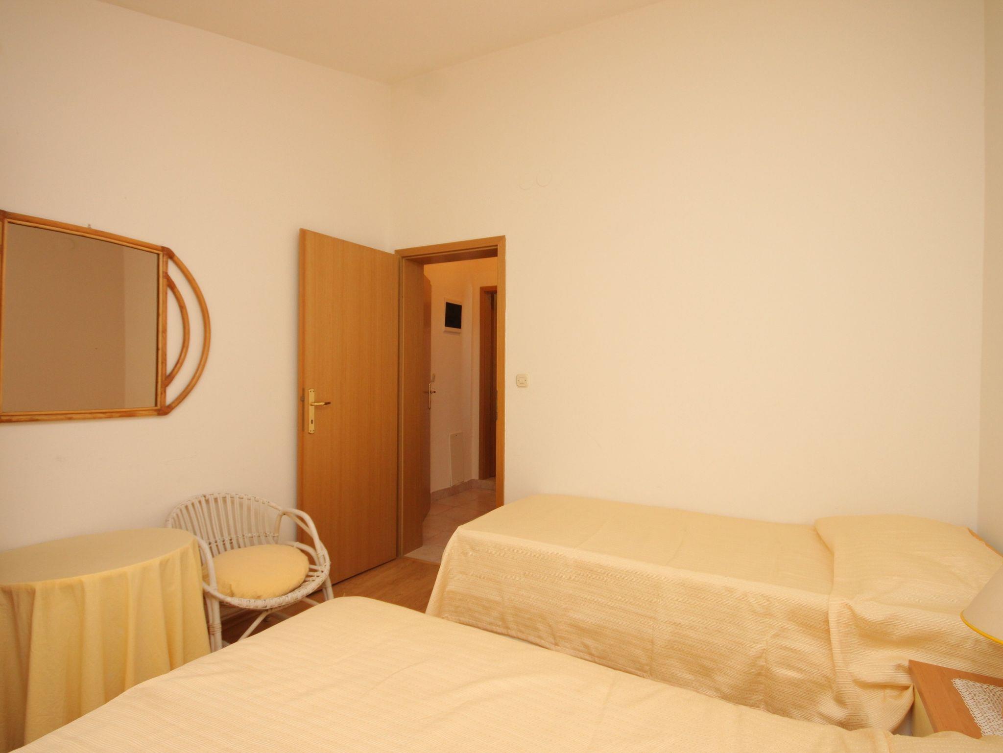 Ferienwohnung bietet Platz für 5 Gäste. Die Betten sind in Schlafzimmern, die es 1 gibt, und in Esszimmer, innerhalb einer Gesamtfläche von 30m2, angeordnet. Die Gäste haben einen eigenen Balkon zur Verfügung, auf der sie in warmen Sommernächten genießen können. Es ist erlaubt, Speisen auf dem Gemeinschafts-Grill vorzubereiten. In der Unterkunftseinheit besteht die Möglichkeit des Mitbringens von Haustieren gegen Aufpreis. IM PREIS INBEGRIFFEN: Kurtaxe, Endreinigung, Klimatisierung, Zentralheizung, Parkplatz, Internet, Kinderbett. VERBINDLICHE ZUSÄTZLICHE KOSTEN: Aufzahlung für Kurzaufenthalte (prozentualer Zuschlag pro Nächtigungsanzahl: 30% - 1, 20% - 2, 10% - 3). UNVERBINDLICHE ZUSÄTZLICHE KOSTEN: Frühstück (8,00 €, 50% Nachlass für Kinder zwischen 4 und 12 Jahren, Kinder bis 4 Jahre sind frei.), Haustiere (5,00 € pro Nacht). Die Verfügbarkeit zusätzlicher Dienstleistungen in Ihrem reservierten Termin und die Preise derselben (falls nicht aufgeführt) müssen im Voraus überprüft werden. Zusätzliche Dienstleistungen die in der Zahlungsaufforderung nicht aufgeführt sind werden direkt beim Vermieter bezahlt, angenommen der Gast nutzt auch diese.