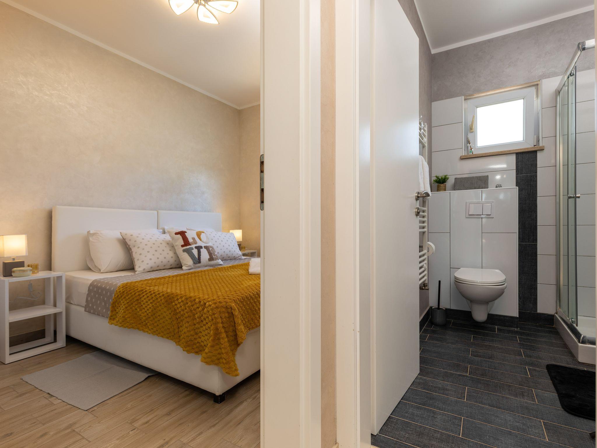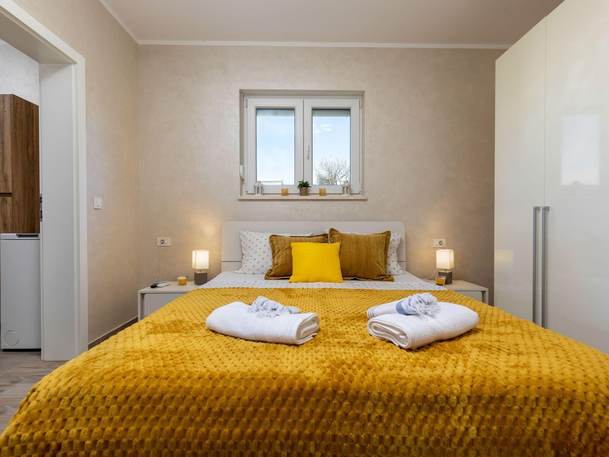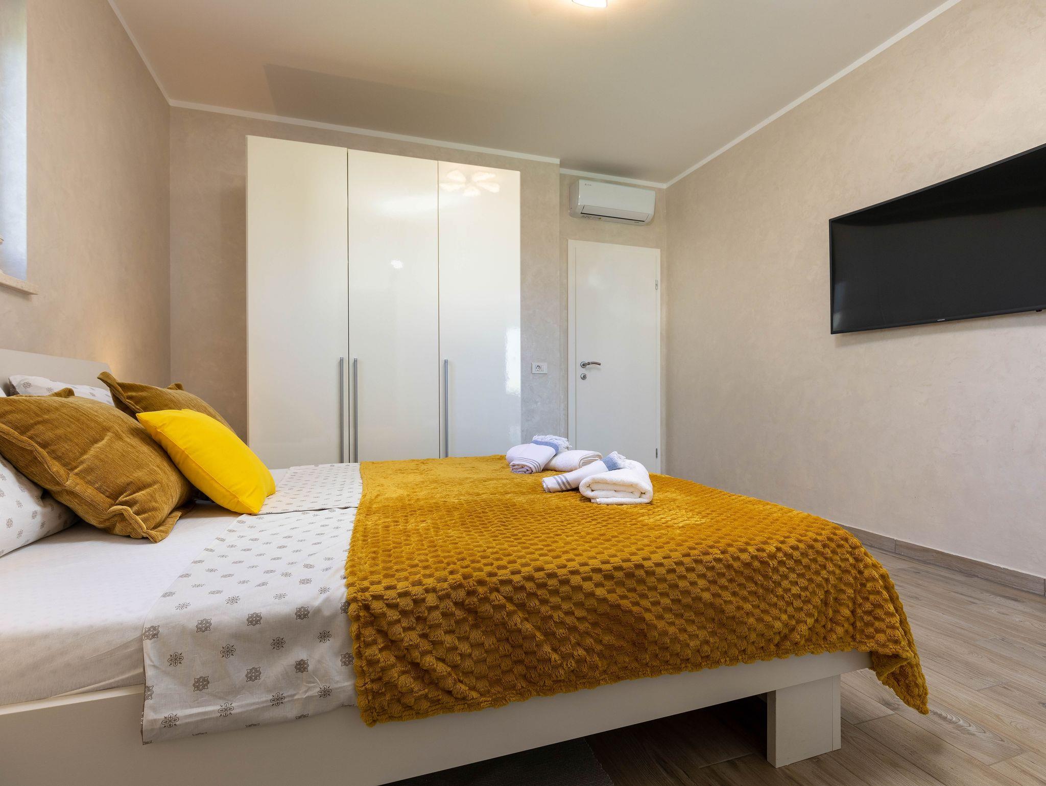 Haus bietet Platz für 4 Gäste. Die Betten sind in Schlafzimmern, die es 2 gibt, innerhalb einer Gesamtfläche von 82m2, angeordnet. Die Gäste haben eine eigene Terrasse zur Verfügung, auf der sie in warmen Sommernächten genießen können. Für vollen Genuss und Entspannung gibt es einen privaten Grill für Gäste dieser Unterkunft. IM PREIS INBEGRIFFEN: Kurtaxe, Endreinigung, Klimatisierung, Parkplatz, Internet, Kinderbett, Bügeleisen, Bügelbrett, Föhn, tragbarer Grill. Die Verfügbarkeit zusätzlicher Dienstleistungen in Ihrem reservierten Termin und die Preise derselben (falls nicht aufgeführt) müssen im Voraus überprüft werden. Zusätzliche Dienstleistungen die in der Zahlungsaufforderung nicht aufgeführt sind werden direkt beim Vermieter bezahlt, angenommen der Gast nutzt auch diese. Ermäßigung auf den Grundpreis: Gratistag 14=13 (bei einem Aufenthalt von 14 Tagen oder mehr erhalten Sie einen Gratistag für den Aufenthalt bis 31.12.26).