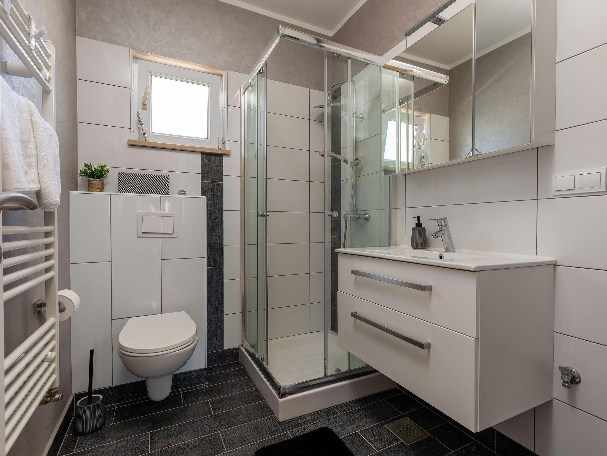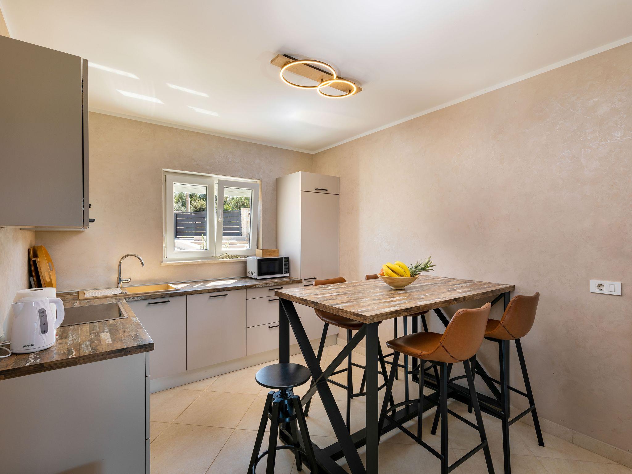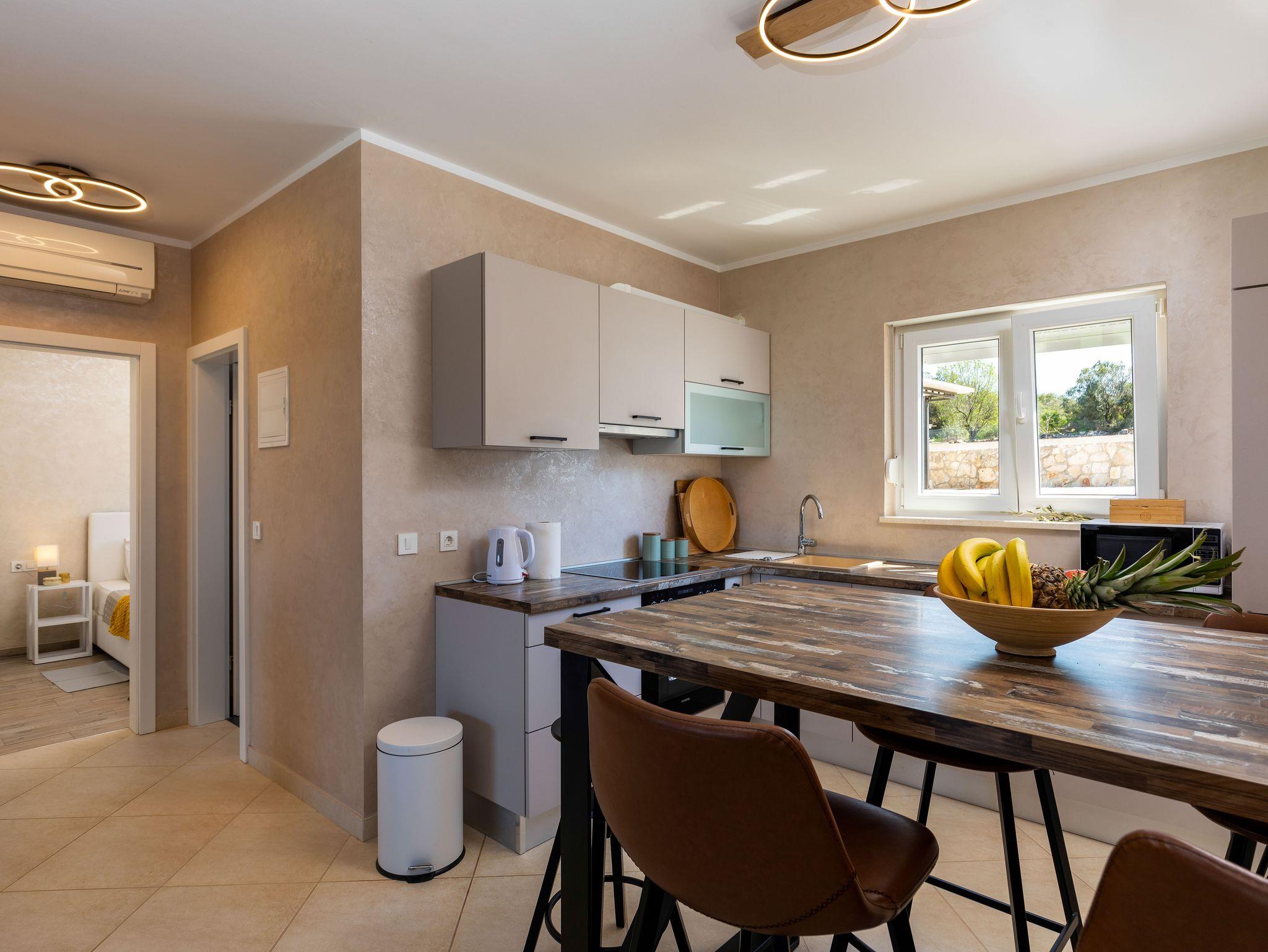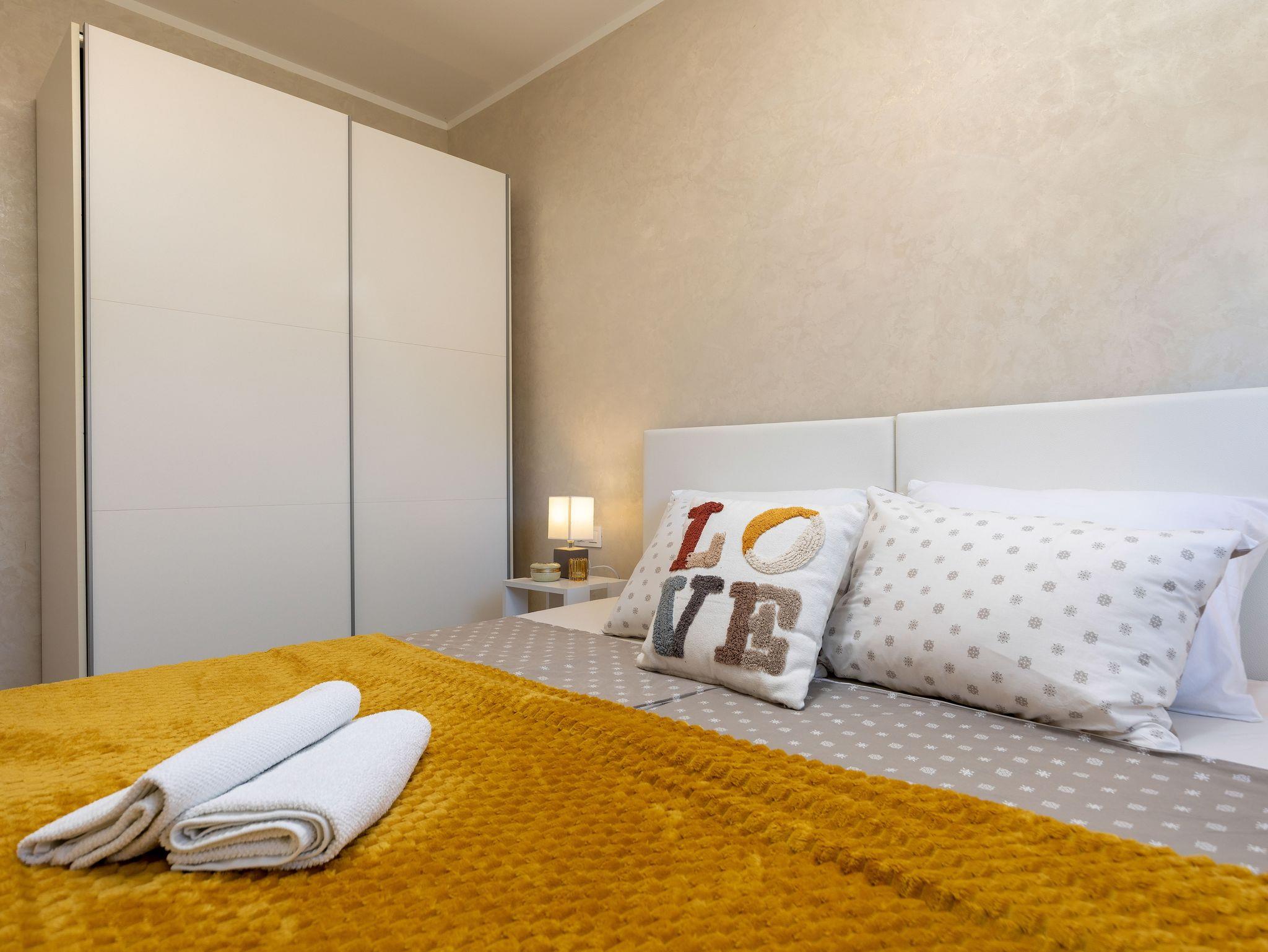 Haus bietet Platz für 4 Gäste. Die Betten sind in Schlafzimmern, die es 2 gibt, innerhalb einer Gesamtfläche von 82m2, angeordnet. Die Gäste haben eine eigene Terrasse zur Verfügung, auf der sie in warmen Sommernächten genießen können. Für vollen Genuss und Entspannung gibt es einen privaten Grill für Gäste dieser Unterkunft. IM PREIS INBEGRIFFEN: Kurtaxe, Endreinigung, Klimatisierung, Parkplatz, Internet, Kinderbett, Bügeleisen, Bügelbrett, Föhn, tragbarer Grill. Die Verfügbarkeit zusätzlicher Dienstleistungen in Ihrem reservierten Termin und die Preise derselben (falls nicht aufgeführt) müssen im Voraus überprüft werden. Zusätzliche Dienstleistungen die in der Zahlungsaufforderung nicht aufgeführt sind werden direkt beim Vermieter bezahlt, angenommen der Gast nutzt auch diese. Ermäßigung auf den Grundpreis: Gratistag 14=13 (bei einem Aufenthalt von 14 Tagen oder mehr erhalten Sie einen Gratistag für den Aufenthalt bis 31.12.26).