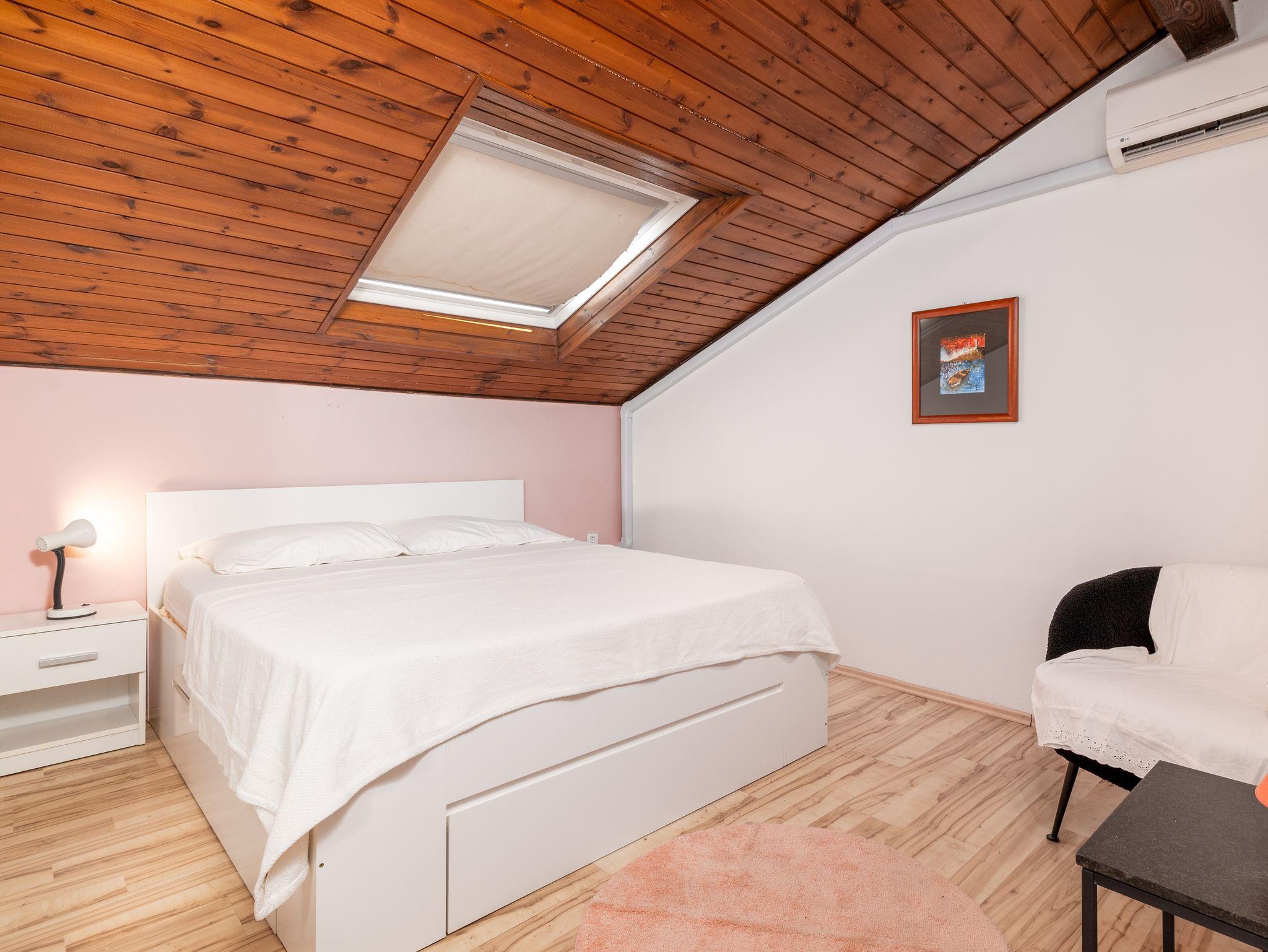 Ferienwohnung bietet Platz für 6 Gäste. Die Betten sind in Schlafzimmern, die es 3 gibt, innerhalb einer Gesamtfläche von 85m2, angeordnet. Die Gäste haben einen eigenen Balkon zur Verfügung, auf der sie in warmen Sommernächten genießen können. Das Apartment bietet Meerblick. Es ist erlaubt, Speisen auf dem Gemeinschafts-Grill vorzubereiten. IM PREIS INBEGRIFFEN: Kurtaxe, Endreinigung, Klimatisierung, Parkplatz, Internet, Wäschewaschen, Bügeleisen, Bügelbrett, Föhn. Die Verfügbarkeit zusätzlicher Dienstleistungen in Ihrem reservierten Termin und die Preise derselben (falls nicht aufgeführt) müssen im Voraus überprüft werden. Zusätzliche Dienstleistungen die in der Zahlungsaufforderung nicht aufgeführt sind werden direkt beim Vermieter bezahlt, angenommen der Gast nutzt auch diese. Ermäßigung auf den Grundpreis: Gratistag 14=13 (bei einem Aufenthalt von 14 Tagen oder mehr erhalten Sie einen Gratistag für den Aufenthalt bis 31.12.26).