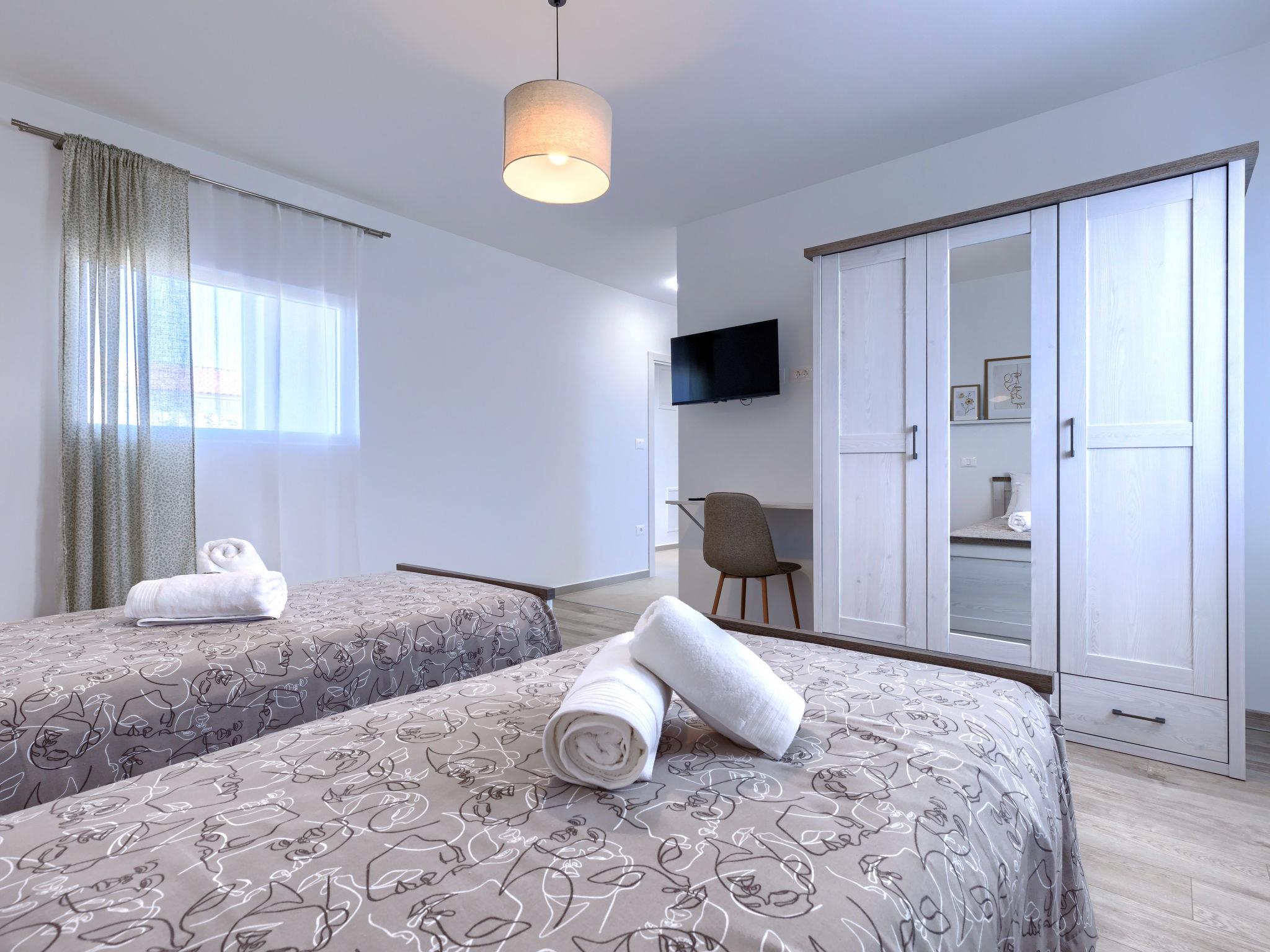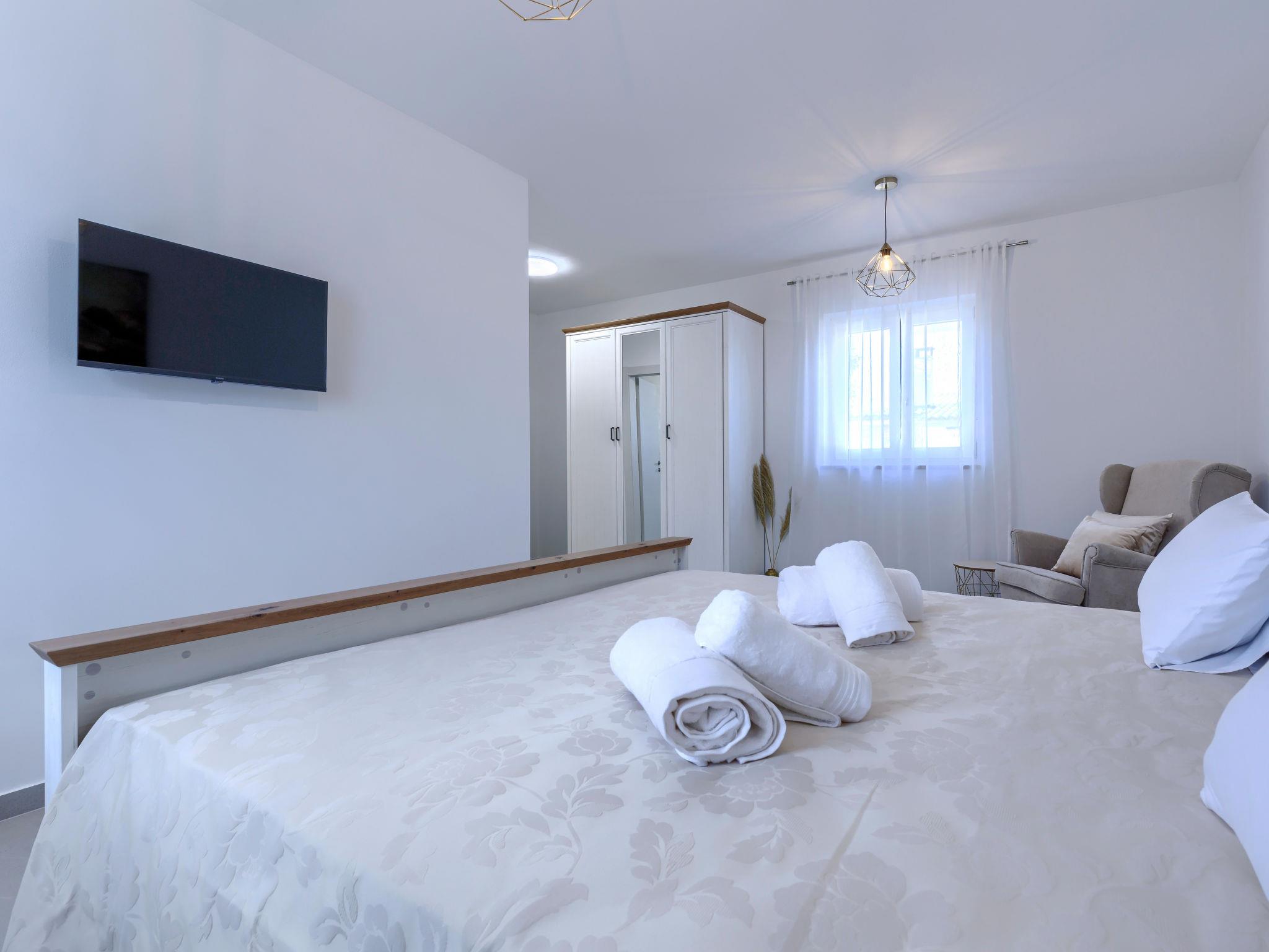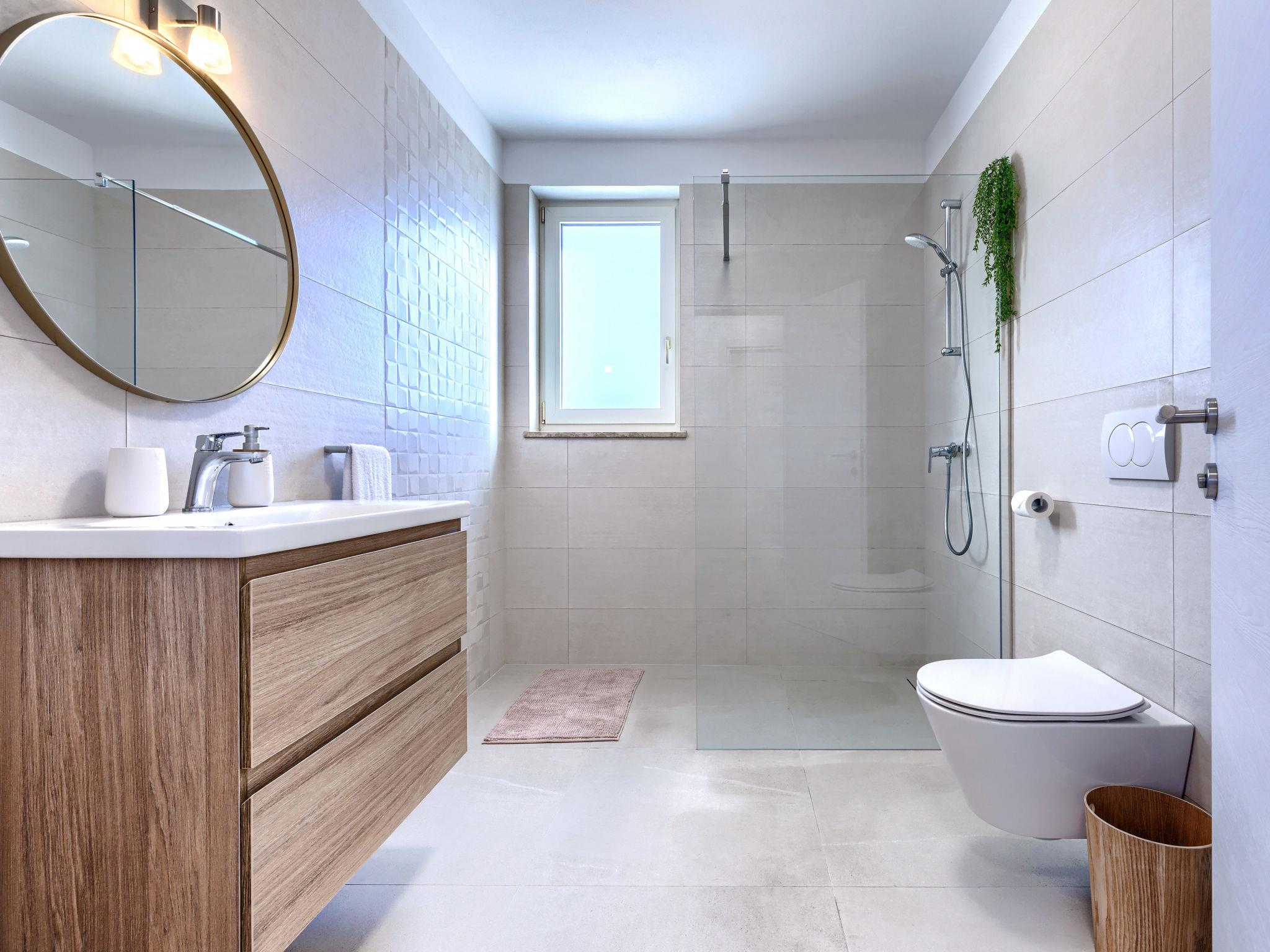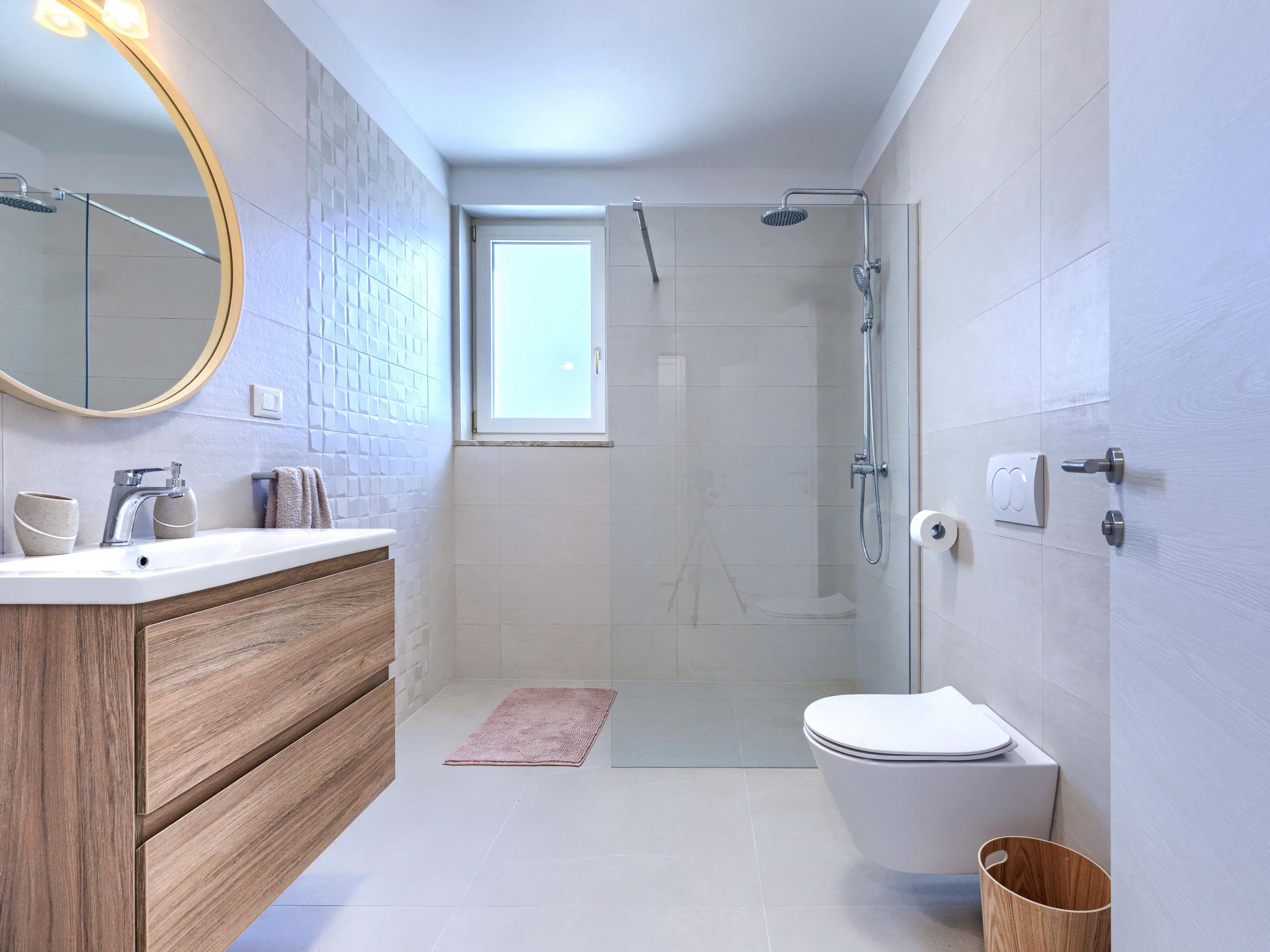Modern, luxurious villa "Jolanda", 2 storeys, built in 2024. In the hamlet Pamici 4 km from the centre of Žminj, 25 km from the sea, 25 km from the beach. Private: property 7'000 m2 with lawn and trees, swimming pool angular (9 x 4 m, 36 m2, depth 140 cm, seasonal availability: 01.May. - 01.Oct.) with internal staircase. Outdoor shower, barbecue, barbecue house, children's playground (swing). In the house: internet access, washing machine. Parking (for 4 cars) at the house on the premises. Shop 2.8 km, supermarket 2.8 km, restaurant 3 km, bus stop 3.9 km, pebble beach 25 km. Nearby attractions: adventure park 20 km, zip line 15 km.