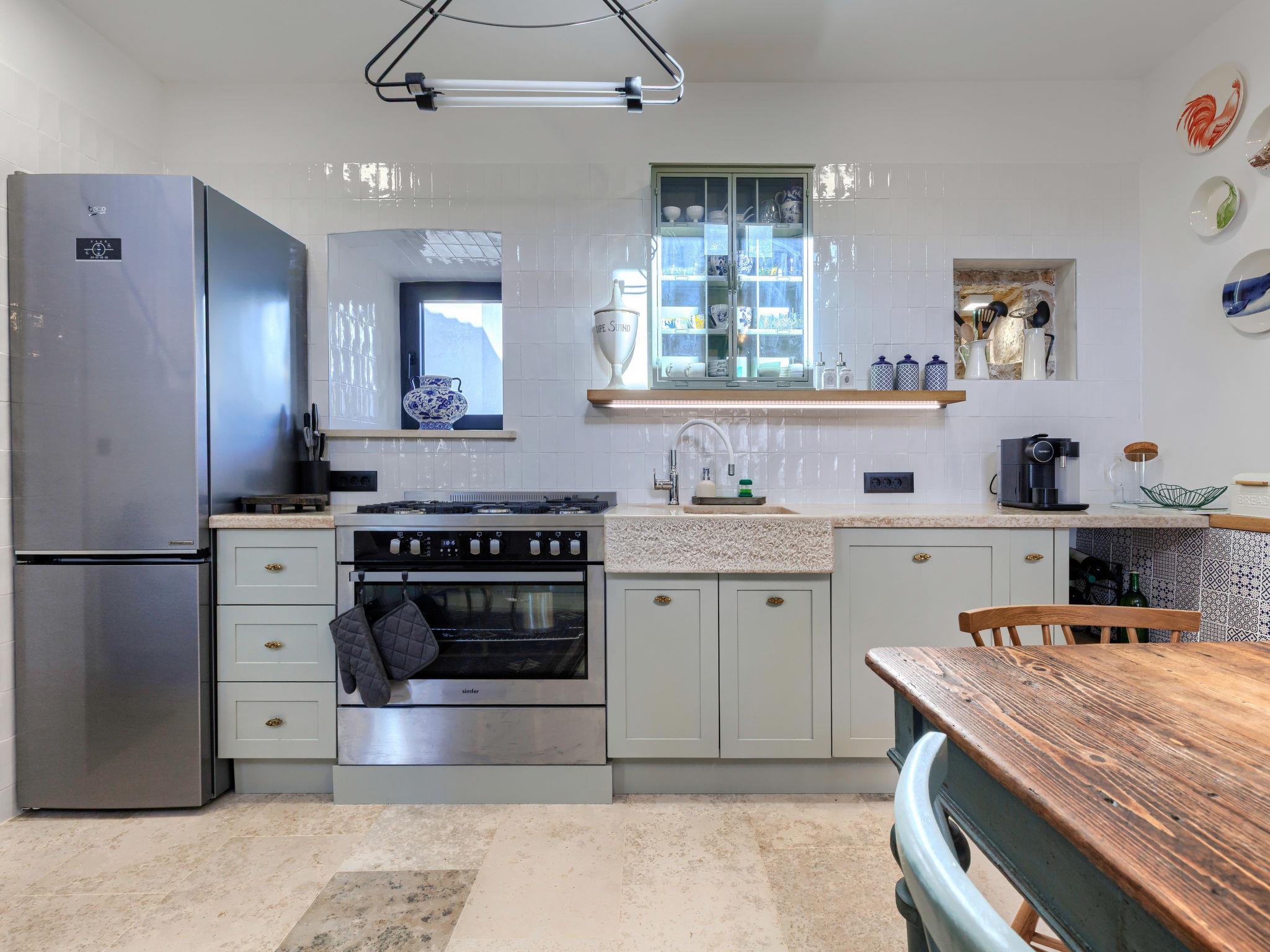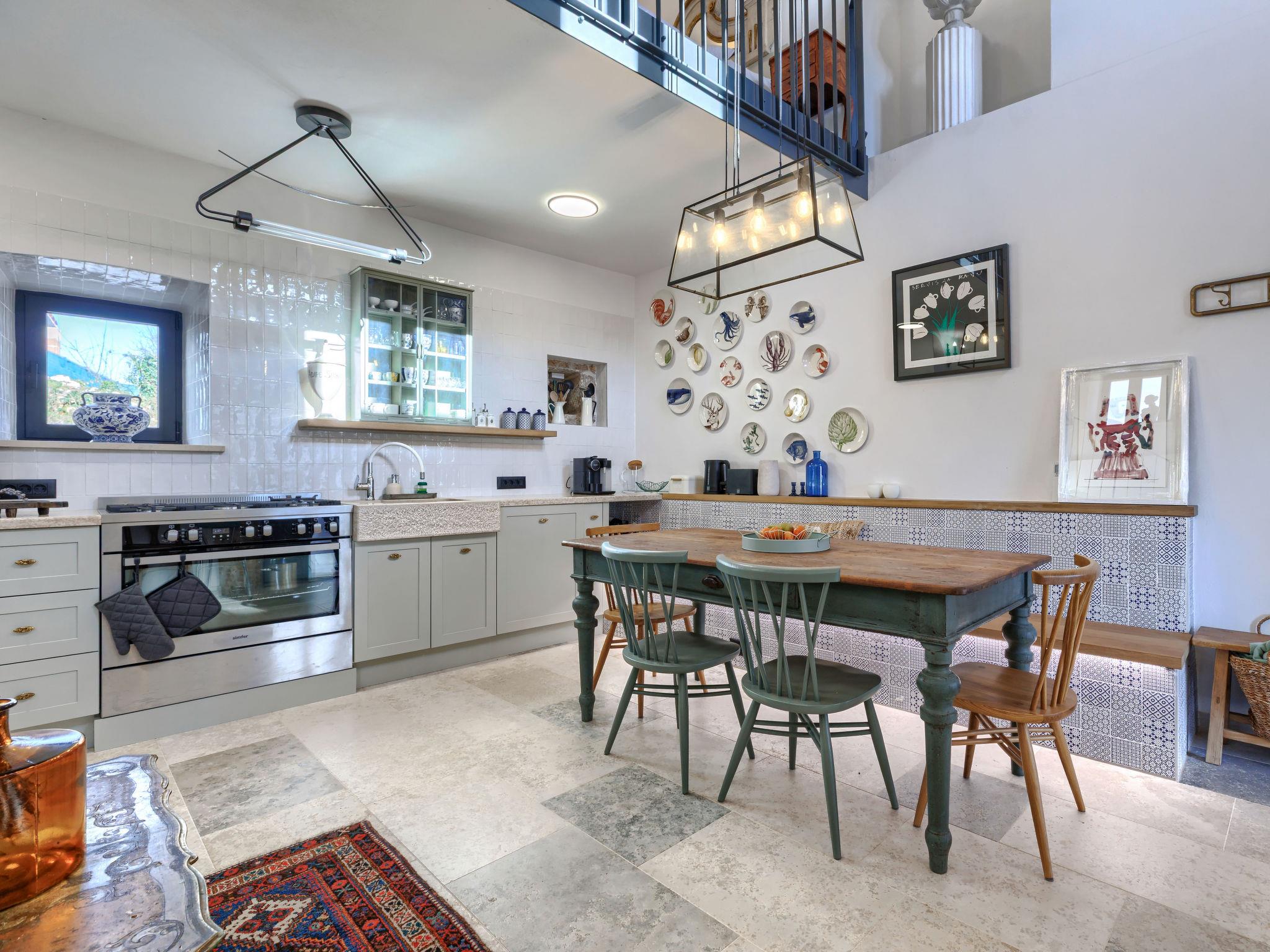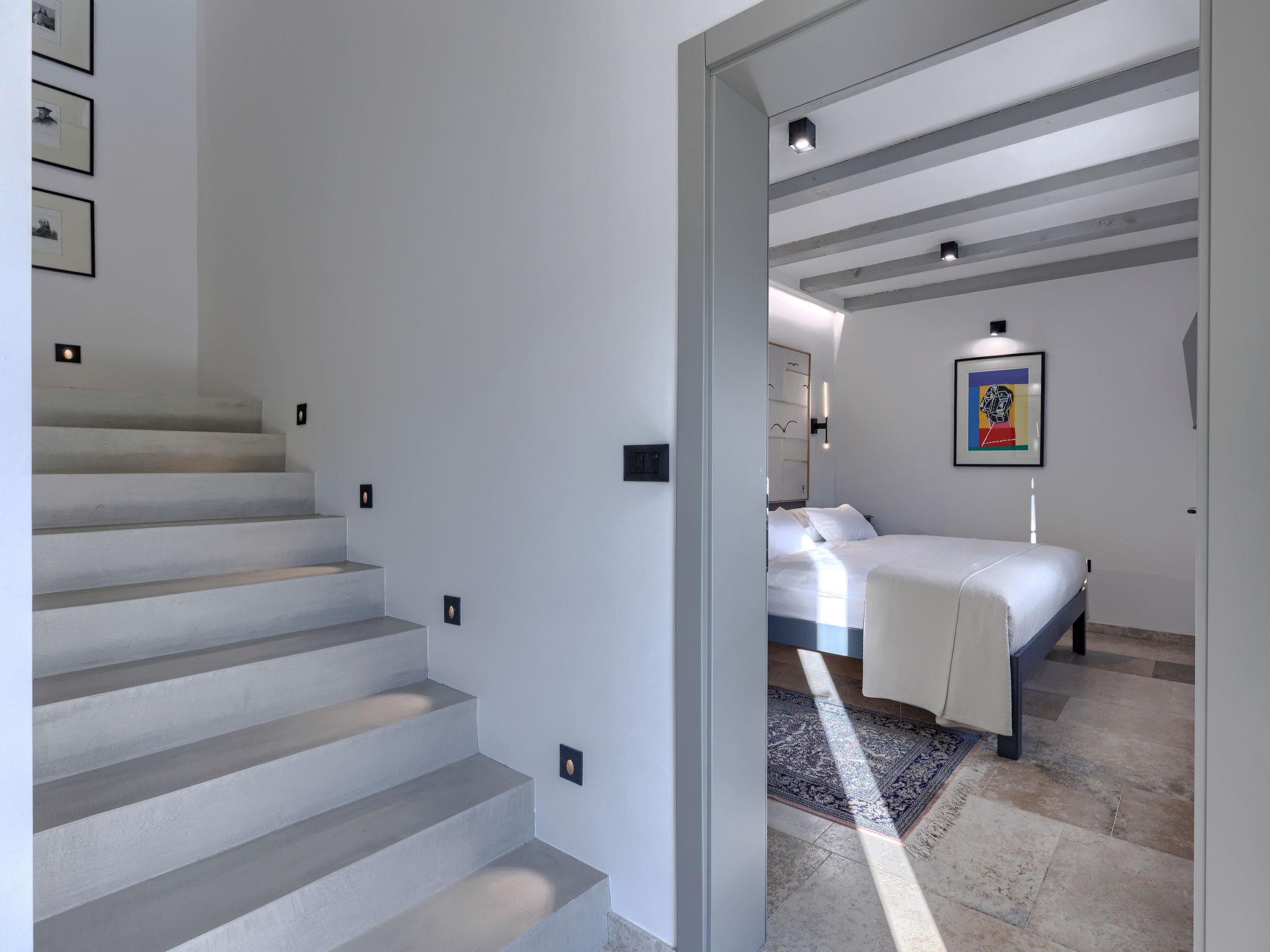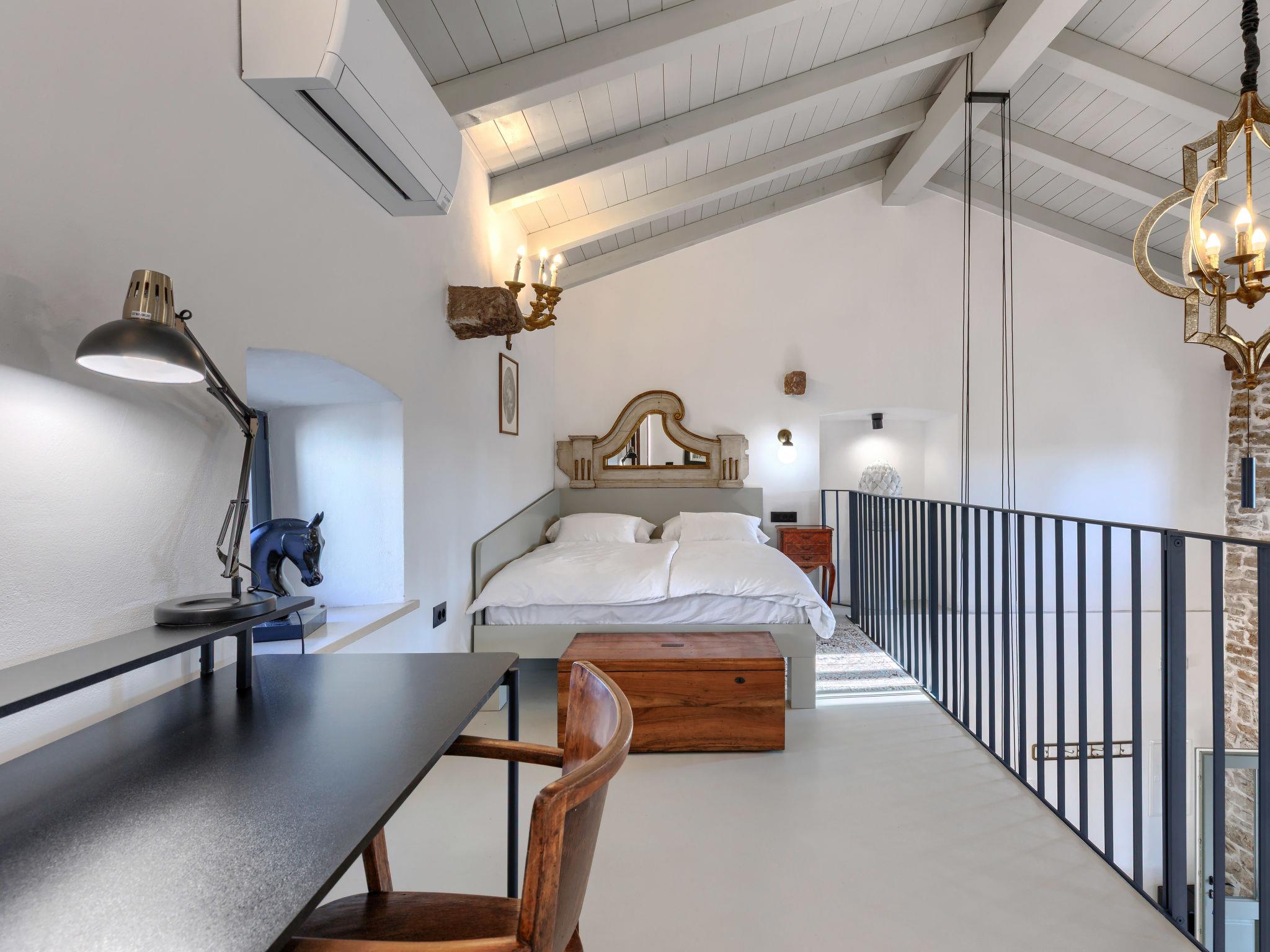 5-room house 220 m2 on 2 levels. Very tasteful and stylish furnishings: living/dining room with open-hearth fireplace (only for decoration), kitchen corner and satellite TV (flat screen). Exit to the terrace, to the swimming pool. Living/dining room with satellite TV (flat screen). Exit to the terrace, to the swimming pool. 1 room with 1 french bed (180 cm, length 200 cm), shower/WC. Open kitchen (oven, dishwasher, 4 gas rings, freezer, electric coffee machine). Shower/WC, sep. WC. Upper floor: 2 rooms, each room with 1 french bed (180 cm, length 200 cm), shower/WC and satellite TV (flat screen). Exit to the terrace, to the swimming pool. Open gallery with 1 french bed (160 cm, length 200 cm). Forced-air heating. Terrace furniture, deck chairs. Facilities: Internet (WiFi, free). 2 pets/ dogs allowed. No internal connecting door between the separated properties. One house with living/dining area and open kitchen and one bedroom on the ground floor, 2 bedrooms on the first floor. The other house with living/dining area and open kitchen on the ground floor, open gallery on the first floor. Instead of an enclosed bedroom, some sleeping areas are located in an open-plan area (gallery, alcove, etc.).