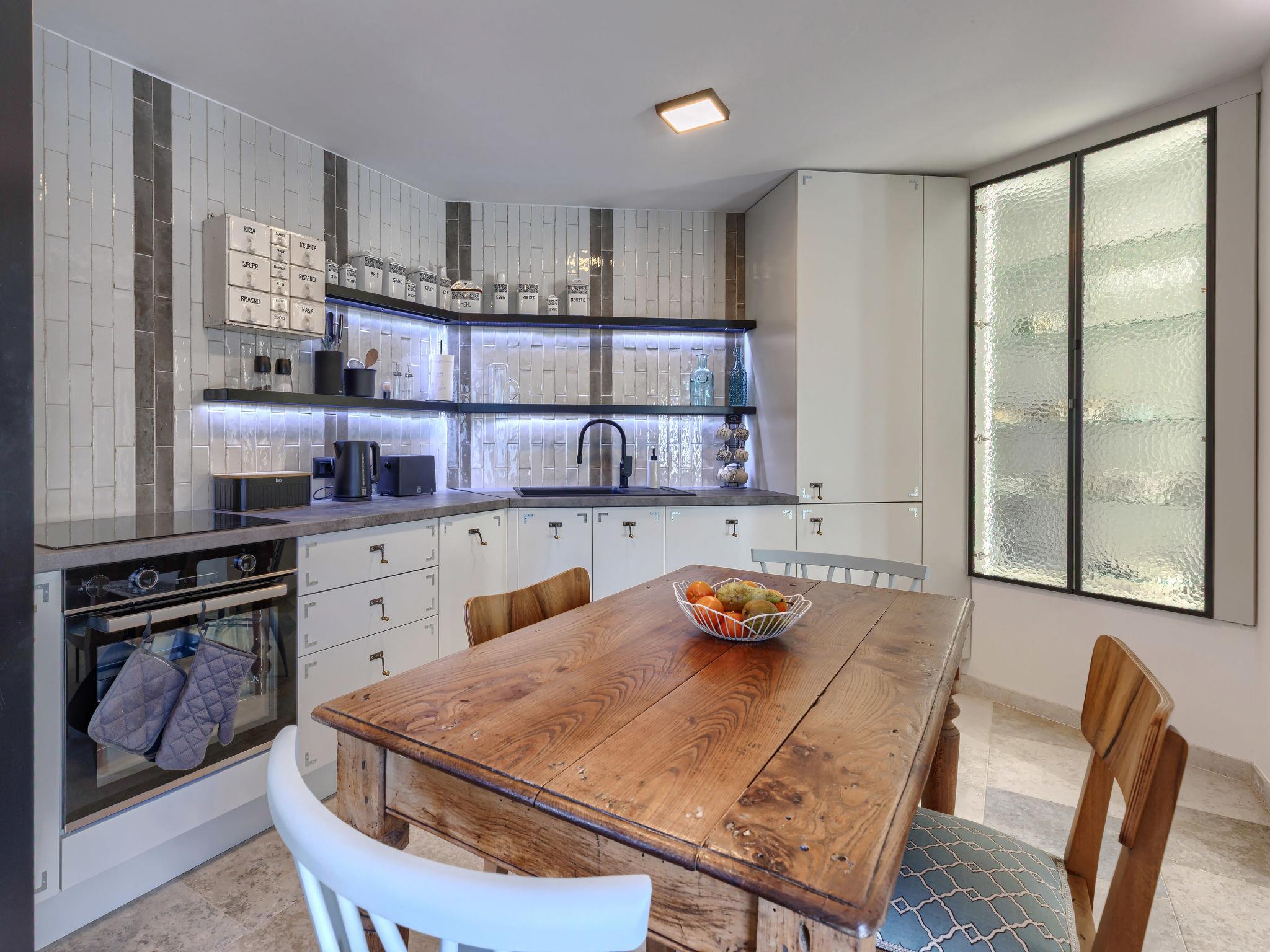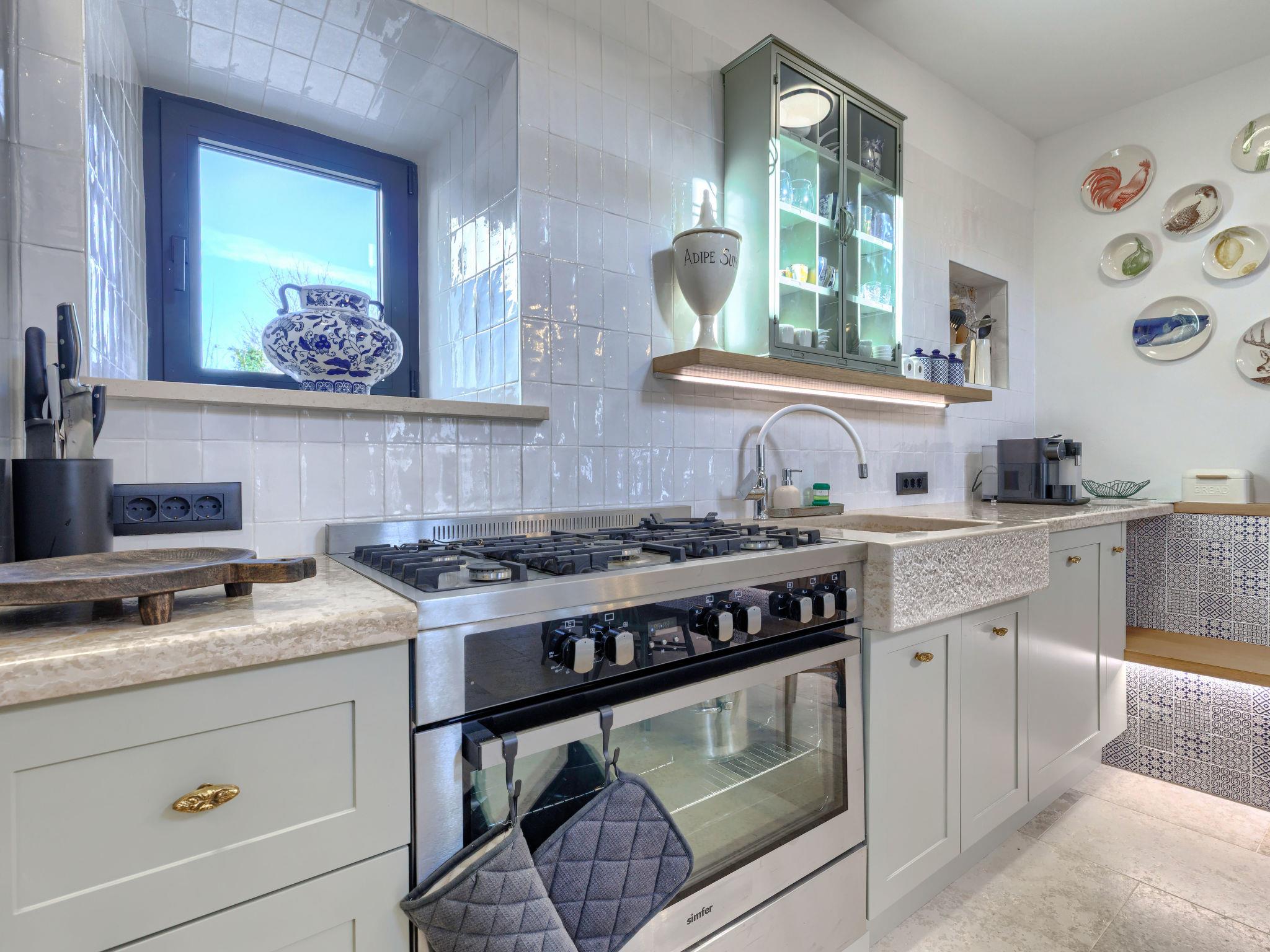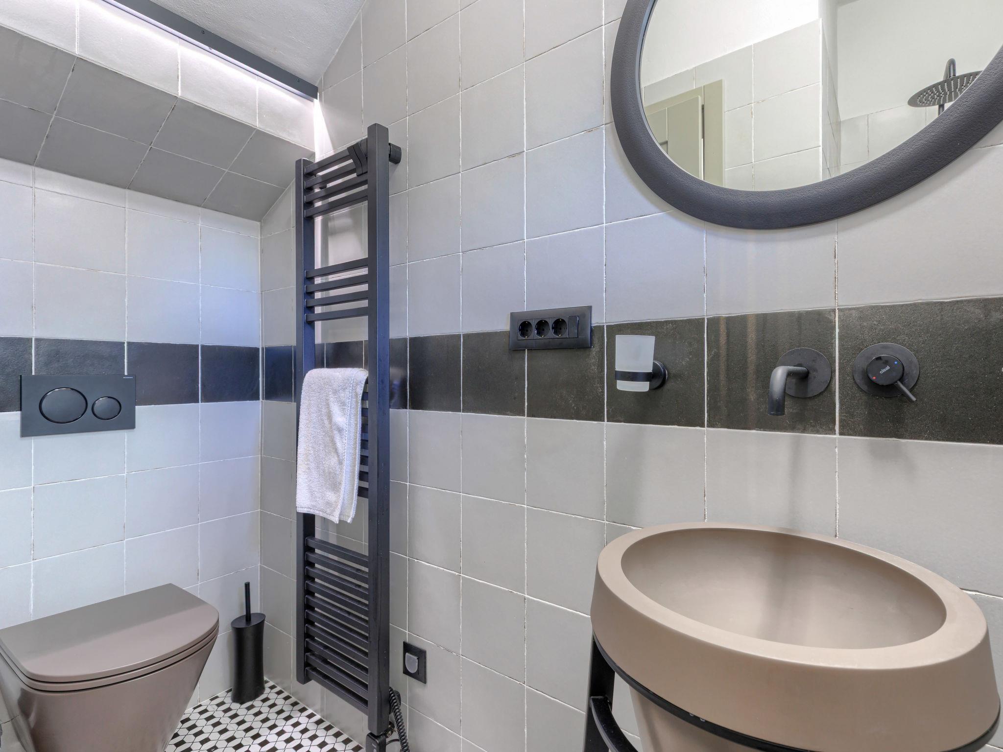 5-room house 220 m2 on 2 levels. Very tasteful and stylish furnishings: living/dining room with open-hearth fireplace (only for decoration), kitchen corner and satellite TV (flat screen). Exit to the terrace, to the swimming pool. Living/dining room with satellite TV (flat screen). Exit to the terrace, to the swimming pool. 1 room with 1 french bed (180 cm, length 200 cm), shower/WC. Open kitchen (oven, dishwasher, 4 gas rings, freezer, electric coffee machine). Shower/WC, sep. WC. Upper floor: 2 rooms, each room with 1 french bed (180 cm, length 200 cm), shower/WC and satellite TV (flat screen). Exit to the terrace, to the swimming pool. Open gallery with 1 french bed (160 cm, length 200 cm). Forced-air heating. Terrace furniture, deck chairs. Facilities: Internet (WiFi, free). 2 pets/ dogs allowed. No internal connecting door between the separated properties. One house with living/dining area and open kitchen and one bedroom on the ground floor, 2 bedrooms on the first floor. The other house with living/dining area and open kitchen on the ground floor, open gallery on the first floor. Instead of an enclosed bedroom, some sleeping areas are located in an open-plan area (gallery, alcove, etc.).