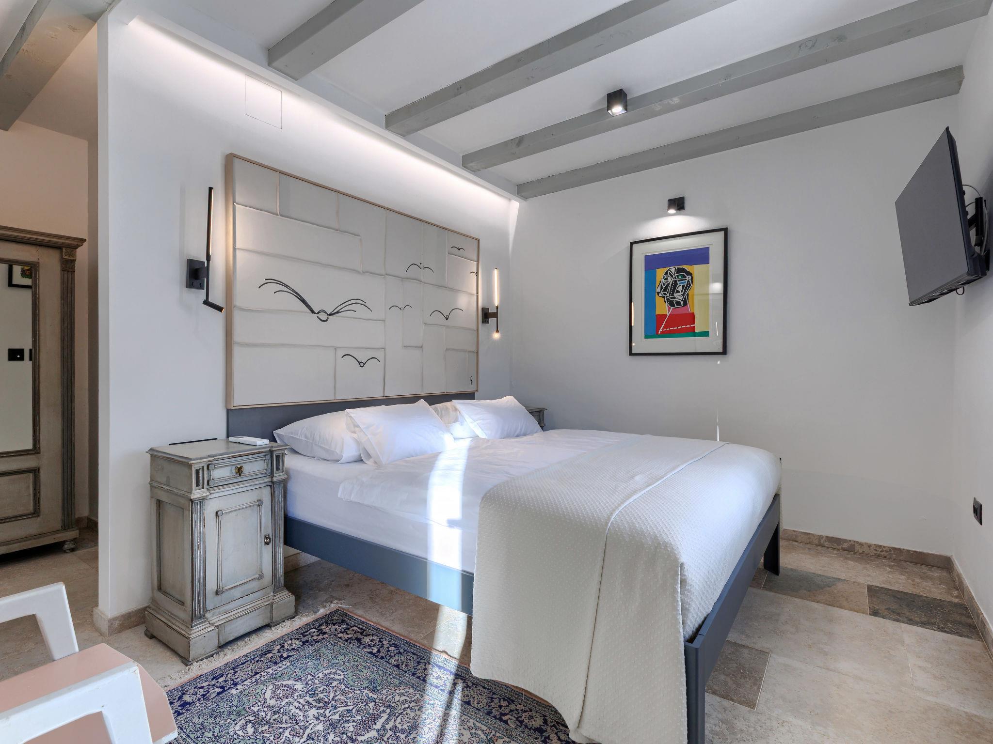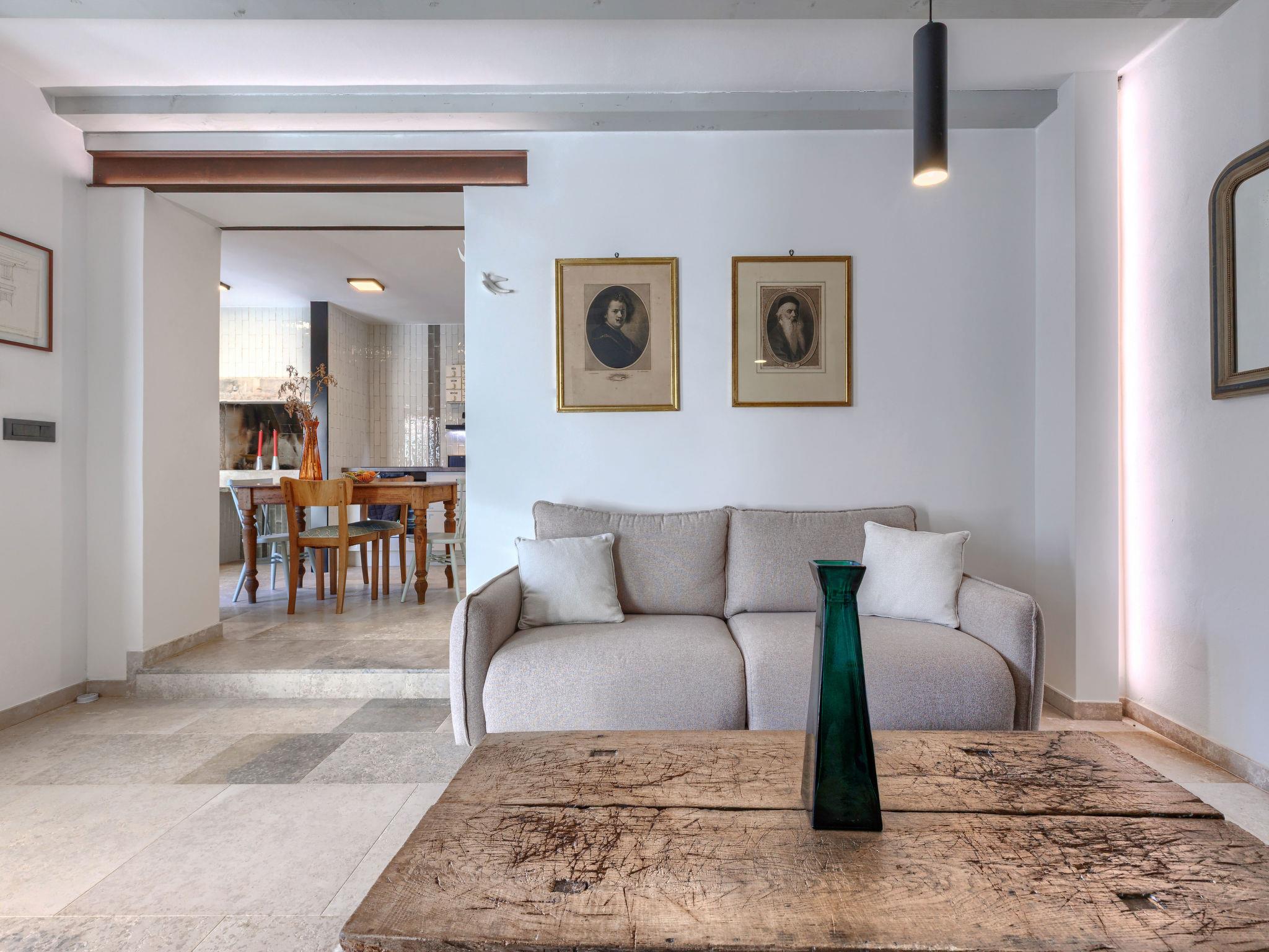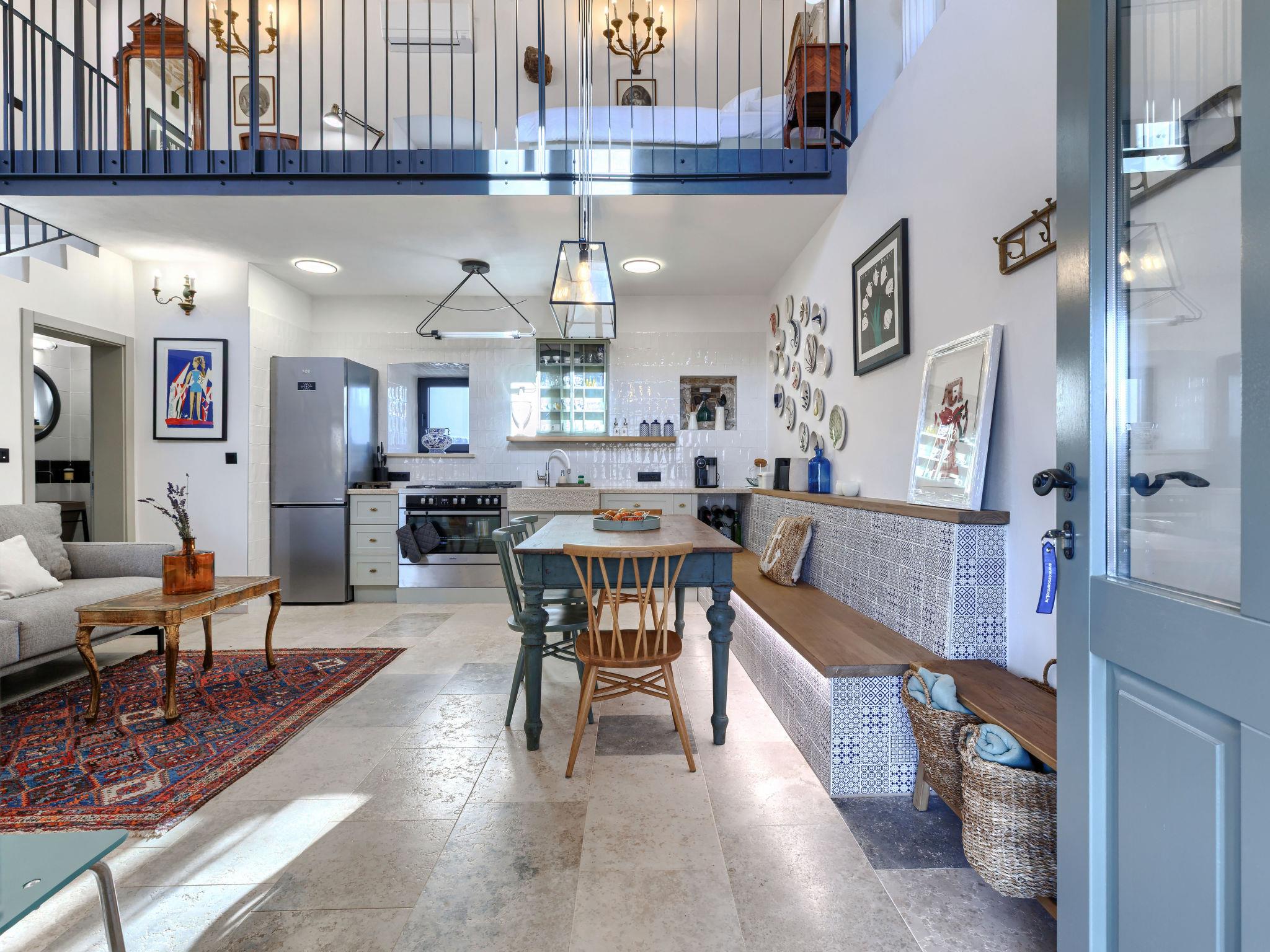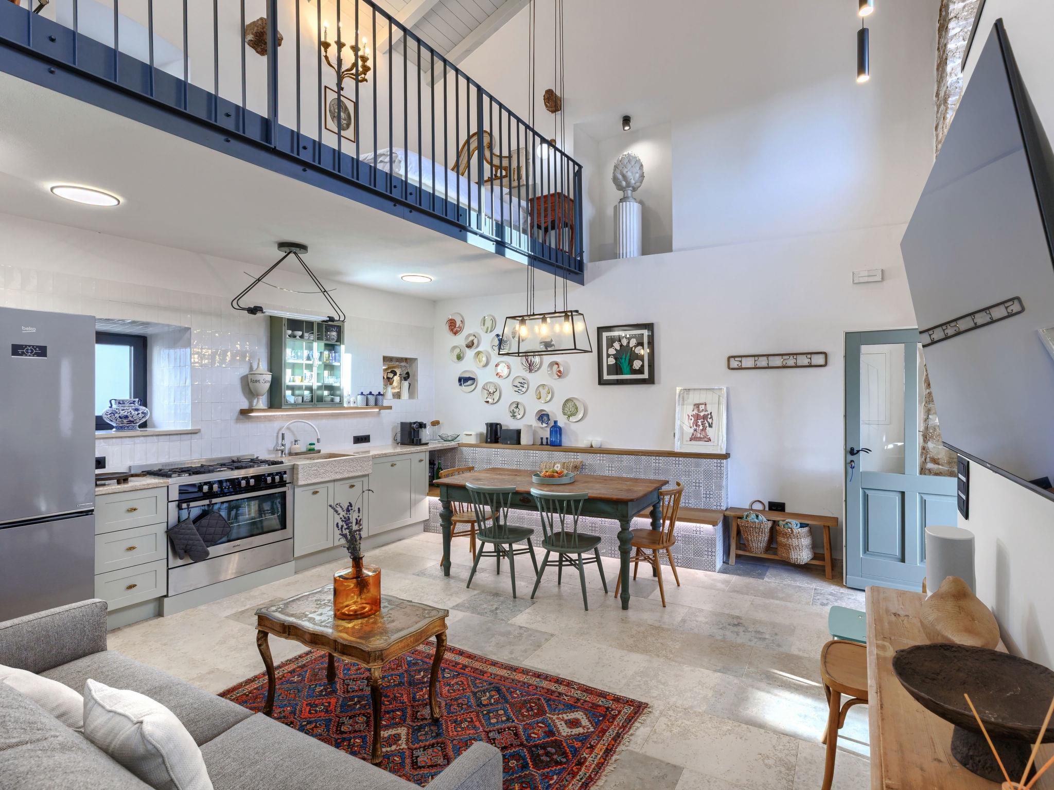5-room house 220 m2 on 2 levels. Very tasteful and stylish furnishings: living/dining room with open-hearth fireplace (only for decoration), kitchen corner and satellite TV (flat screen). Exit to the terrace, to the swimming pool. Living/dining room with satellite TV (flat screen). Exit to the terrace, to the swimming pool. 1 room with 1 french bed (180 cm, length 200 cm), shower/WC. Open kitchen (oven, dishwasher, 4 gas rings, freezer, electric coffee machine). Shower/WC, sep. WC. Upper floor: 2 rooms, each room with 1 french bed (180 cm, length 200 cm), shower/WC and satellite TV (flat screen). Exit to the terrace, to the swimming pool. Open gallery with 1 french bed (160 cm, length 200 cm). Forced-air heating. Terrace furniture, deck chairs. Facilities: Internet (WiFi, free). 2 pets/ dogs allowed. No internal connecting door between the separated properties. One house with living/dining area and open kitchen and one bedroom on the ground floor, 2 bedrooms on the first floor. The other house with living/dining area and open kitchen on the ground floor, open gallery on the first floor. Instead of an enclosed bedroom, some sleeping areas are located in an open-plan area (gallery, alcove, etc.).