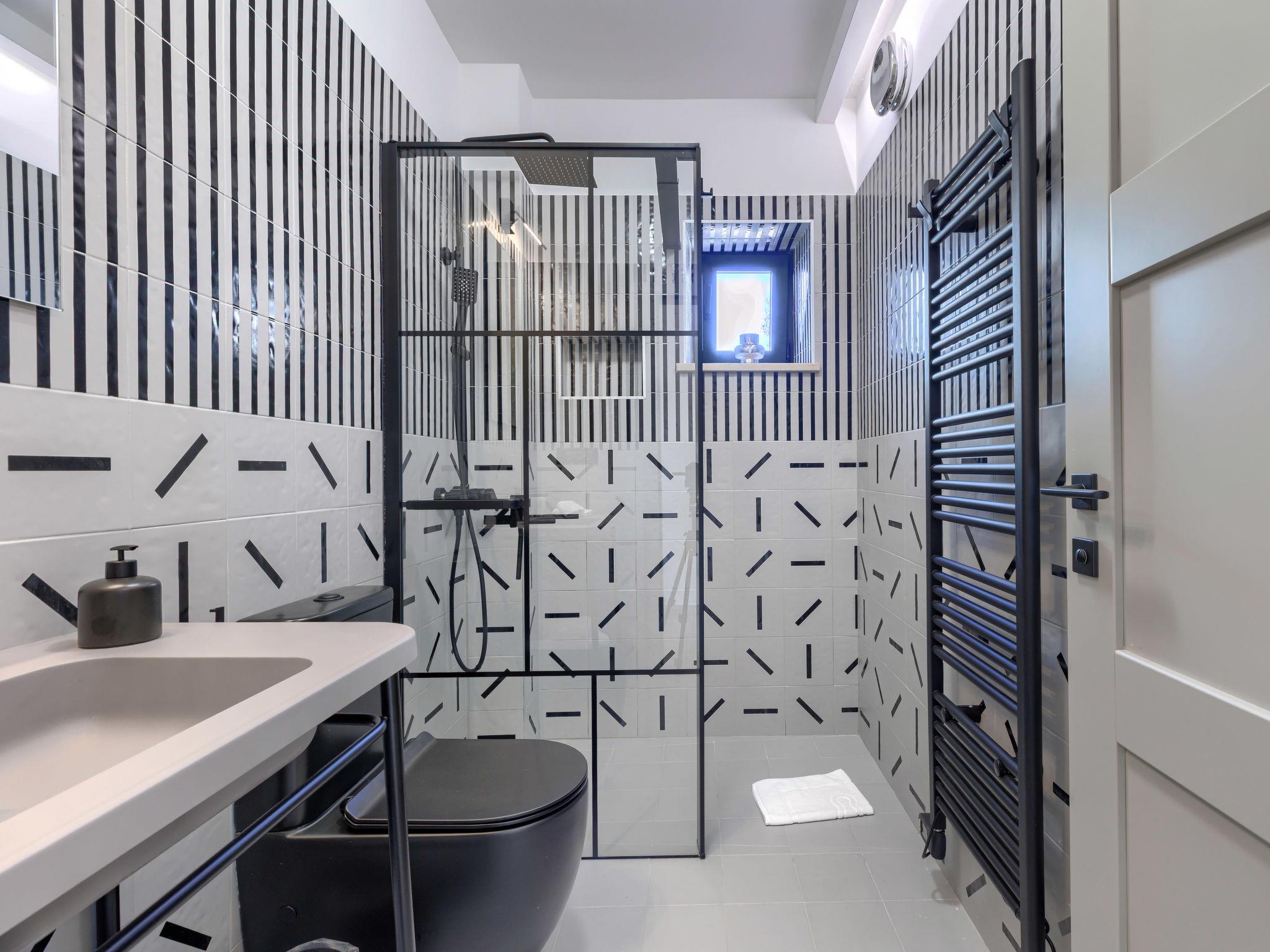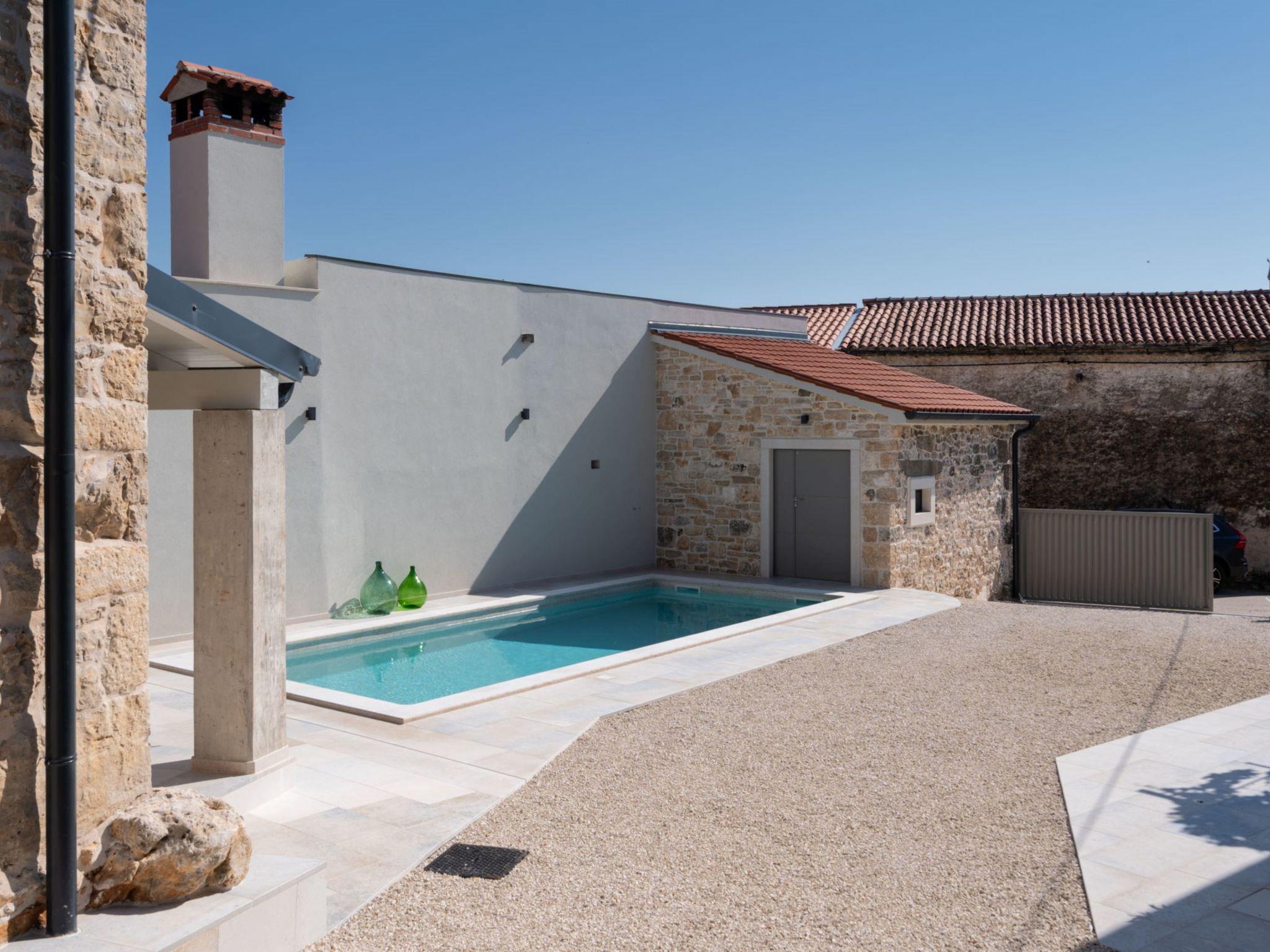 Very beautiful house "La Gioia", 2 storeys. In the hamlet Rudani 7 km from the centre of Žminj, 20 km from the sea. Private: property 750 m2 (fenced), swimming pool angular, heated (7 x 3 m, depth 140 cm, seasonal availability: 01.Apr. - 01.Nov.) with internal staircase and salt-electrolysis pool-cleaning system. Outdoor shower, terrace (20 m2), garden furniture, barbecue. In the house: internet access, air conditioning, washing machine. Parking at the house on the premises. E-charging station. Supermarket 9 km, café 7 km, internet café 7 km, bus stop 10 km, pebble beach 20 km. The owner does not accept any youth groups. Please note: airfield 32 km from the property. The unit consists of 2 houses rented as one unit. Heated swimming pool (extra). It is necessary to notify us 7 days in advance if you wish to have the pool heating turned on.