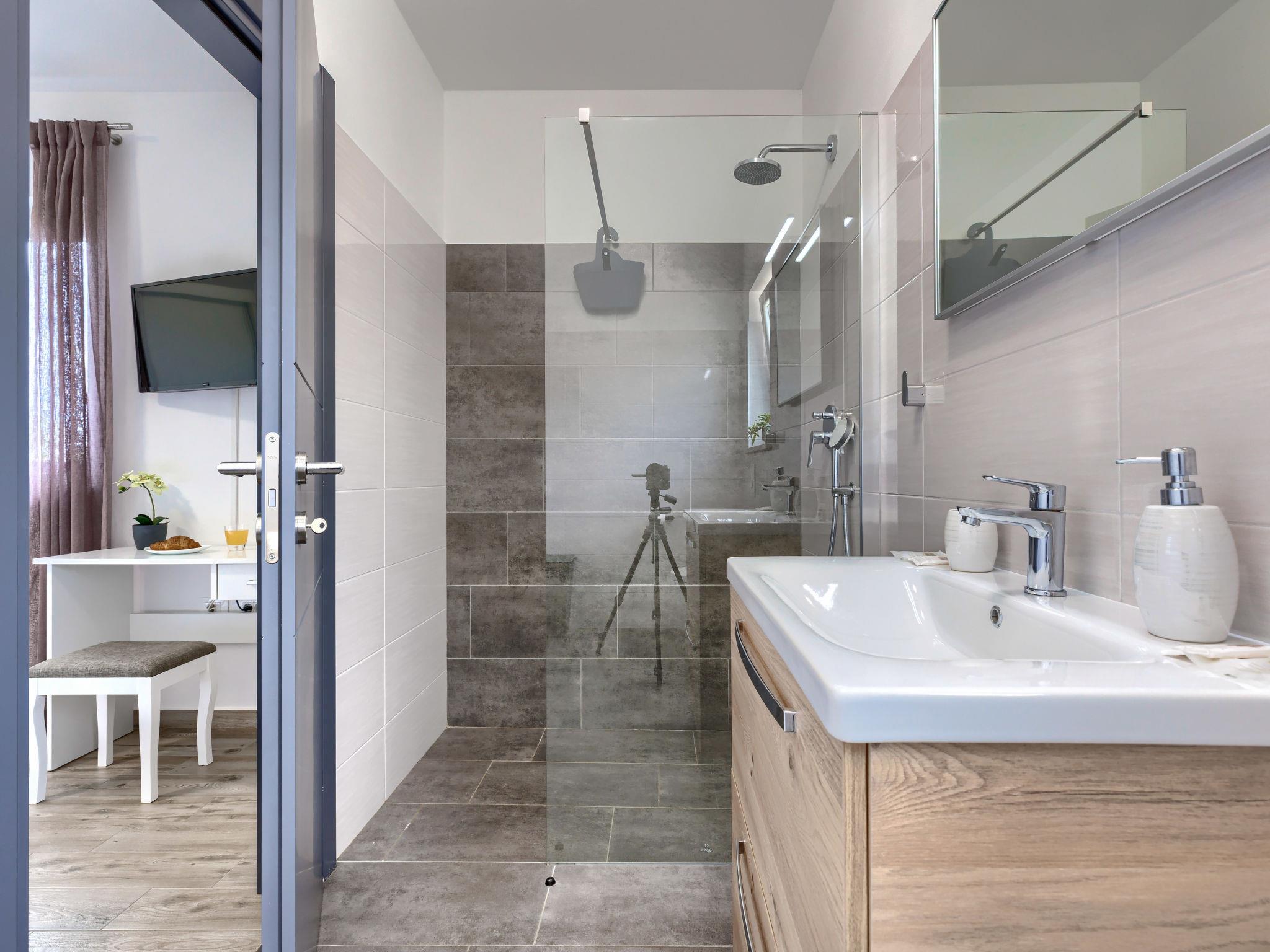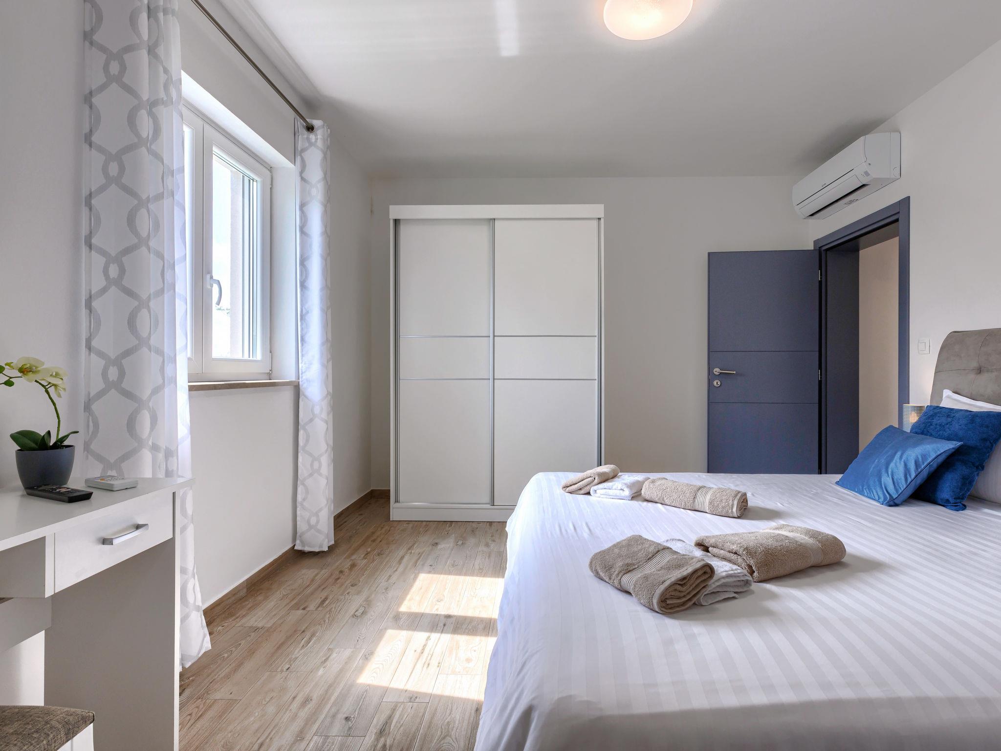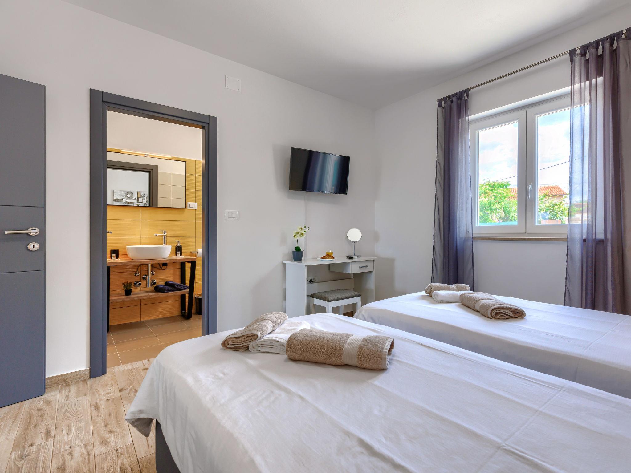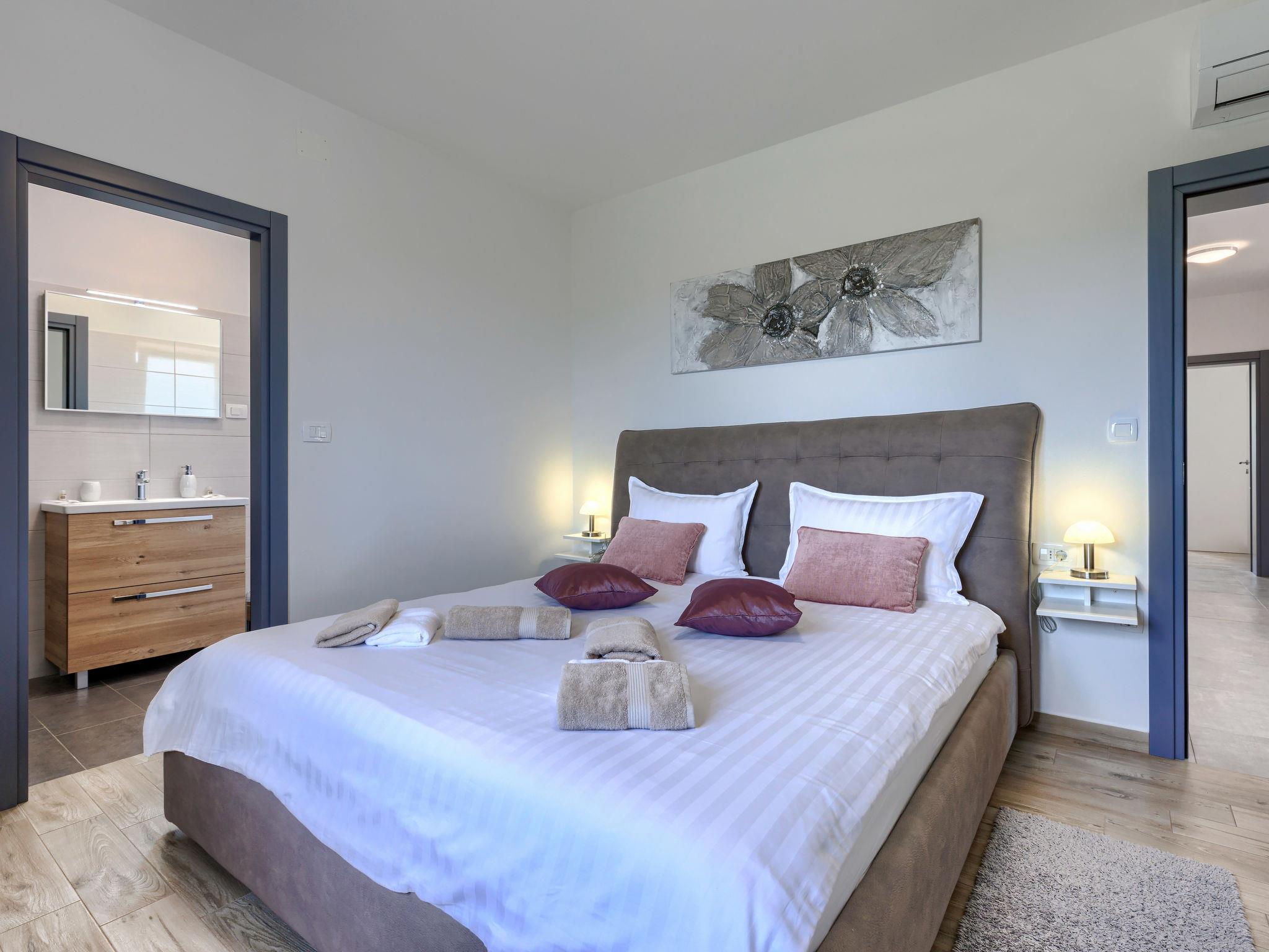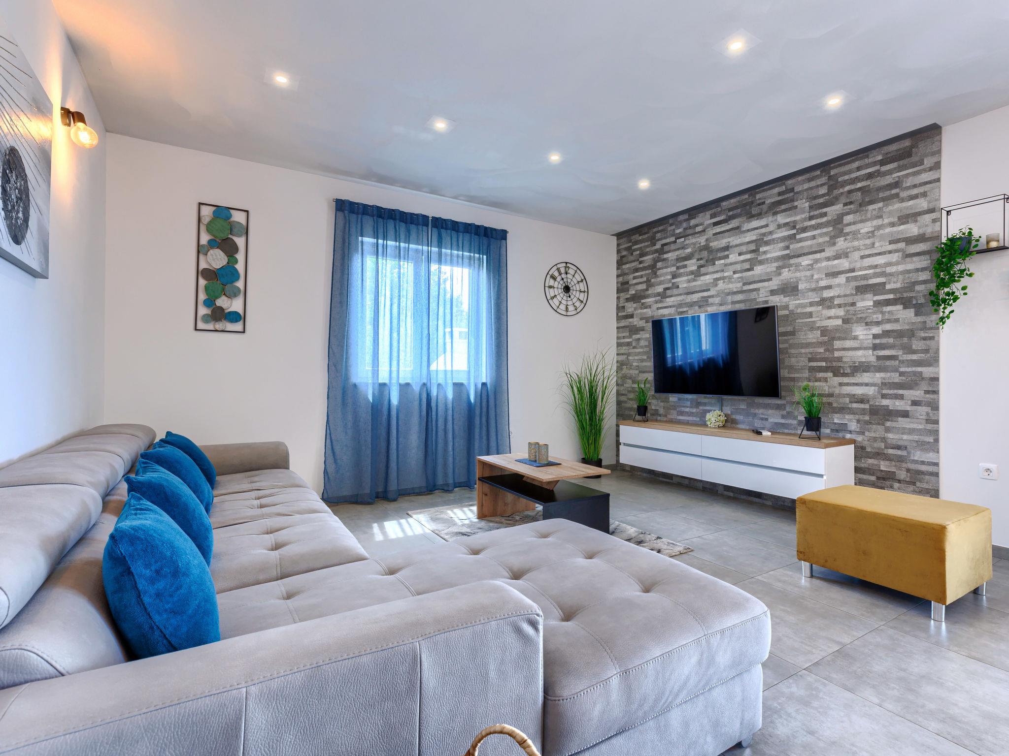 Beautiful single-family house "Villa Veli vrt", built in 2020. In the hamlet Kuhari 2 km from the centre of Žminj, 26 km from the centre of Rovinj, in a quiet, sunny position, 26 km from the sea. Private: property 1'000 m2 (fenced), garden with lawn and wildlife garden, swimming pool angular (8 x 4 m, depth 150 cm, seasonal availability: 01.Apr. - 31.Oct.) with internal staircase. Outdoor shower, barbecue, children's playground (swing). In the house: internet access, trampoline, washing machine. Roofed, parking (for 2 cars) at the house on the premises. Supermarket 1.5 km, restaurant 2 km, bus stop 2.9 km, pebble beach 26 km. Riding stable 10 km, walking paths from the house 100 m, cycle lane 150 m. Nearby attractions: adventure park 20 km, zip line 15 km. Please note: suitable for families. The owner does not accept any youth groups.