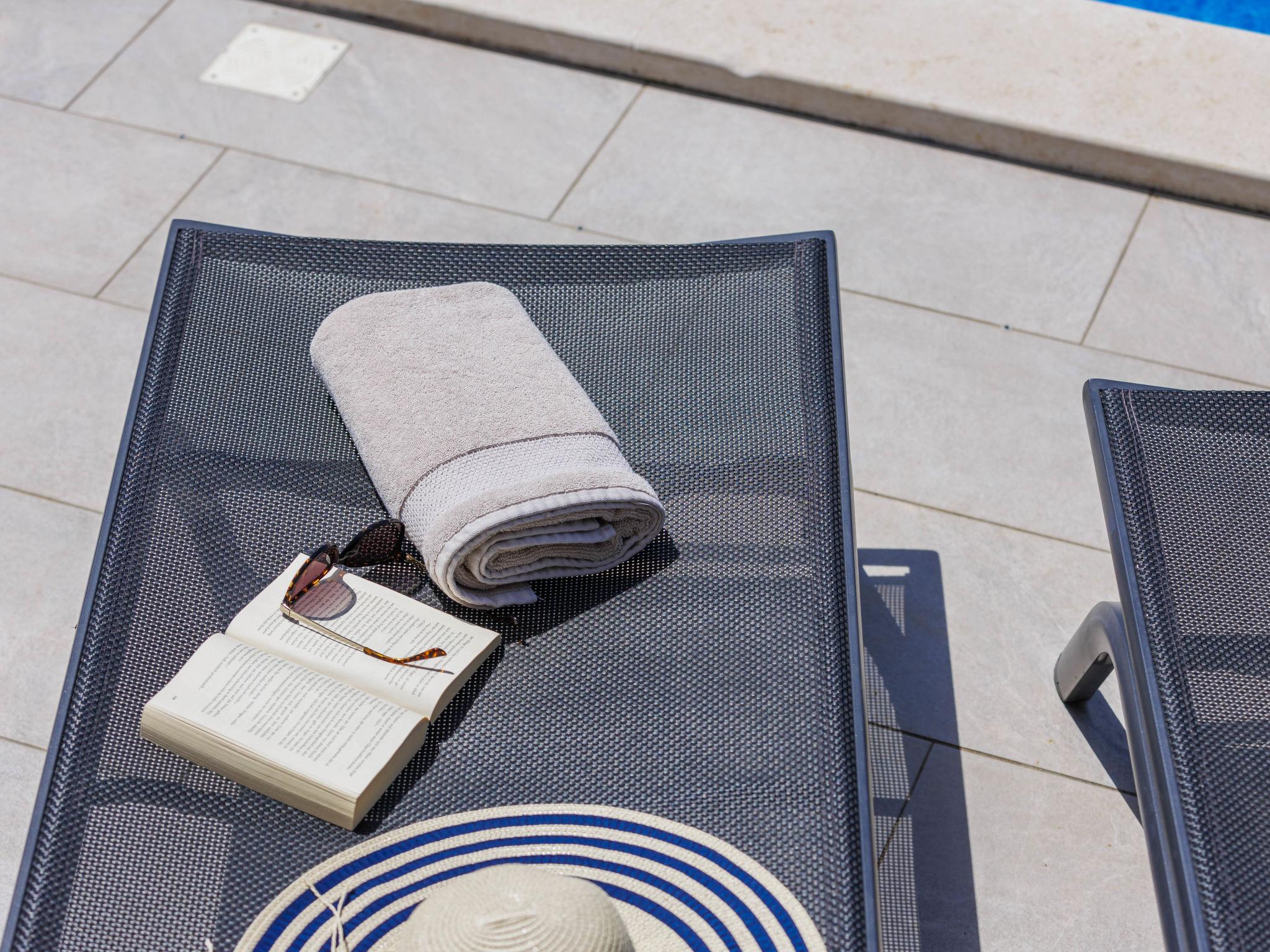 4-room house 141 m2. Beautiful and tasteful furnishings: living/dining room 45 m2 with satellite TV (flat screen), air conditioning. Exit to the terrace, to the swimming pool. 2 rooms, each room with 1 french bed (180 cm, length 200 cm), shower/WC and satellite TV (flat screen), air conditioning. 1 room with 2 beds (90 cm, length 200 cm), shower/WC and satellite TV (flat screen), air conditioning. Open kitchen (4 hot plates, oven, dishwasher, toaster, kettle, freezer, electric coffee machine). No heating option. Terrace 19 m2, roofed. Terrace furniture, deck chairs. View of the swimming pool. Facilities: iron, mosquito net, children's high chair, baby cot, hair dryer. Internet (WiFi, free). 4577