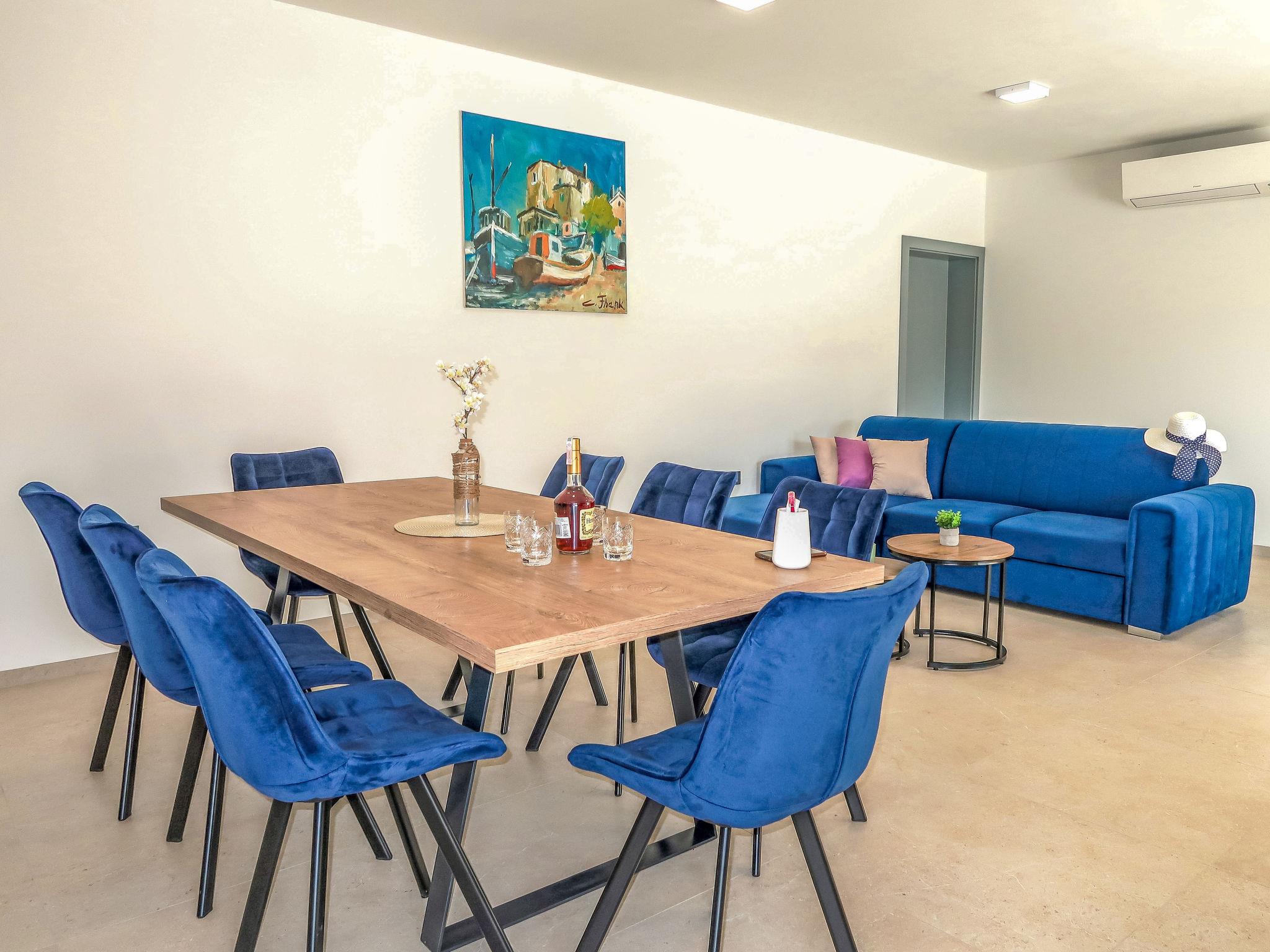 4-room villa 160 m2 on 2 levels. Living/dining room with 1 double sofabed (140 cm, length 200 cm), satellite TV and air conditioning. Exit to the terrace, to the swimming pool. 1 room with 1 french bed (160 cm, length 200 cm), shower/WC, satellite TV and air conditioning. Open kitchen (oven, dishwasher, 4 induction hot plates, toaster, kettle, microwave, freezer, electric coffee machine). Exit to the terrace, to the swimming pool. Sep. WC. Upper floor: 1 room with 1 french bed (160 cm, length 200 cm), shower/WC, satellite TV and air conditioning. 1 room with 2 beds (90 cm, length 200 cm), shower/WC, satellite TV and air conditioning. Terrace 115 m2, terrace 30 m2, roofed. Terrace furniture, deck chairs. Facilities: iron, hair dryer. Internet (WiFi, free). Please note: non-smoking house.
