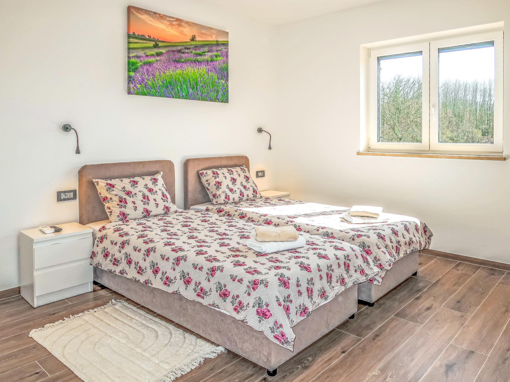 Beautiful single-family house "Villa Temelia", 2 storeys. In the hamlet Salamunišce 9 km from the centre of Žminj, 27 km from the sea, in the countryside. Private: property 1'000 m2 with lawn and wildlife garden, swimming pool angular (8 x 4 m, depth 140 cm, seasonal availability: 01.May. - 30.Oct.) with internal staircase and salt-electrolysis pool-cleaning system. Outdoor shower, terrace, barbecue (slide, swing), pool maintenance by the owner/gardener. In the house: internet access, trampoline, washing machine. Parking (for 3 cars) at the house on the premises. Shop 5 km, supermarket 9 km, restaurant 9 km, bus stop "Žminj" 9 km, pebble beach 27 km. Please note: airfield 34 km from the property.