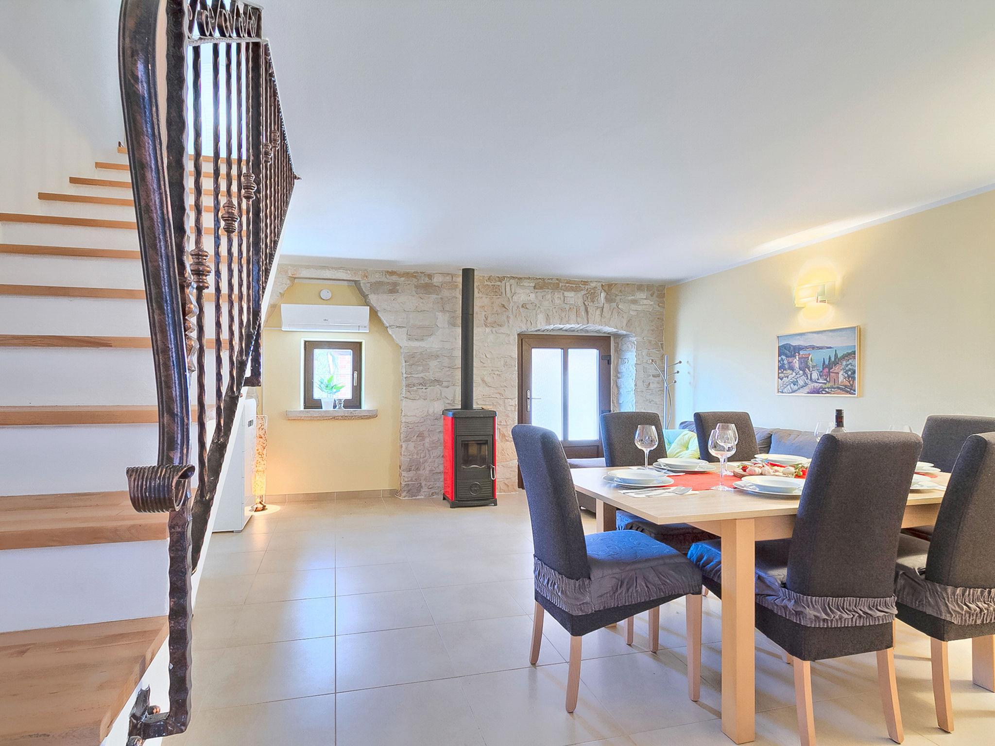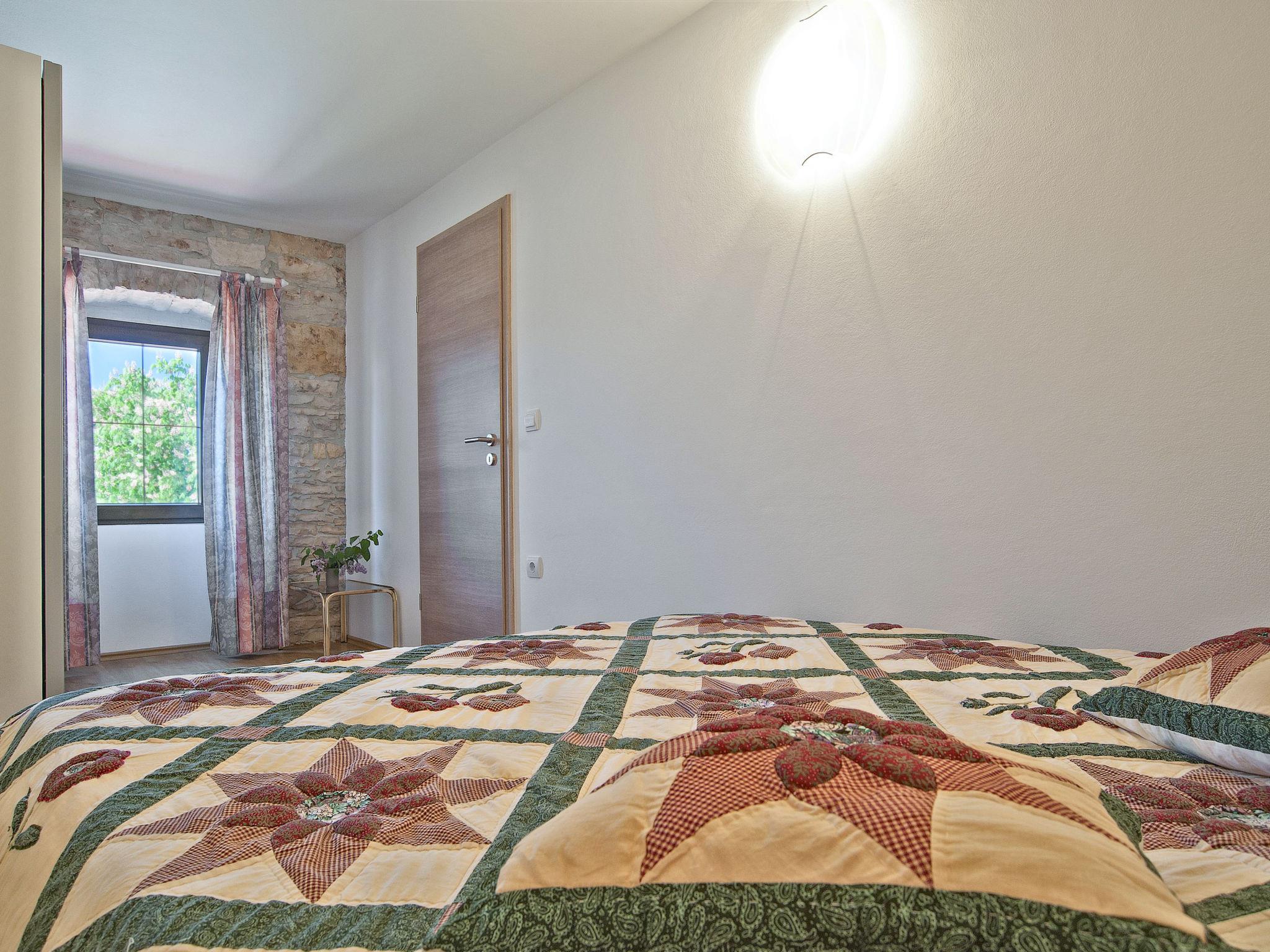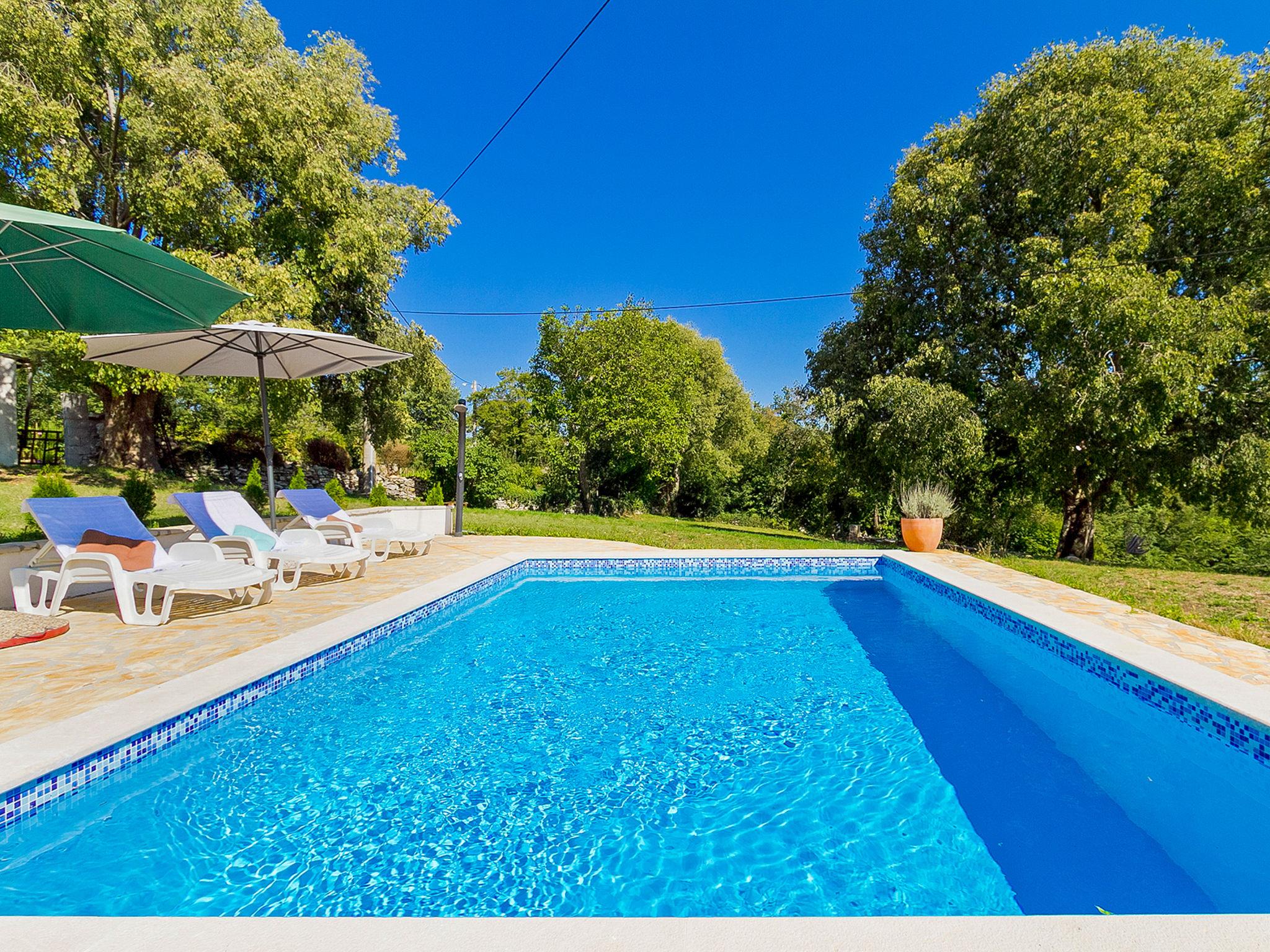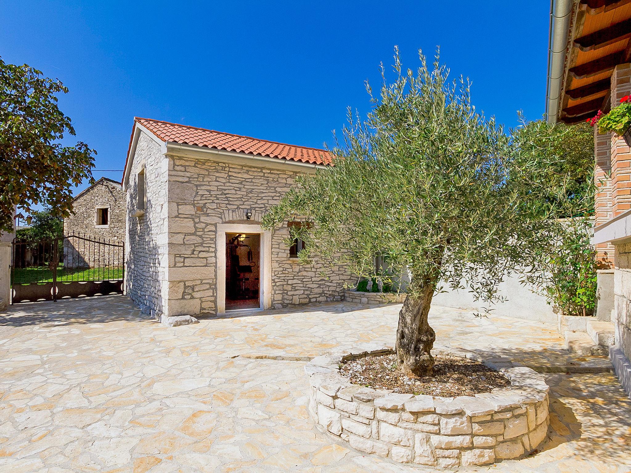 Semi-detached house "Mila", 2 storeys, built in 1800, renovated in 2014. In the hamlet Gržini 5 km from the centre of Žminj, in a quiet, sunny position, 20 km from the sea, in the countryside. Private: property 2'000 m2, beautiful garden with lawn, swimming pool angular (6 x 4 m, depth 140 cm, seasonal availability: 27.Apr. - 05.Oct.) with internal staircase. WC in the pool area, outdoor shower, volleyball, barbecue (swing). In the house: internet access, washing machine. Parking at the house on the premises. Shop 1 km, restaurant 100 m, bus stop 5.6 km, pebble beach 20 km. Walking paths from the house 100 m, cycle lane 150 m. The unit consists of the main house on 2 levels and a small cottage, rented as one unit.