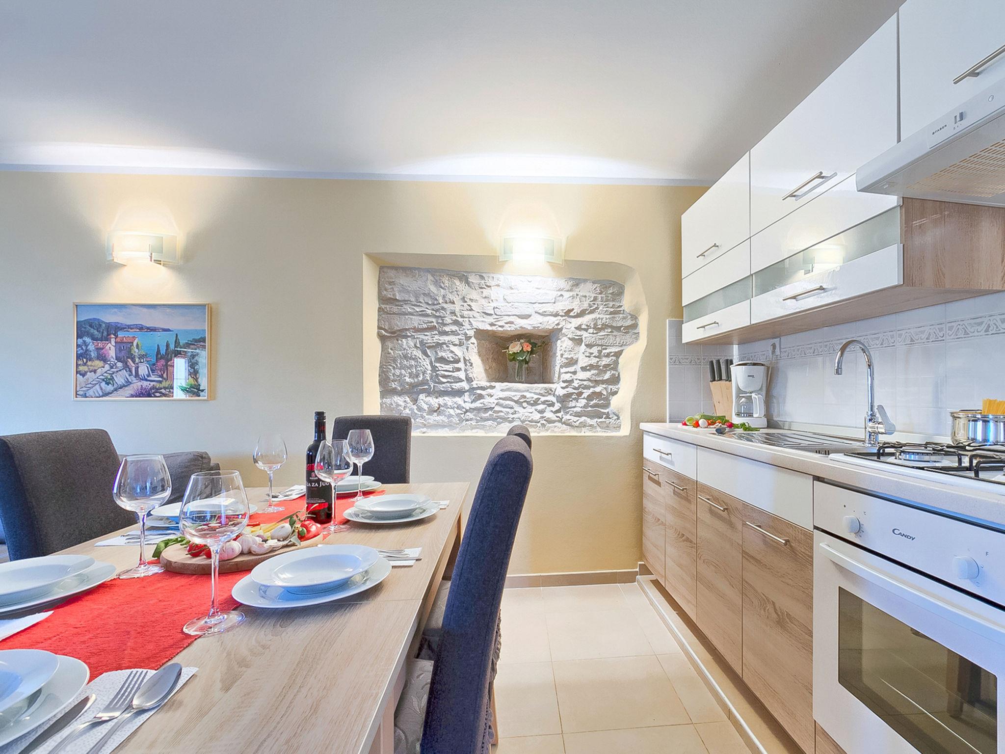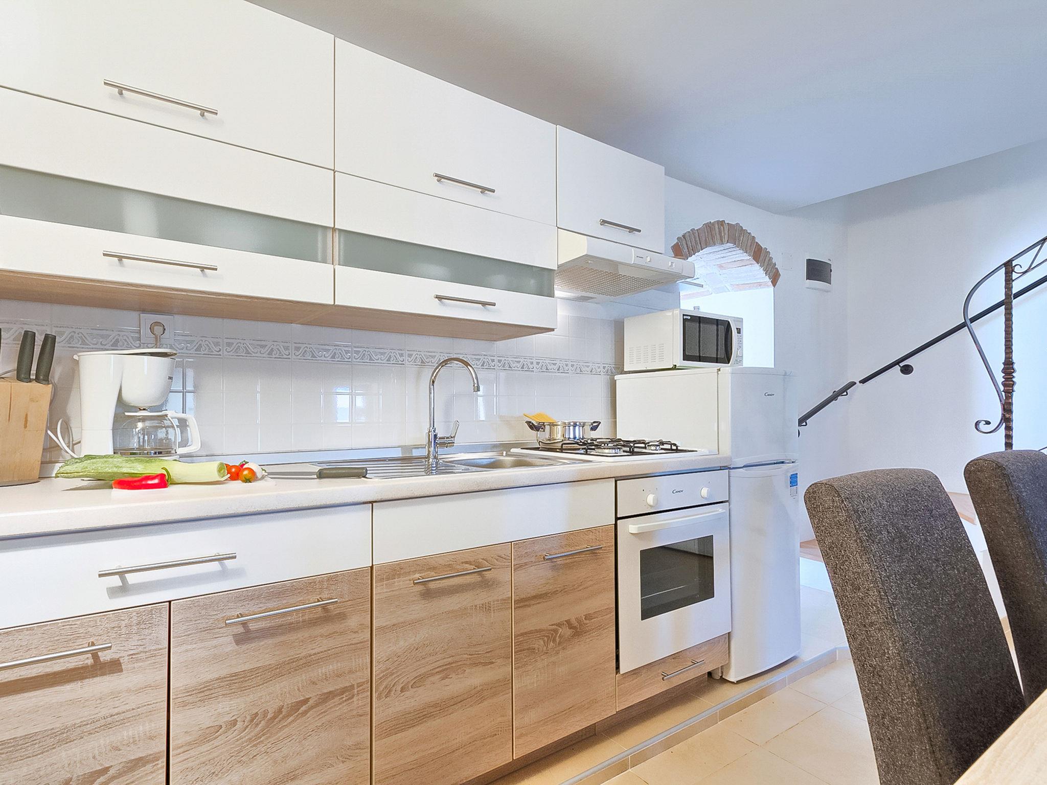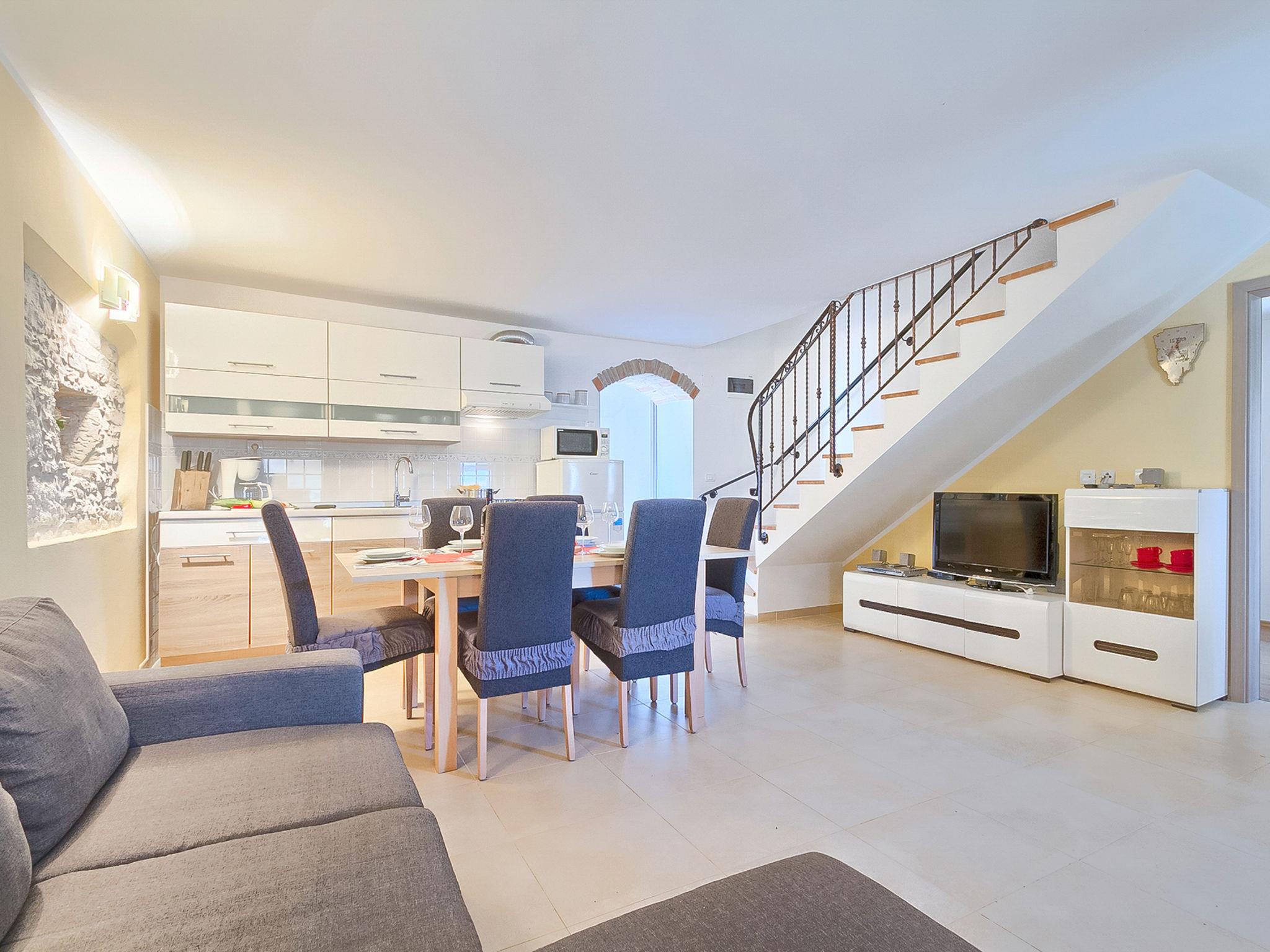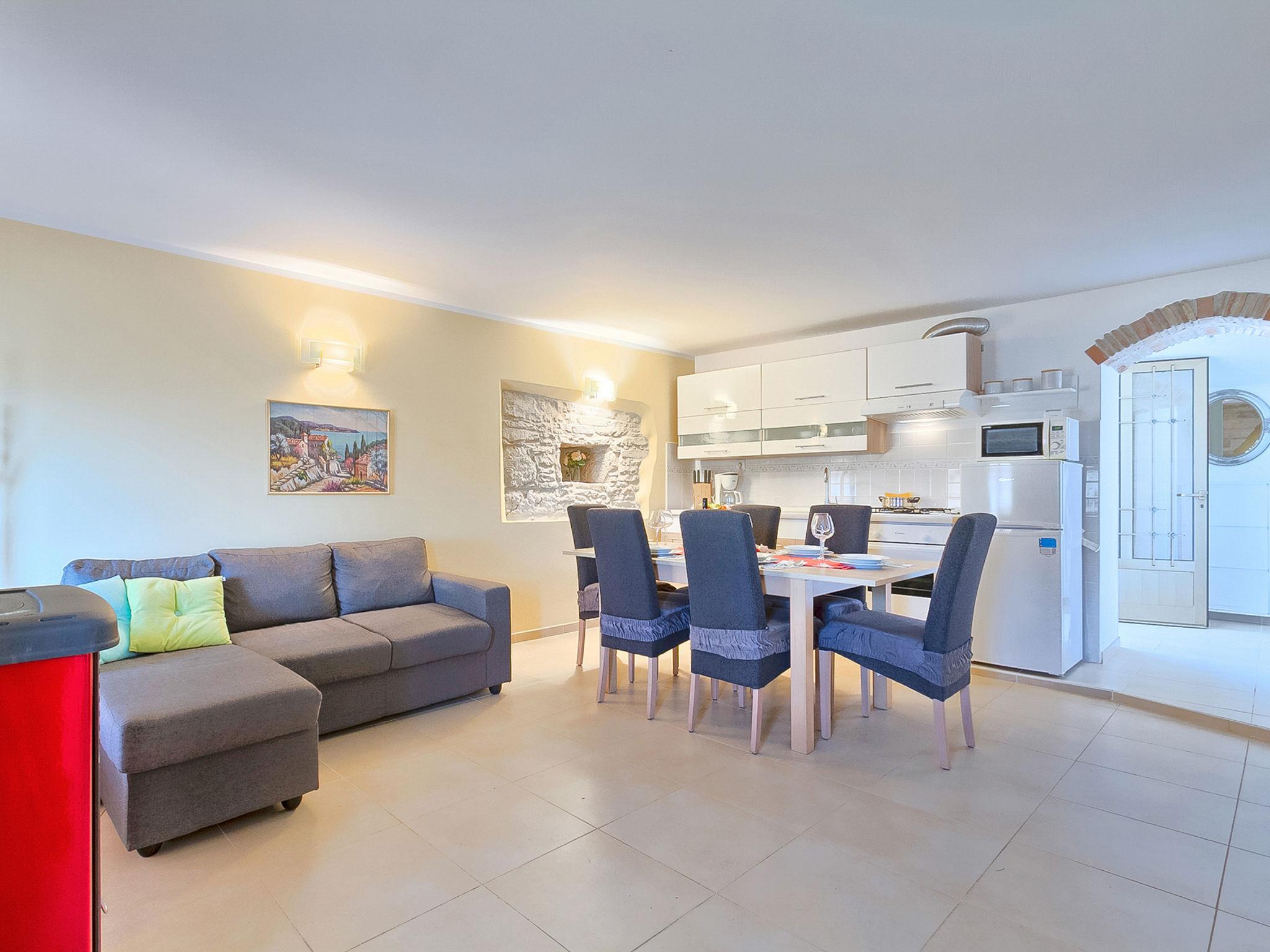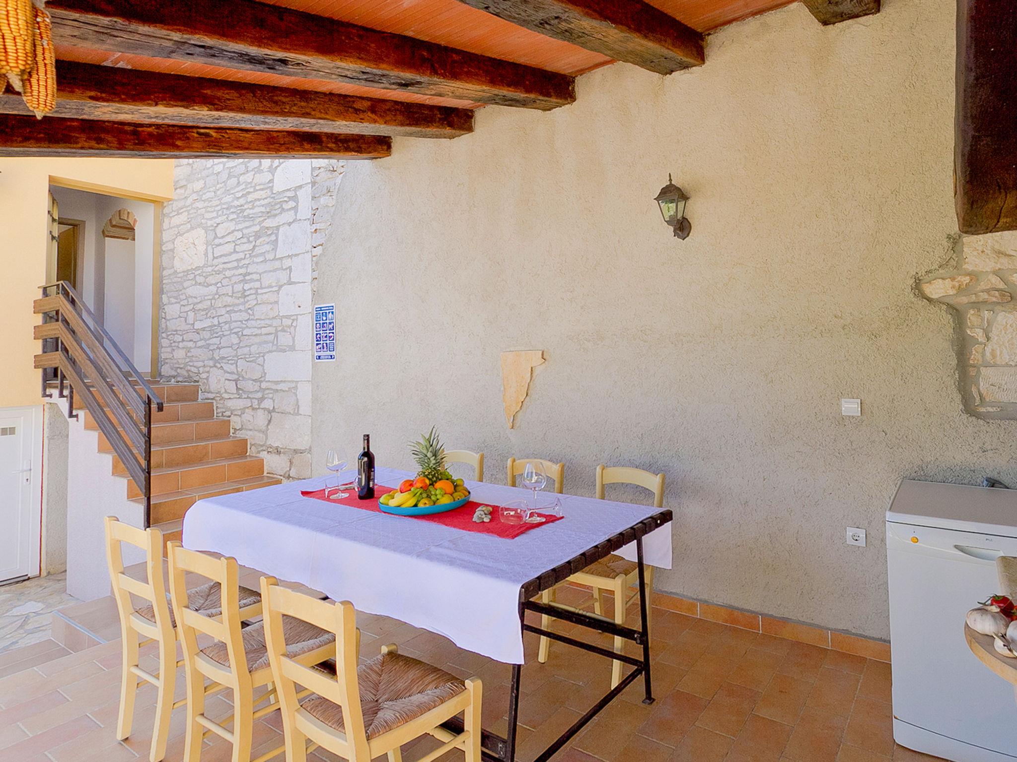 Semi-detached house "Mila", 2 storeys, built in 1800, renovated in 2014. In the hamlet Gržini 5 km from the centre of Žminj, in a quiet, sunny position, 20 km from the sea, in the countryside. Private: property 2'000 m2, beautiful garden with lawn, swimming pool angular (6 x 4 m, depth 140 cm, seasonal availability: 27.Apr. - 05.Oct.) with internal staircase. WC in the pool area, outdoor shower, volleyball, barbecue (swing). In the house: internet access, washing machine. Parking at the house on the premises. Shop 1 km, restaurant 100 m, bus stop 5.6 km, pebble beach 20 km. Walking paths from the house 100 m, cycle lane 150 m. The unit consists of the main house on 2 levels and a small cottage, rented as one unit.