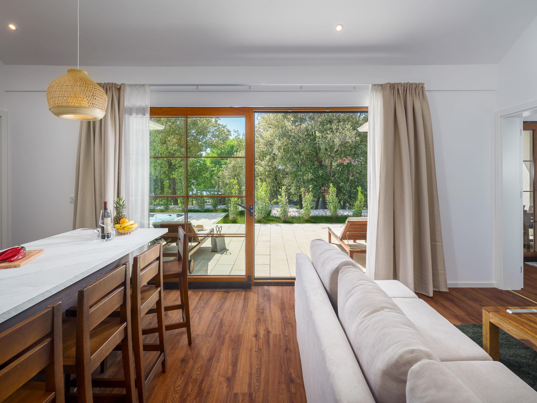Child friendly resort "Mon Perin". 6 km from the centre of Bale, 17 km from the centre of Rovinj, in a quiet, sunny position, at the seaside, on the beach. For shared use: property with trees, swimming pool (400 m2, depth 45 - 135 cm, seasonal availability: 18.May. - 21.Sep.). Children's pool, tennis, basketball, boccia, beach volleyball, children's playground, pool maintenance by the owner/gardener. Private: property 150 m2 with wildlife garden. Hot tub. In the complex: restaurant, bar, internet access, sauna (extra). Hot tub, infrared sauna, relaxation room, spa area for shared use hamam, table football, shopping facilities, air conditioning, laundry (for shared use, extra), bicycle rental. Parking at the house on the premises. E-charging station. Bus stop 4.2 km, pebble beach "Mon Perin", rocky beach "Mon Perin". Riding stable 500 m, walking paths from the house 100 m, cycle lane 150 m. Please note: entertainment. The camp has 1 additional paddling pool (90 m2, depth 60 cm, open from 01.06.-03.10.). Wellness and spa with indoor pool is for use only by adults over 18 years old.