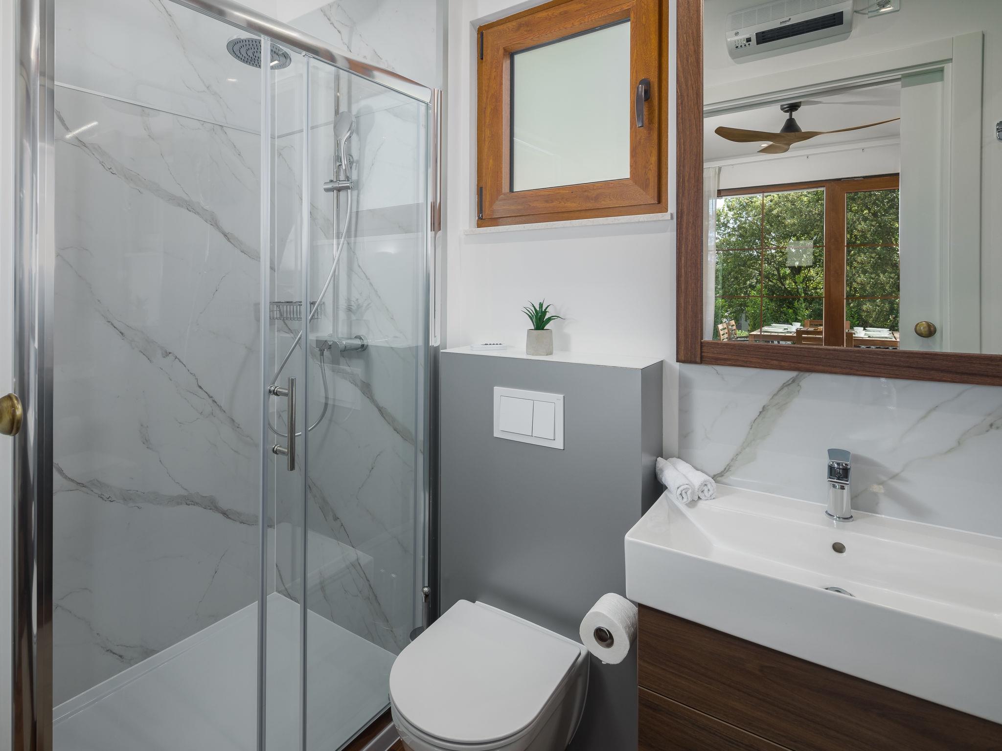 Child friendly resort "Mon Perin". 6 km from the centre of Bale, 17 km from the centre of Rovinj, in a quiet, sunny position, at the seaside, on the beach. For shared use: property with trees, swimming pool (400 m2, depth 45 - 135 cm, seasonal availability: 18.May. - 21.Sep.). Children's pool, tennis, basketball, boccia, beach volleyball, children's playground, pool maintenance by the owner/gardener. Private: property 150 m2 with wildlife garden. Hot tub. In the complex: restaurant, bar, internet access, sauna (extra). Hot tub, infrared sauna, relaxation room, spa area for shared use hamam, table football, shopping facilities, air conditioning, laundry (for shared use, extra), bicycle rental. Parking at the house on the premises. E-charging station. Bus stop 4.2 km, pebble beach "Mon Perin", rocky beach "Mon Perin". Riding stable 500 m, walking paths from the house 100 m, cycle lane 150 m. Please note: entertainment. The camp has 1 additional paddling pool (90 m2, depth 60 cm, open from 01.06.-03.10.). Wellness and spa with indoor pool is for use only by adults over 18 years old.