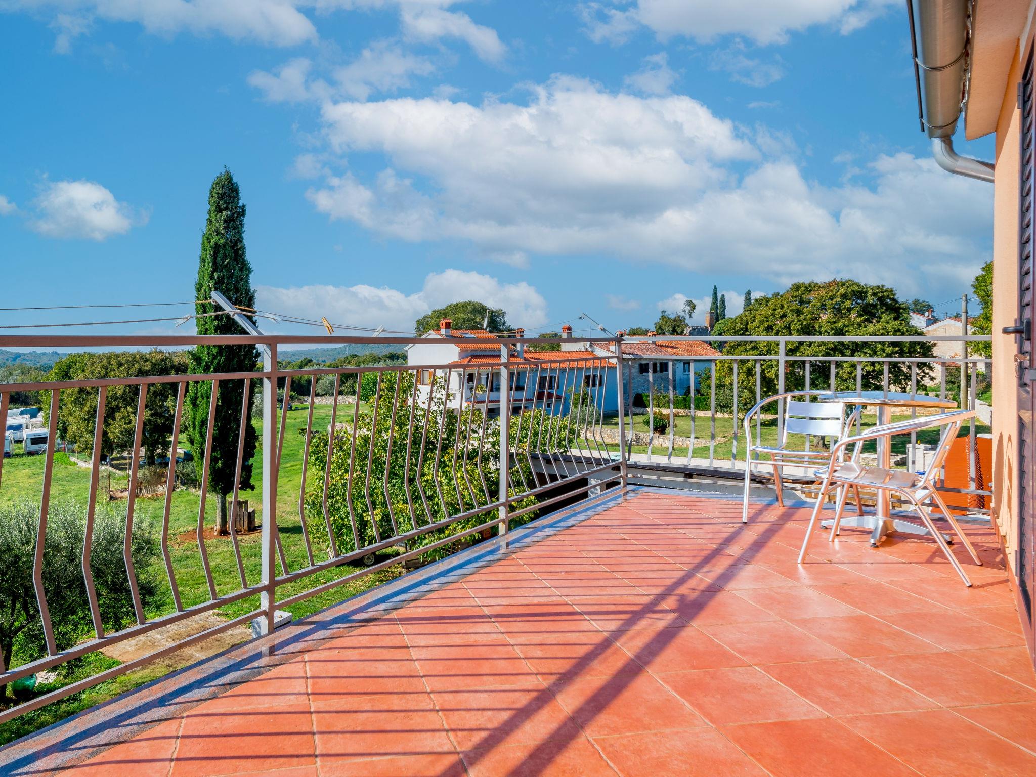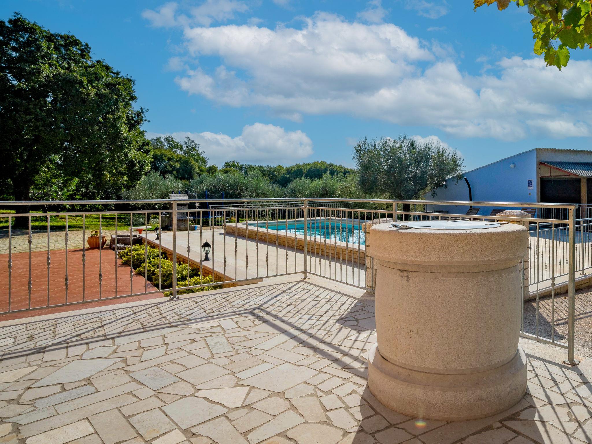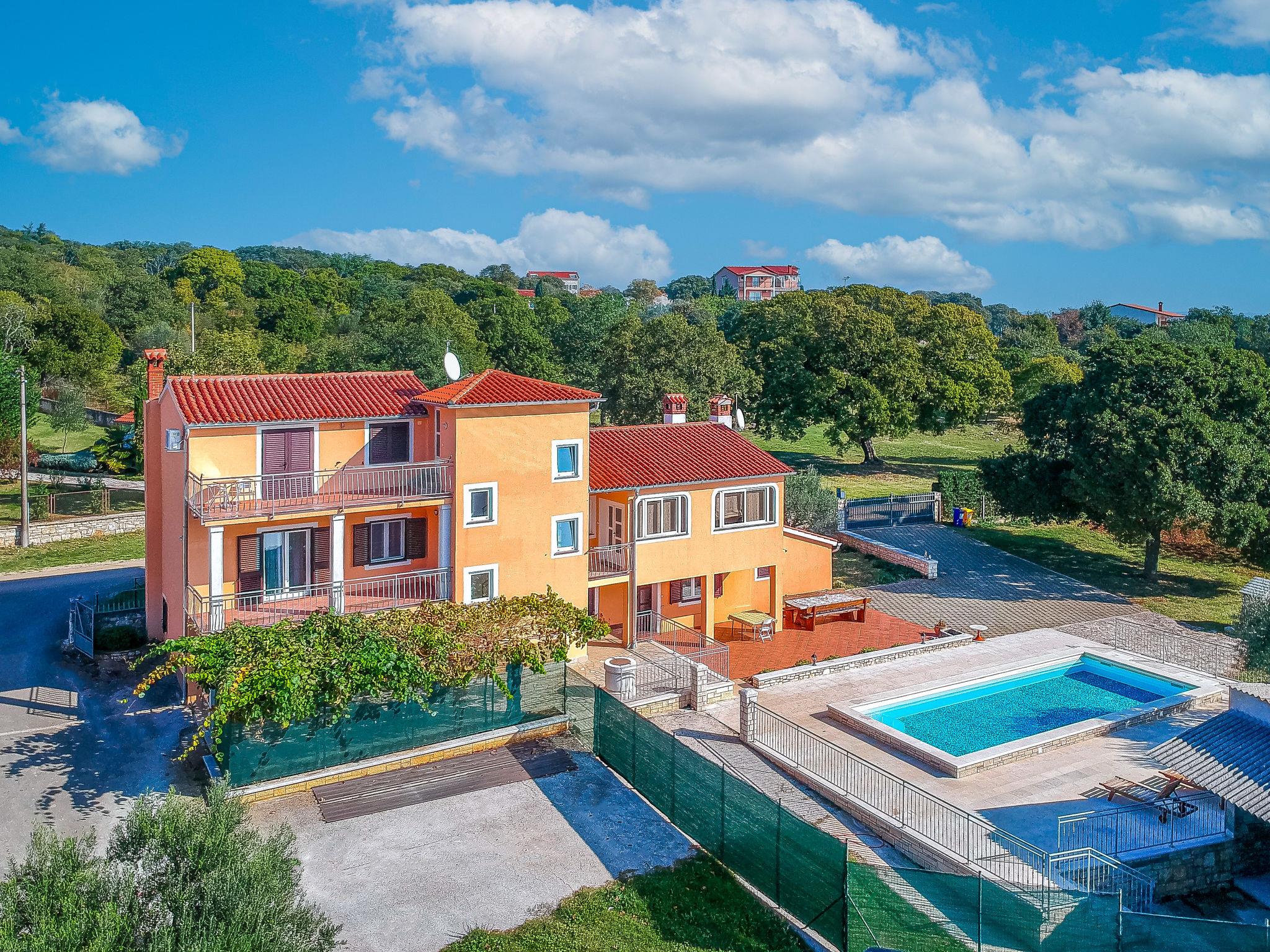Semi-detached house "Ulika", 3 storeys. In the hamlet Golaš 5 km from the centre of Bale, in a quiet, sunny position, 9 km from the sea. Private: property 1'000 m2, garden with wildlife garden and trees, swimming pool angular (4 x 10 m, depth 140 cm, seasonal availability: 01.May. - 01.Oct.). Outdoor shower, barbecue. In the house: internet access, washing machine. Parking at the house on the premises. Shop 5 km, restaurant 2 km, bus stop 5.2 km, pebble beach 11 km, park "Histria aromatica" 2 km, public bathing area 11 km. Groups of teenagers on request only. Please note: the owner lives on the same property. Semi-detached house consists of 3 apartments rented as one unit.