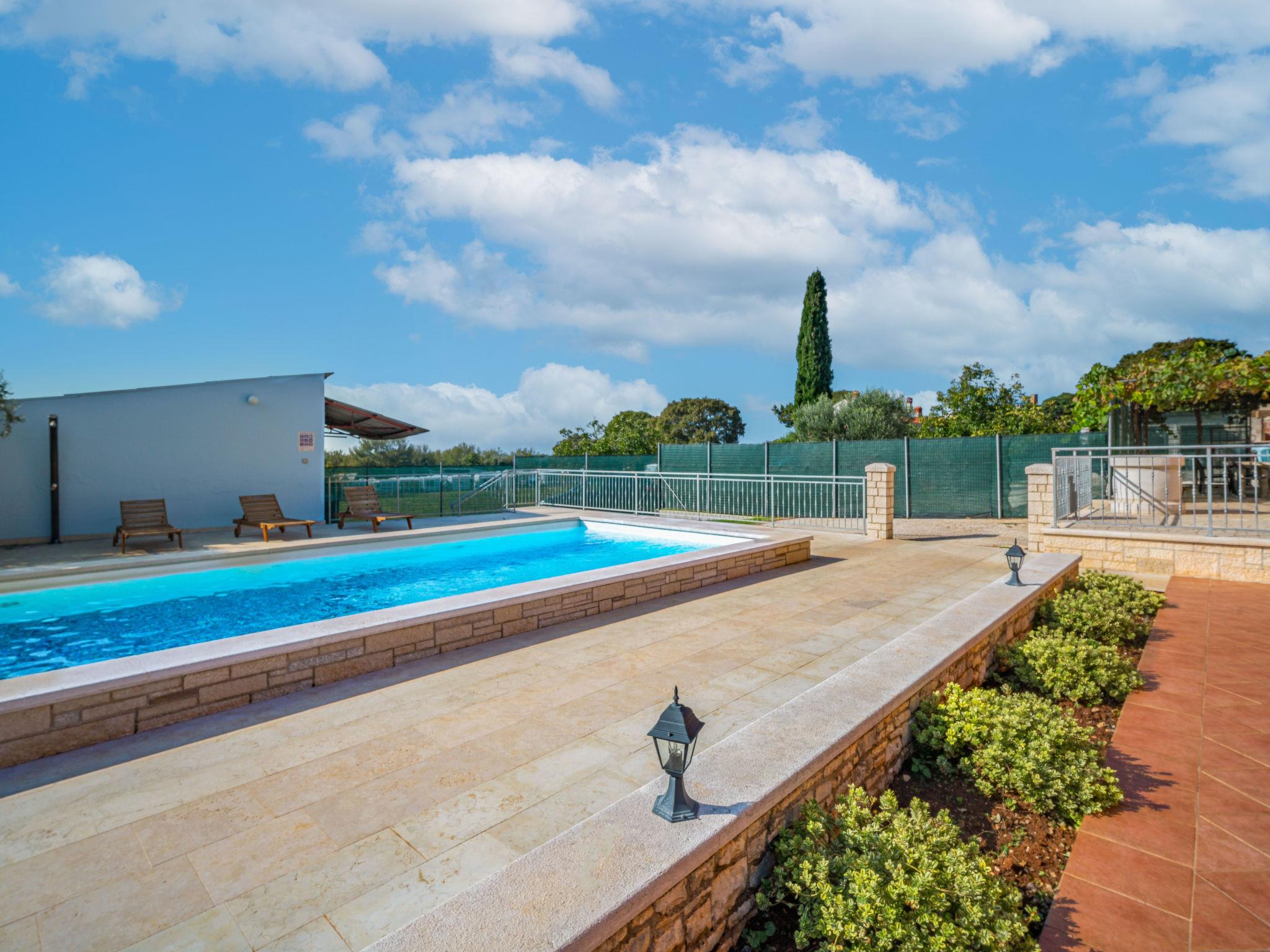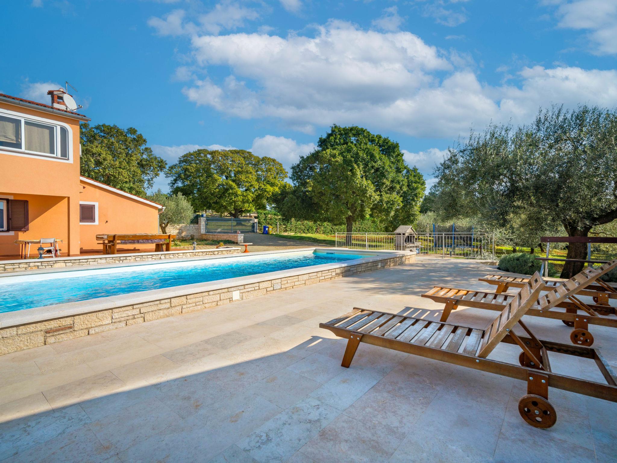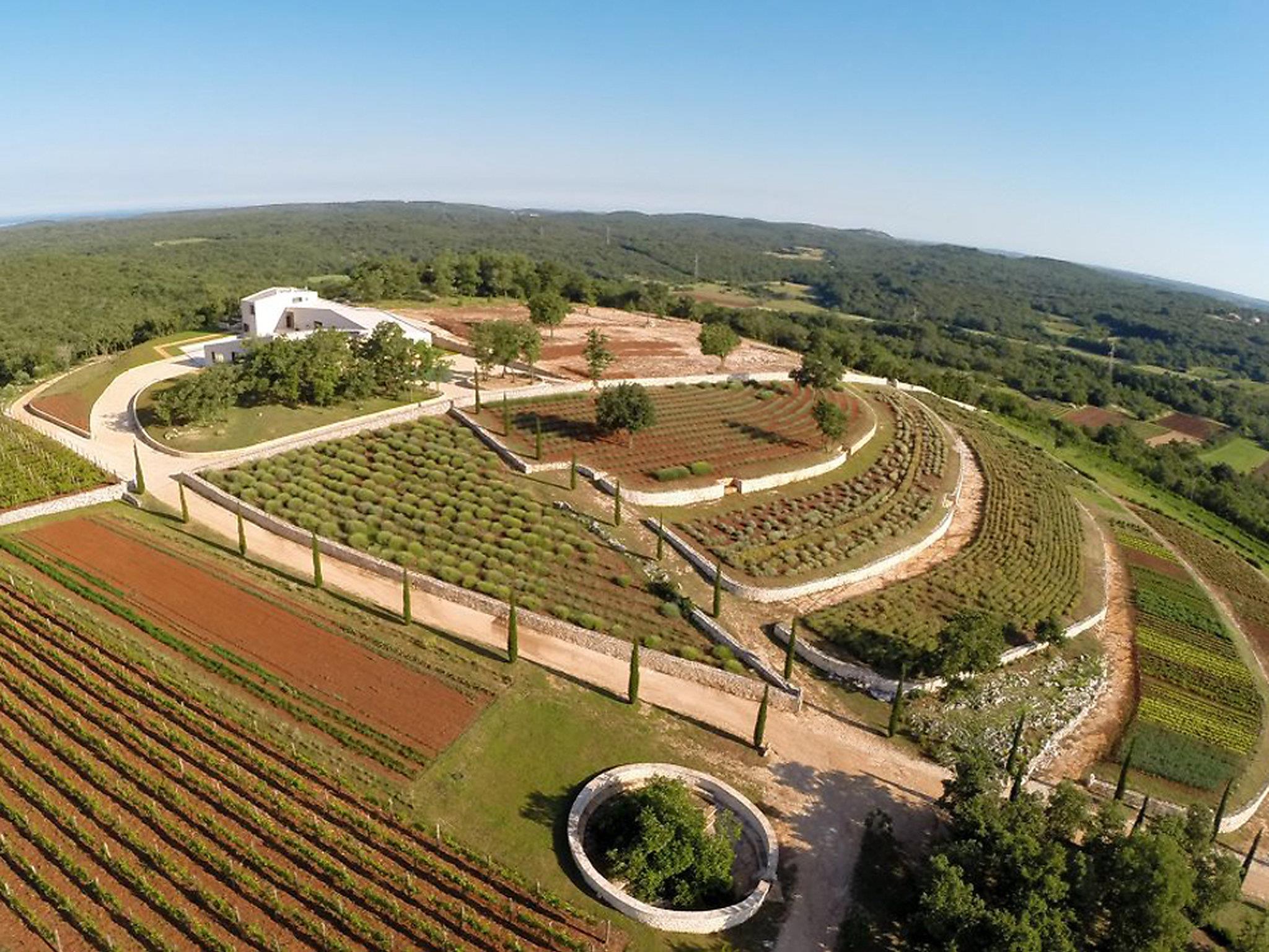 Semi-detached house "Ulika", 3 storeys. In the hamlet Golaš 5 km from the centre of Bale, in a quiet, sunny position, 9 km from the sea. Private: property 1'000 m2, garden with wildlife garden and trees, swimming pool angular (4 x 10 m, depth 140 cm, seasonal availability: 01.May. - 01.Oct.). Outdoor shower, barbecue. In the house: internet access, washing machine. Parking at the house on the premises. Shop 5 km, restaurant 2 km, bus stop 5.2 km, pebble beach 11 km, park "Histria aromatica" 2 km, public bathing area 11 km. Groups of teenagers on request only. Please note: the owner lives on the same property. Semi-detached house consists of 3 apartments rented as one unit.