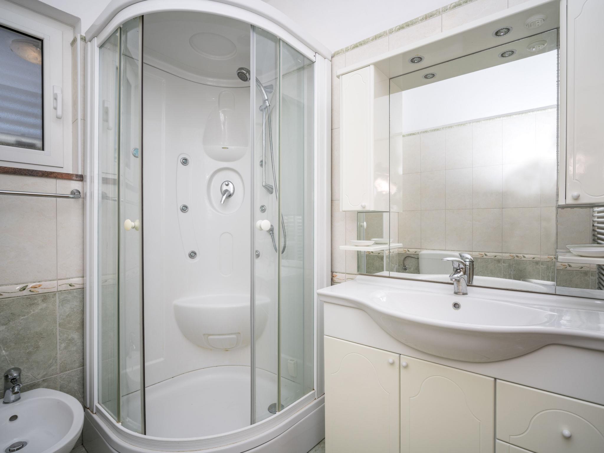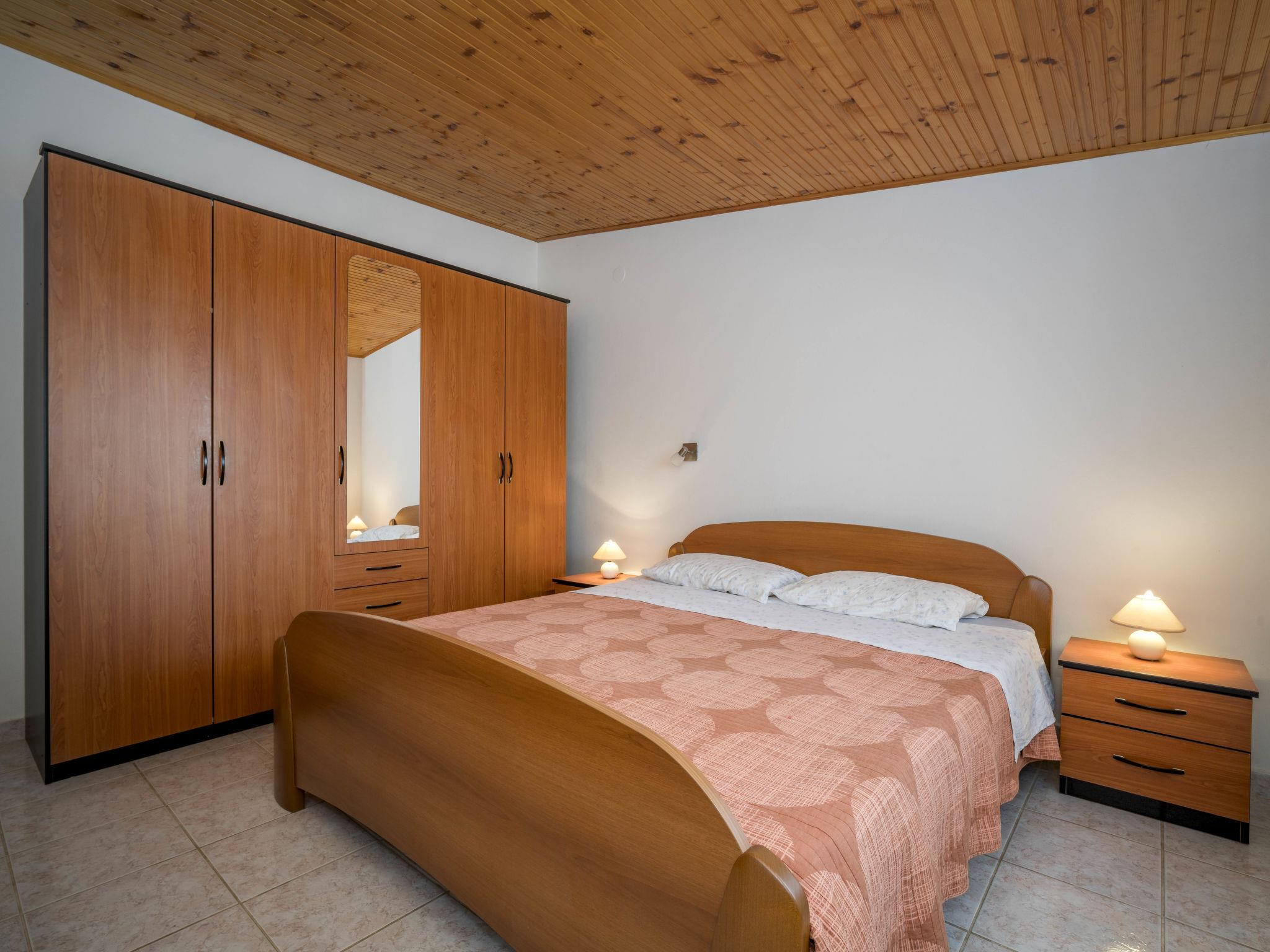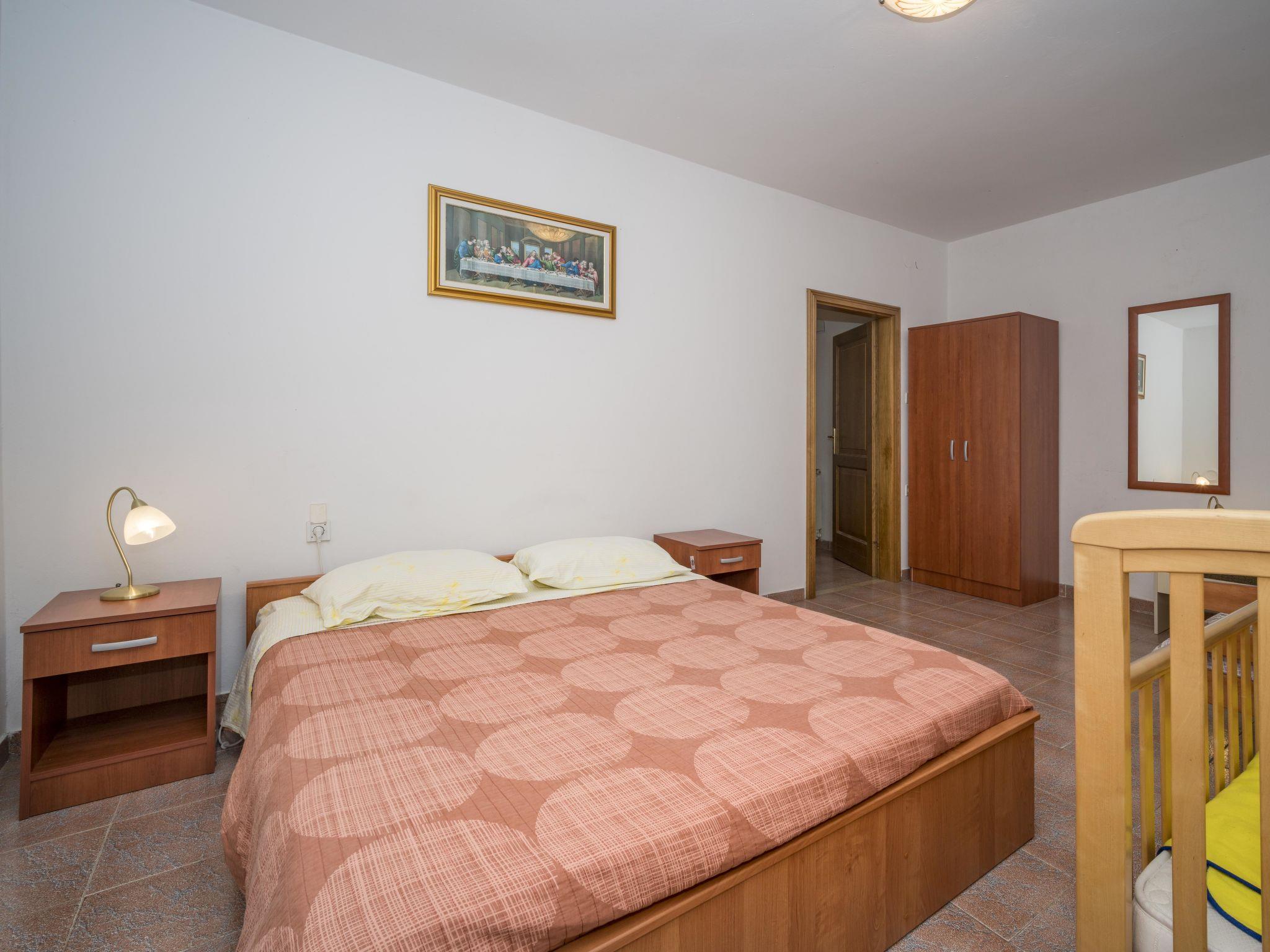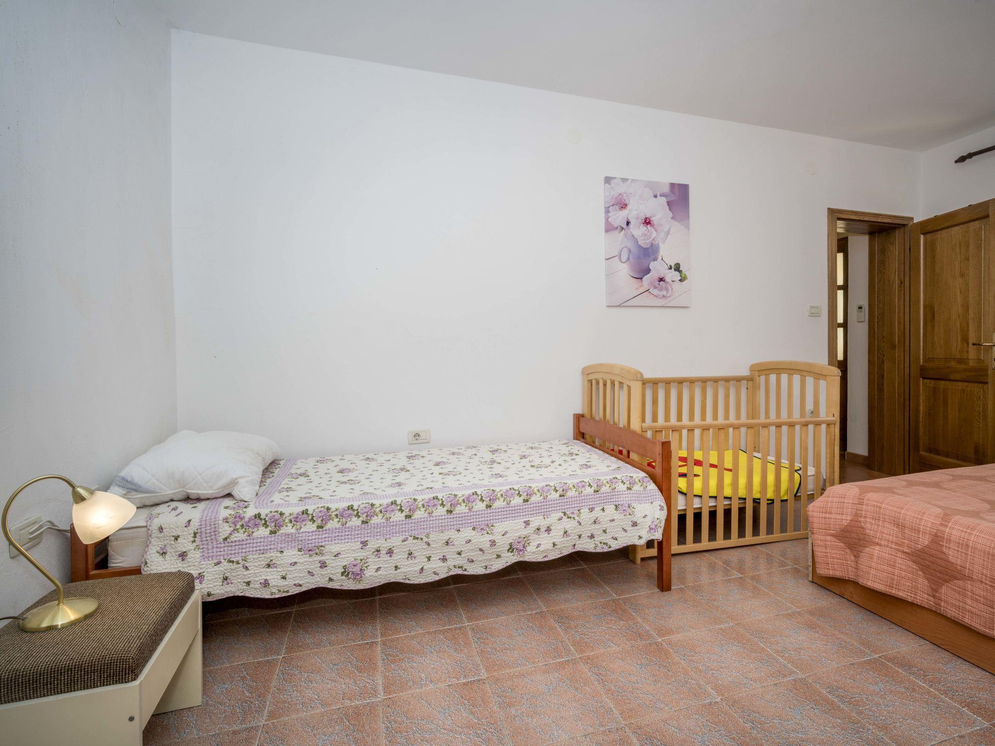7-room semi-detached house 200 m2 on 3 levels. Living/dining room with open-hearth fireplace (only for decoration), satellite TV (flat screen). Exit to the terrace. 1 room with 1 double bed (2 x 90 cm, length 200 cm), 1 folding bed (120 cm, length 190 cm). Open kitchen (4 hot plates, oven, dishwasher, freezer). Shower/WC. Upper floor: small living/dining room with 1 sofabed (140 cm, length 190 cm), satellite TV (flat screen), air conditioning. 1 room with 1 bed (90 cm, length 200 cm), 1 french bed (160 cm, length 200 cm). 1 room with 1 double bed (2 x 90 cm, length 190 cm). Open kitchen (4 hot plates, oven, dishwasher, freezer). Shower/WC. 2nd upper floor: living/dining room with 1 double sofabed (140 cm, length 190 cm), satellite TV (flat screen), air conditioning. Exit to the terrace. 1 room with 1 double bed (2 x 90 cm, length 200 cm). Open kitchen (4 hot plates, oven). Shower/WC. Terrace 30 m2, terrace 15 m2. Terrace furniture, deck chairs. Partial distant view of the sea. Facilities: Internet (WiFi, free). Maximum 1 pet/ dog allowed. Apartment on the ground floor (separate entrance): living/dining area, open kitchen, 1 bedroom.