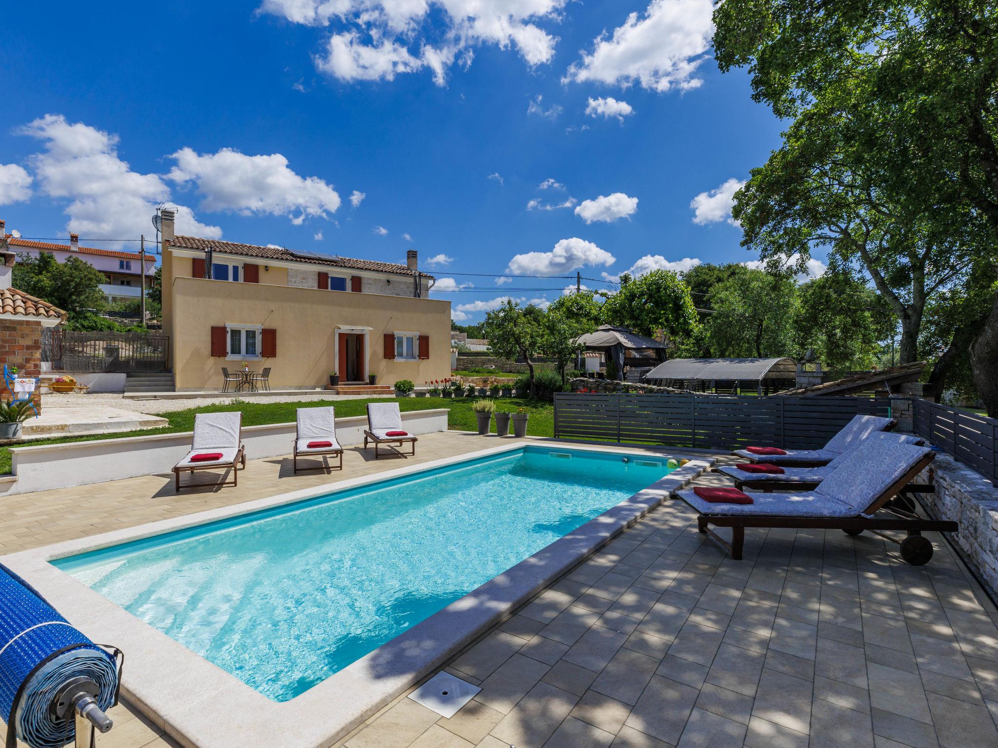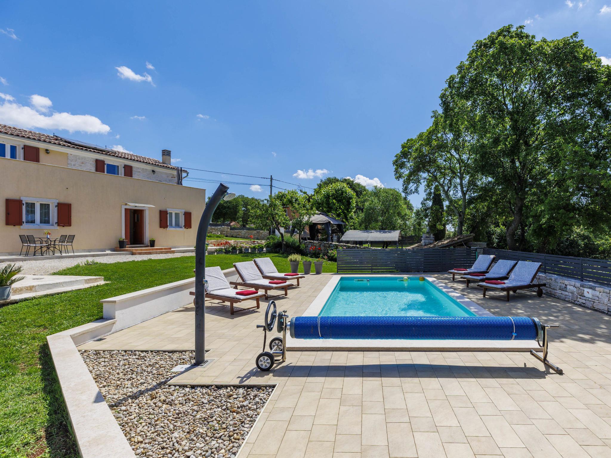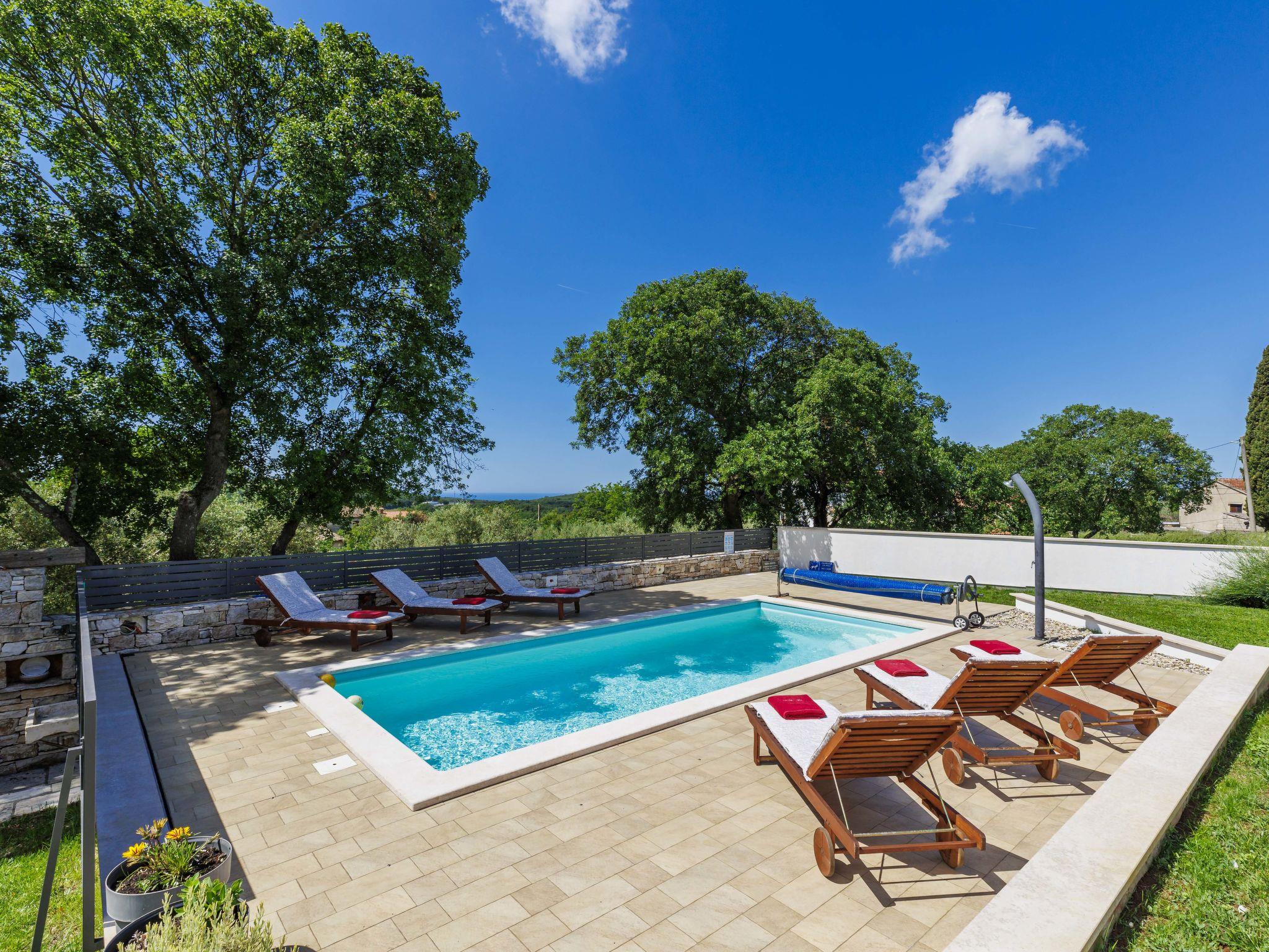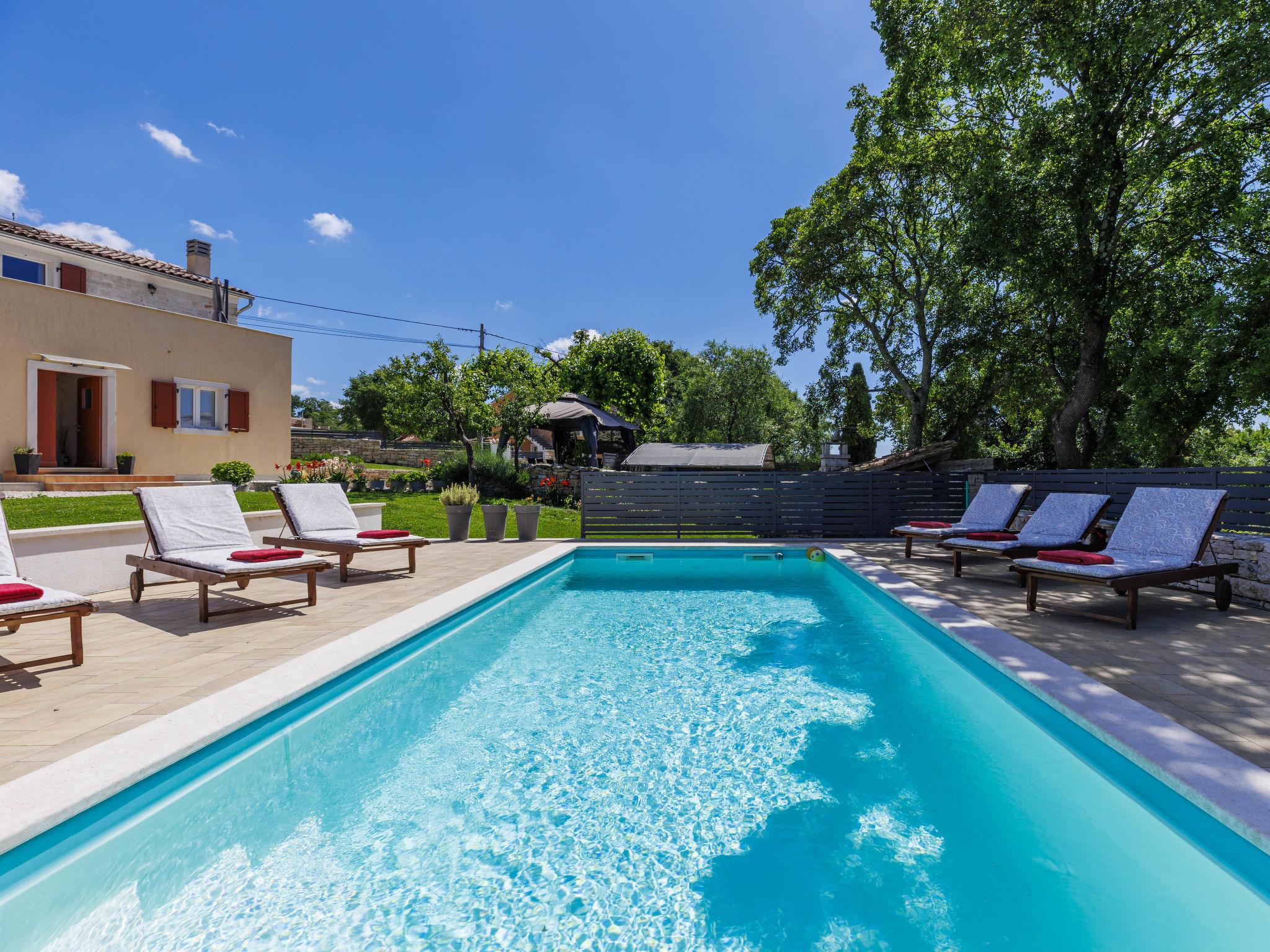 Villa "Fuma", 2 storeys. In the hamlet Golaš 5 km from the centre of Bale, in a sunny, elevated position, 9 km from the sea, on the beach. Private: property 1'000 m2, garden with wildlife garden and trees, swimming pool angular (7 x 3 m, 21 m2, depth 140 cm, seasonal availability: 01.May. - 01.Oct.). Outdoor shower, barbecue. In the house: internet access, air conditioning, washing machine. Parking (for 3 cars) at the house on the premises. Shop 5 km, restaurant 2 km, bus stop 5.5 km, pebble beach 11 km, park "Histria aromatica" 2 km, public bathing area 11 km. Please note: suitable for families. Groups of teenagers on request only.