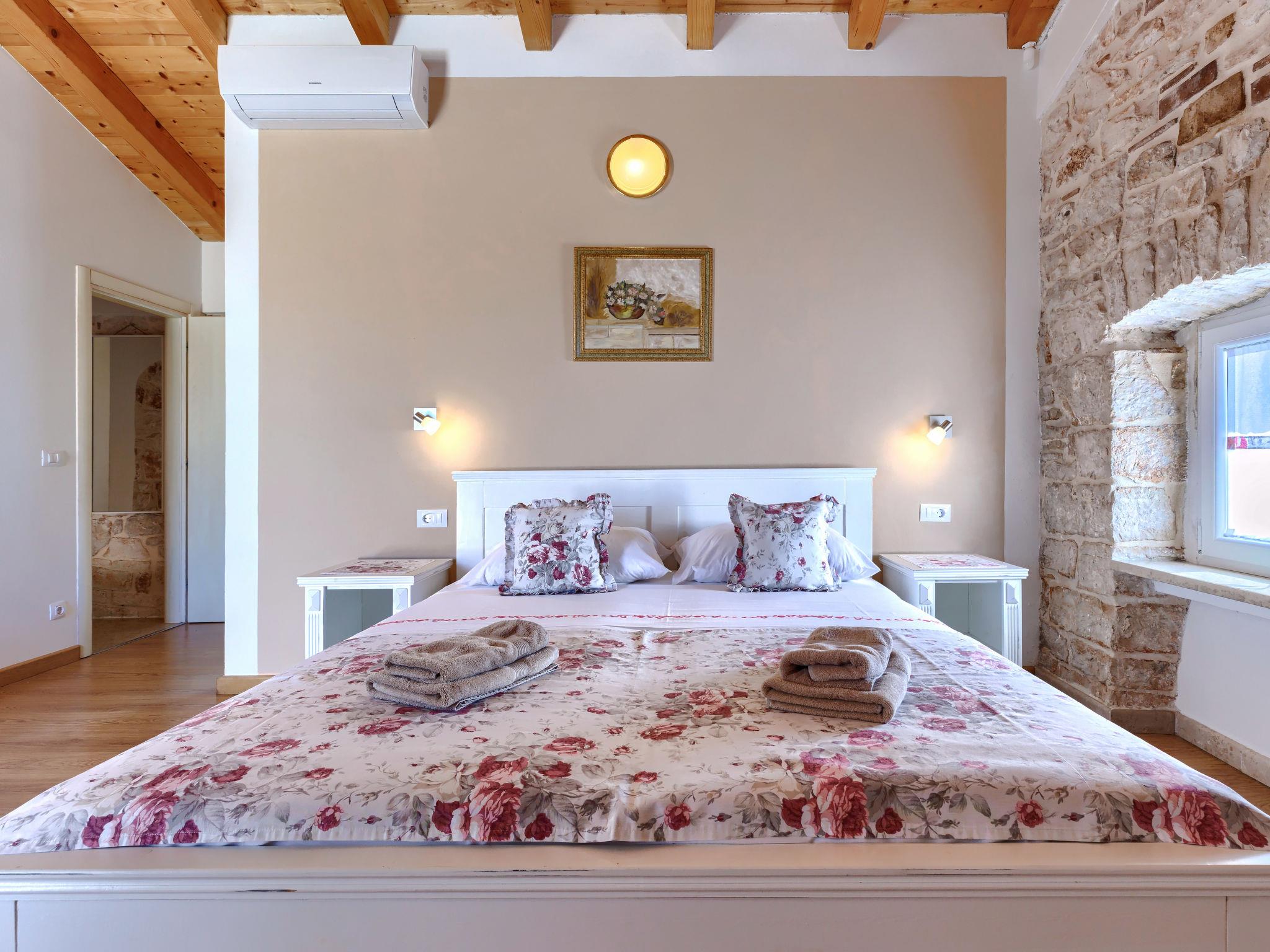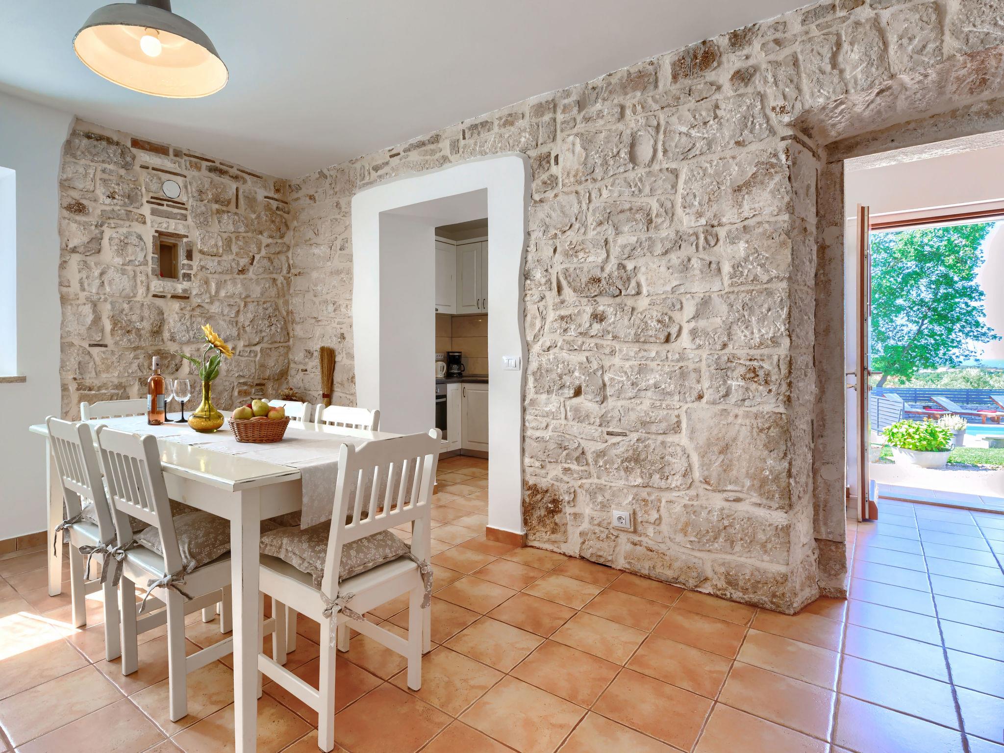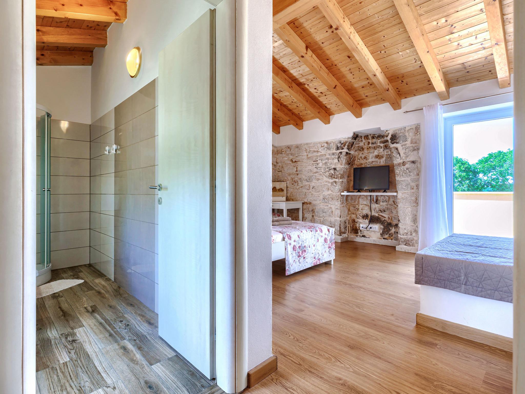 Villa "Fuma", 2 storeys. In the hamlet Golaš 5 km from the centre of Bale, in a sunny, elevated position, 9 km from the sea, on the beach. Private: property 1'000 m2, garden with wildlife garden and trees, swimming pool angular (7 x 3 m, 21 m2, depth 140 cm, seasonal availability: 01.May. - 01.Oct.). Outdoor shower, barbecue. In the house: internet access, air conditioning, washing machine. Parking (for 3 cars) at the house on the premises. Shop 5 km, restaurant 2 km, bus stop 5.5 km, pebble beach 11 km, park "Histria aromatica" 2 km, public bathing area 11 km. Please note: suitable for families. Groups of teenagers on request only.