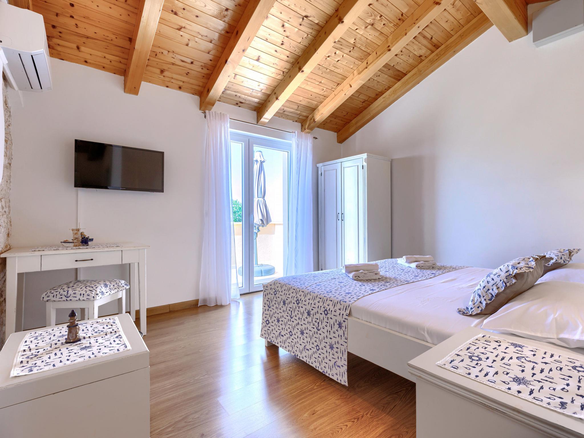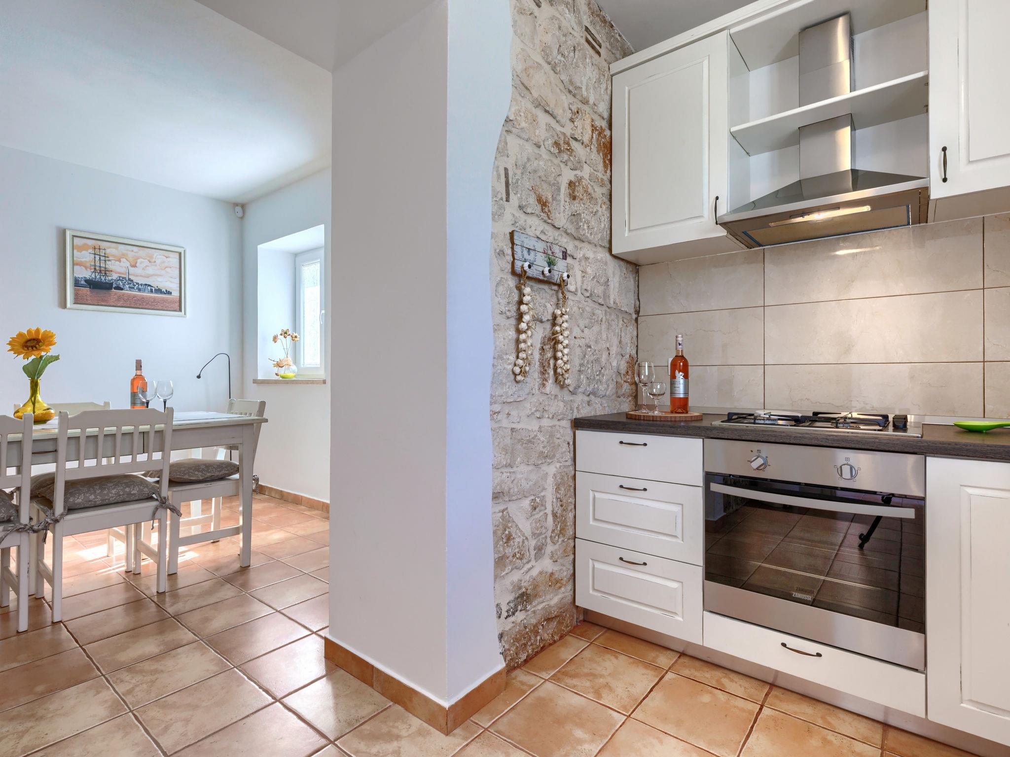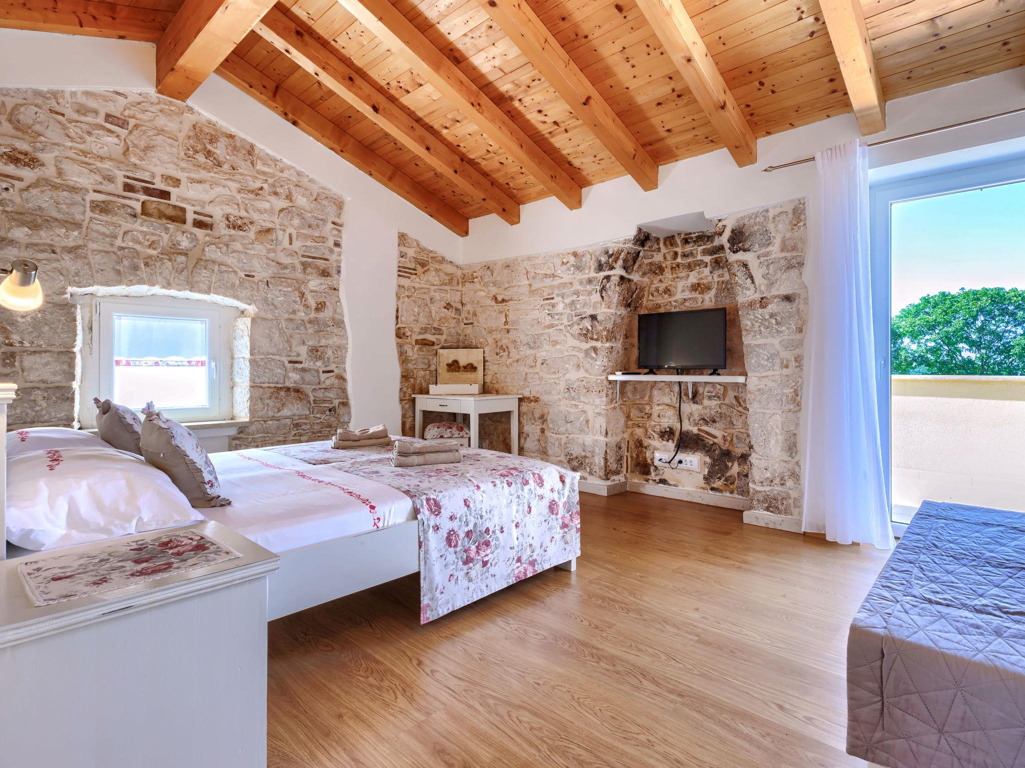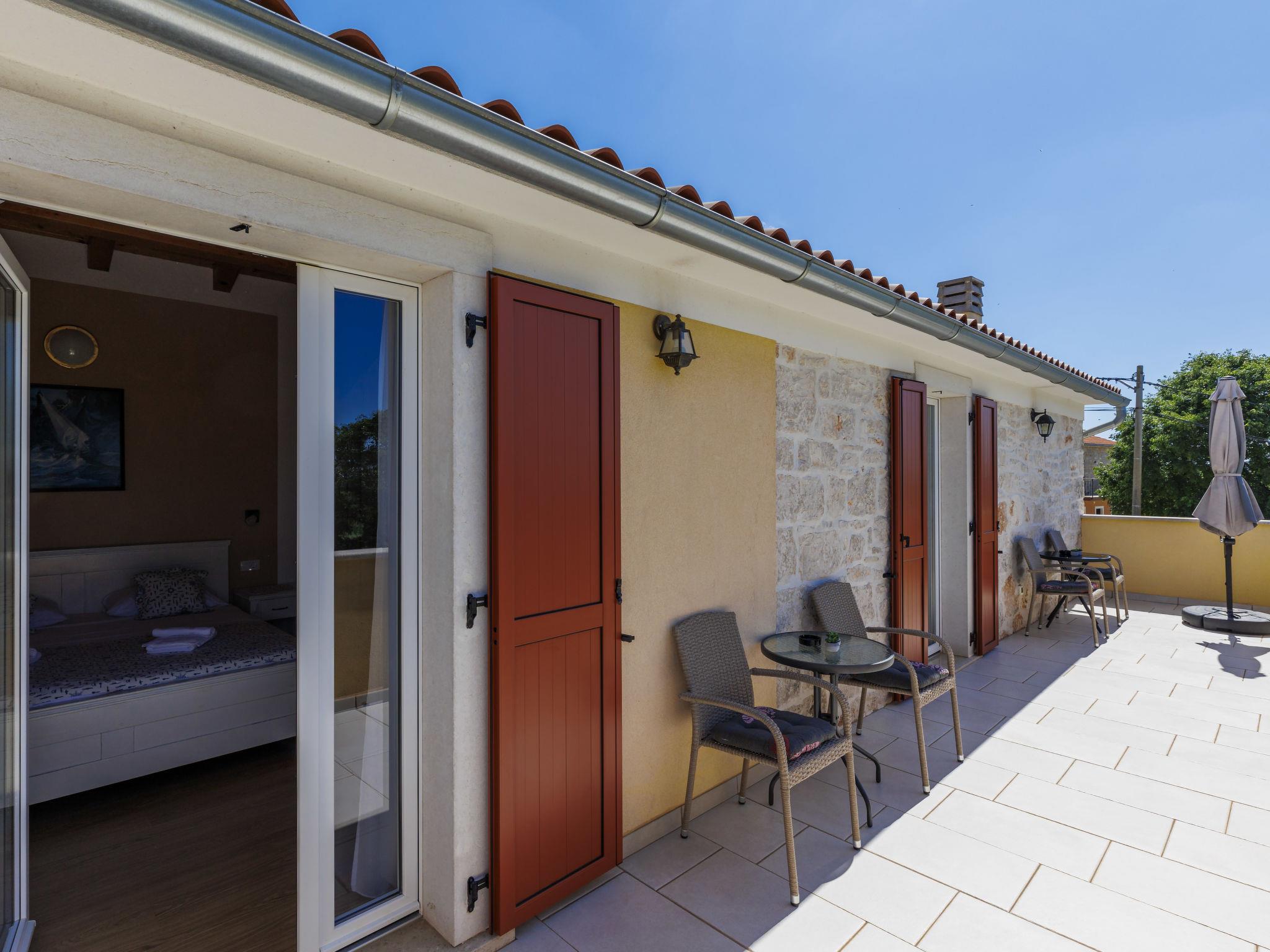 Villa "Fuma", 2 storeys. In the hamlet Golaš 5 km from the centre of Bale, in a sunny, elevated position, 9 km from the sea, on the beach. Private: property 1'000 m2, garden with wildlife garden and trees, swimming pool angular (7 x 3 m, 21 m2, depth 140 cm, seasonal availability: 01.May. - 01.Oct.). Outdoor shower, barbecue. In the house: internet access, air conditioning, washing machine. Parking (for 3 cars) at the house on the premises. Shop 5 km, restaurant 2 km, bus stop 5.5 km, pebble beach 11 km, park "Histria aromatica" 2 km, public bathing area 11 km. Please note: suitable for families. Groups of teenagers on request only.