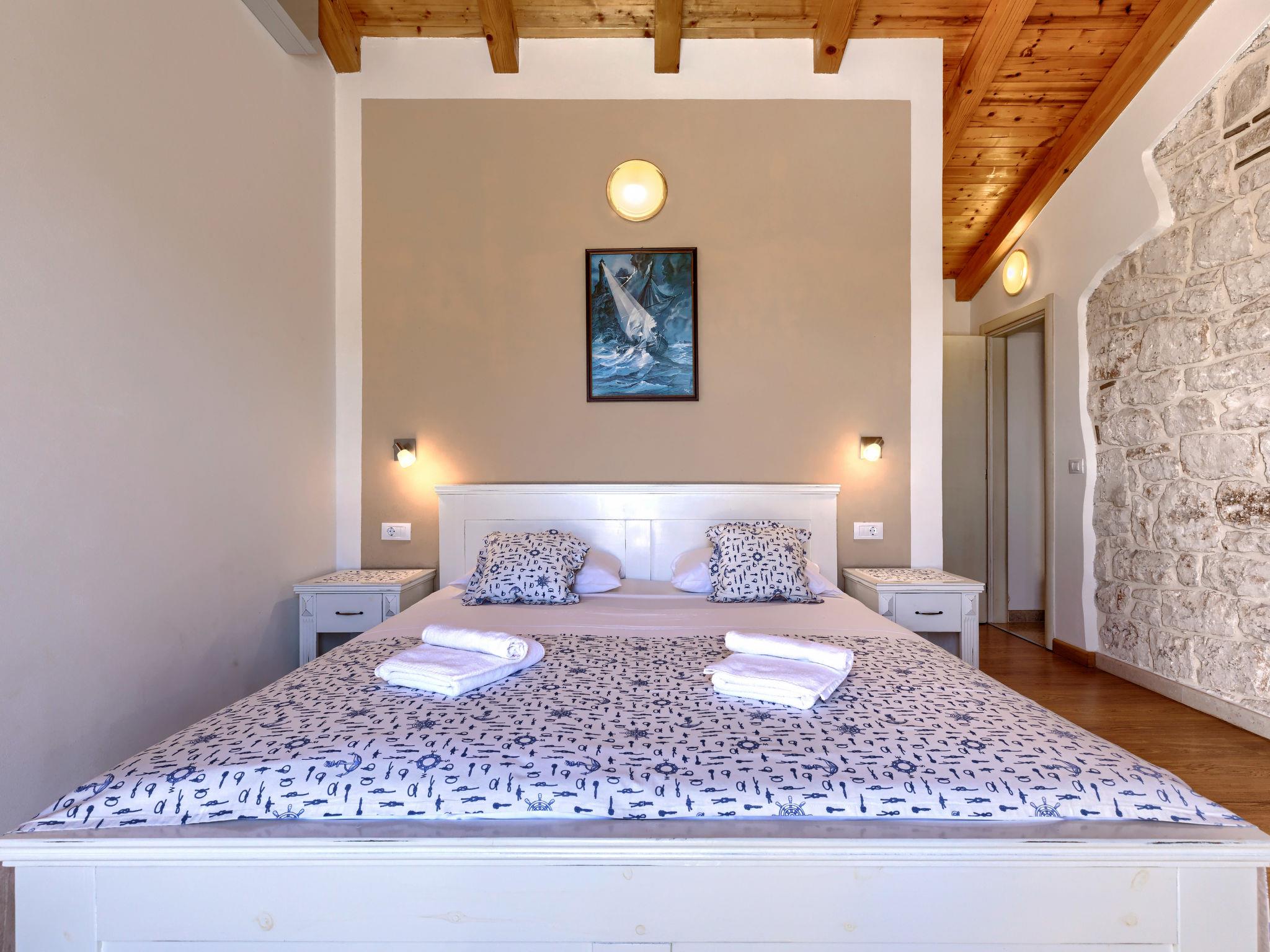 3-room villa 120 m2 on 2 levels. Rustic and tasteful furnishings: open living/sleeping room with 1 sofabed (140 cm, length 200 cm), satellite TV (flat screen). Exit to the terrace. Open dining room. Open kitchen (1 hot plate, oven, dishwasher, 3 gas rings, toaster, kettle, microwave, freezer, electric coffee machine). Shower/WC. Forced-air heating. Upper floor: 1 room with 1 double bed (2 x 90 cm, length 200 cm), satellite TV (flat screen). Exit to the balcony. 1 room with 1 double bed (2 x 90 cm, length 200 cm), shower/WC and satellite TV (flat screen). Balcony 20 m2, terrace 20 m2. Terrace furniture, deck chairs. Beautiful view of the sea, the swimming pool and the countryside. Facilities: Internet (WiFi, free). Suitable for families.