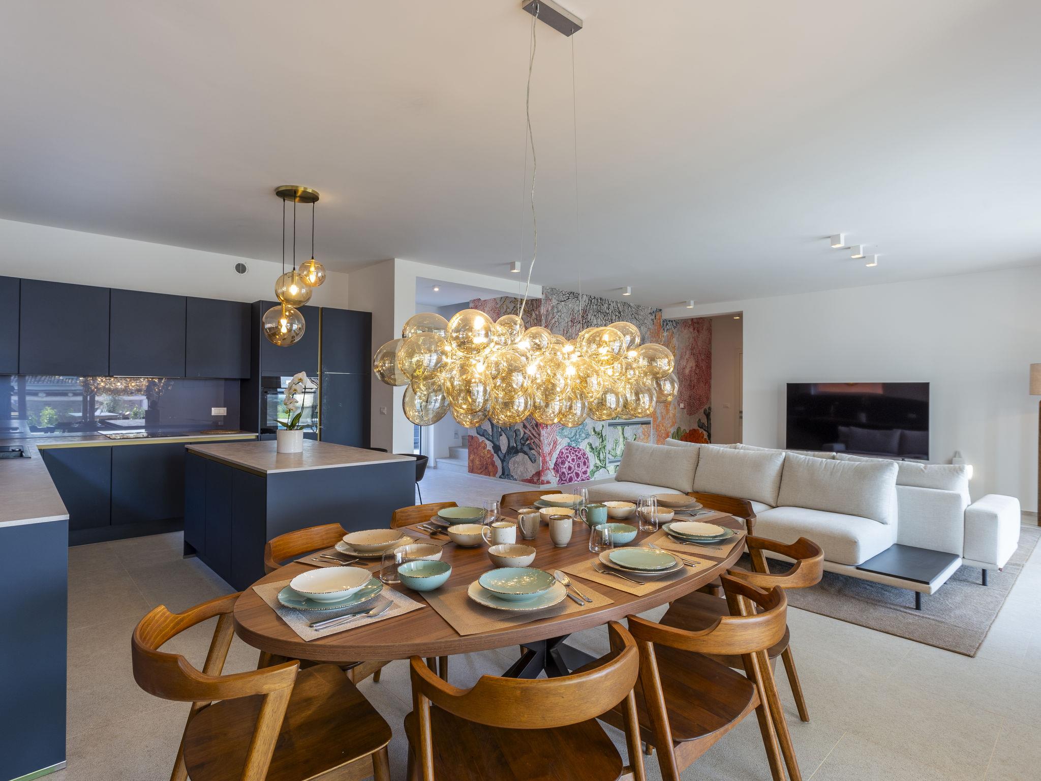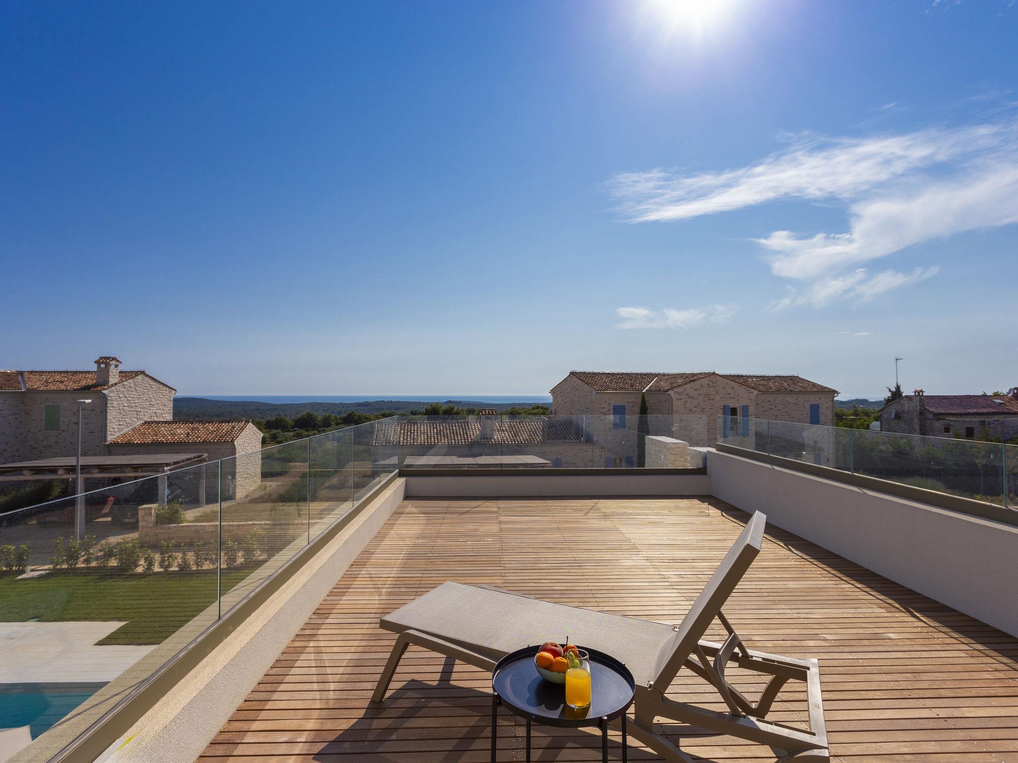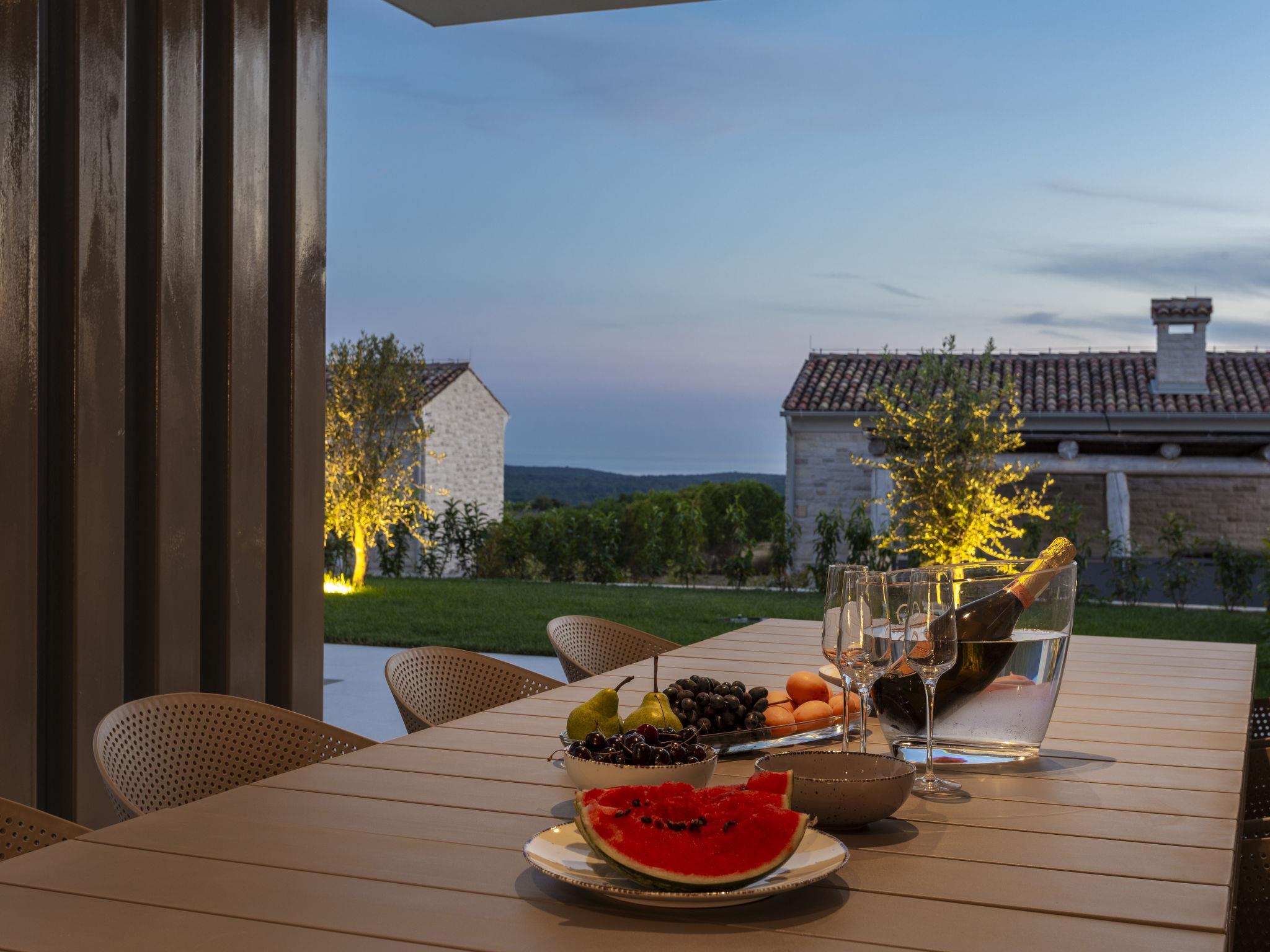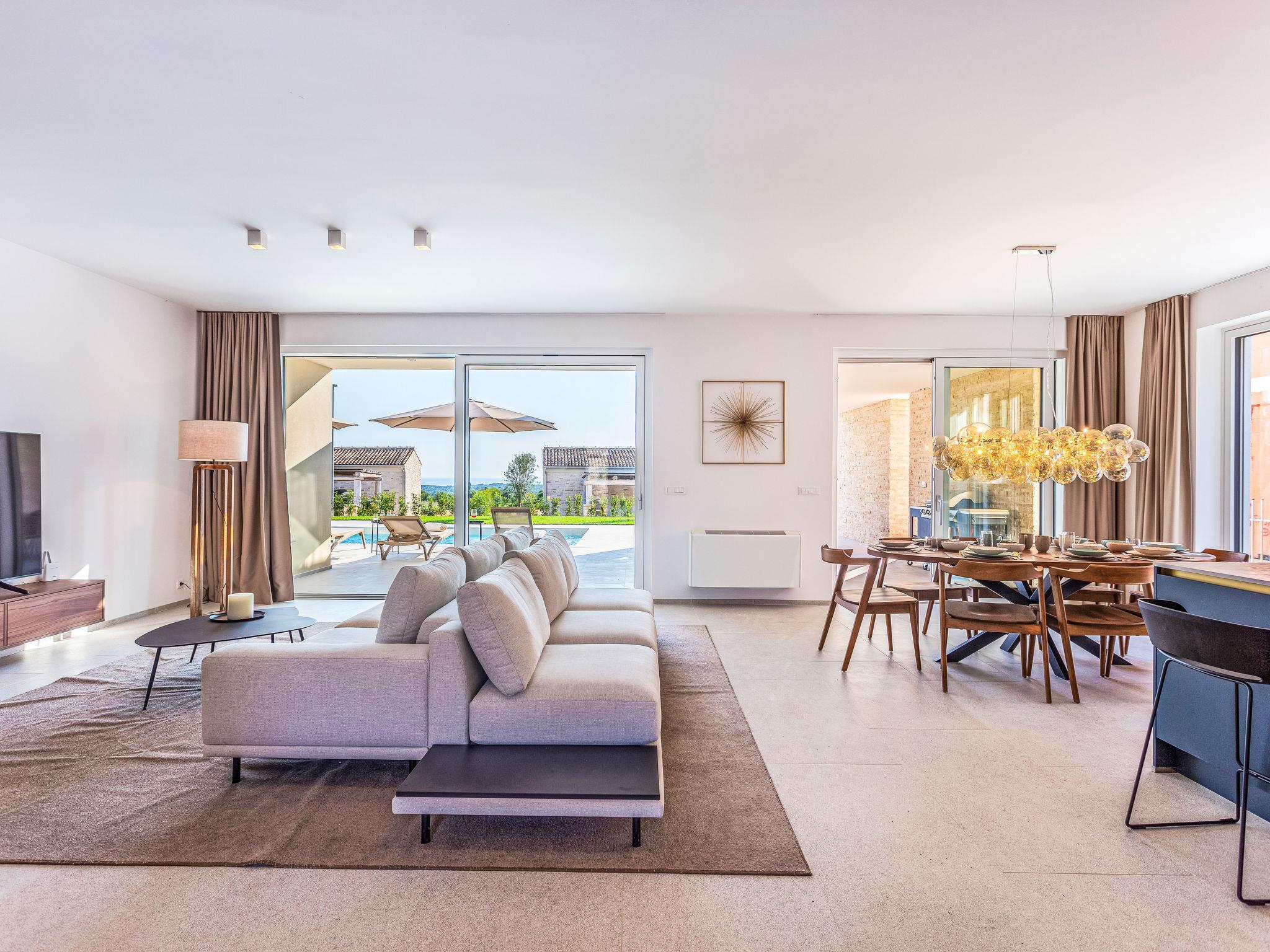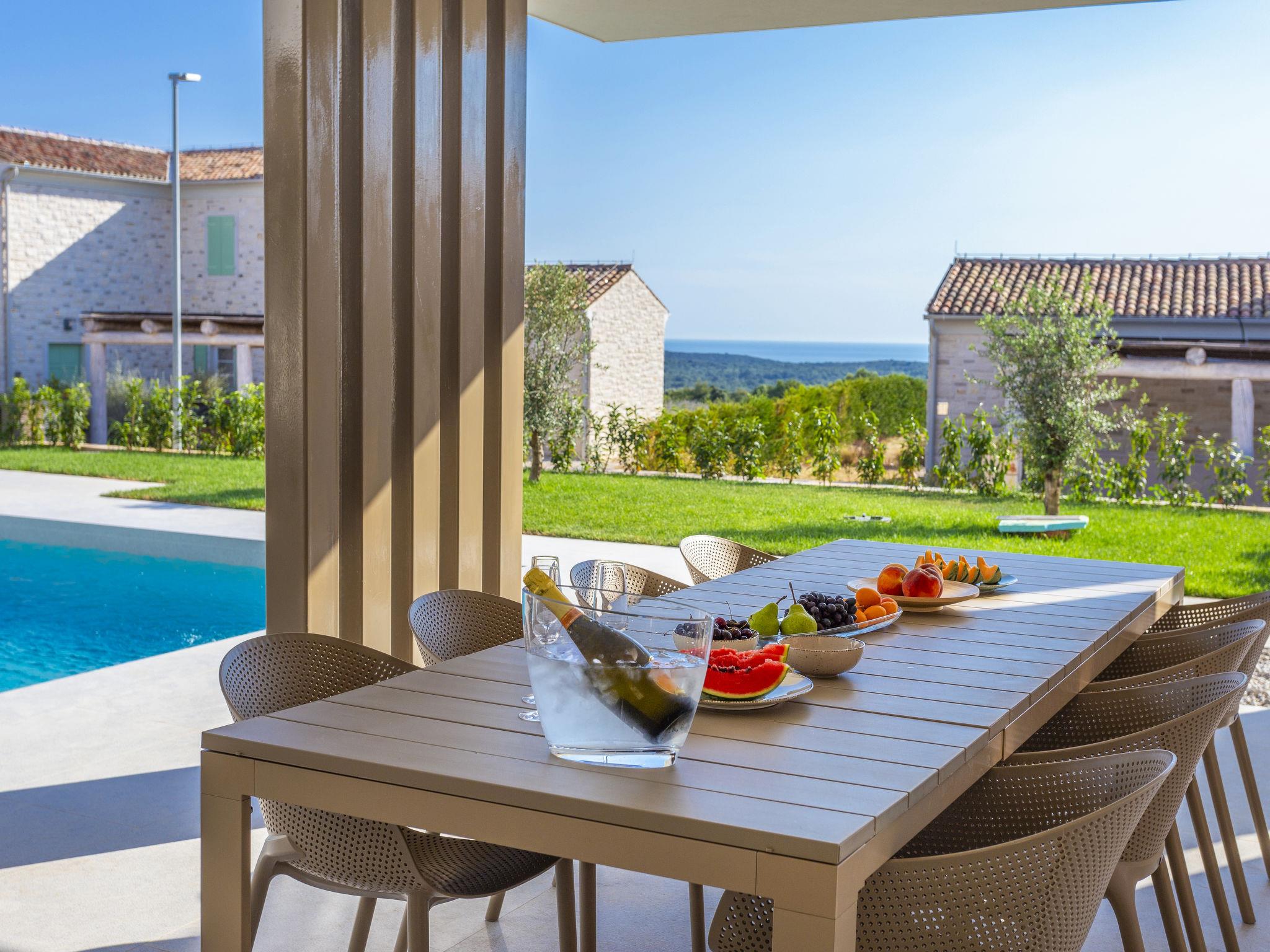 Very modern, beautiful villa "Design Emily White", 2 storeys. In the hamlet Cubani 3 km from the centre of Bale, in a sunny position residential area (villas), 6 km from the sea, 6 km from the beach. Private: property 690 m2 (fenced) with lawn, swimming pool angular (8 x 4 m, depth 140 cm, seasonal availability: 01.Apr. - 01.Nov.) with internal staircase. Outdoor shower, terrace (20 m2), garden furniture, barbecue. In the house: internet access, air conditioning, washing machine. Parking (for 3 cars) at the house on the premises. Grocery 3 km, restaurant 3 km, bus stop 3 km, pebble beach 6 km. The owner does not accept any youth groups.