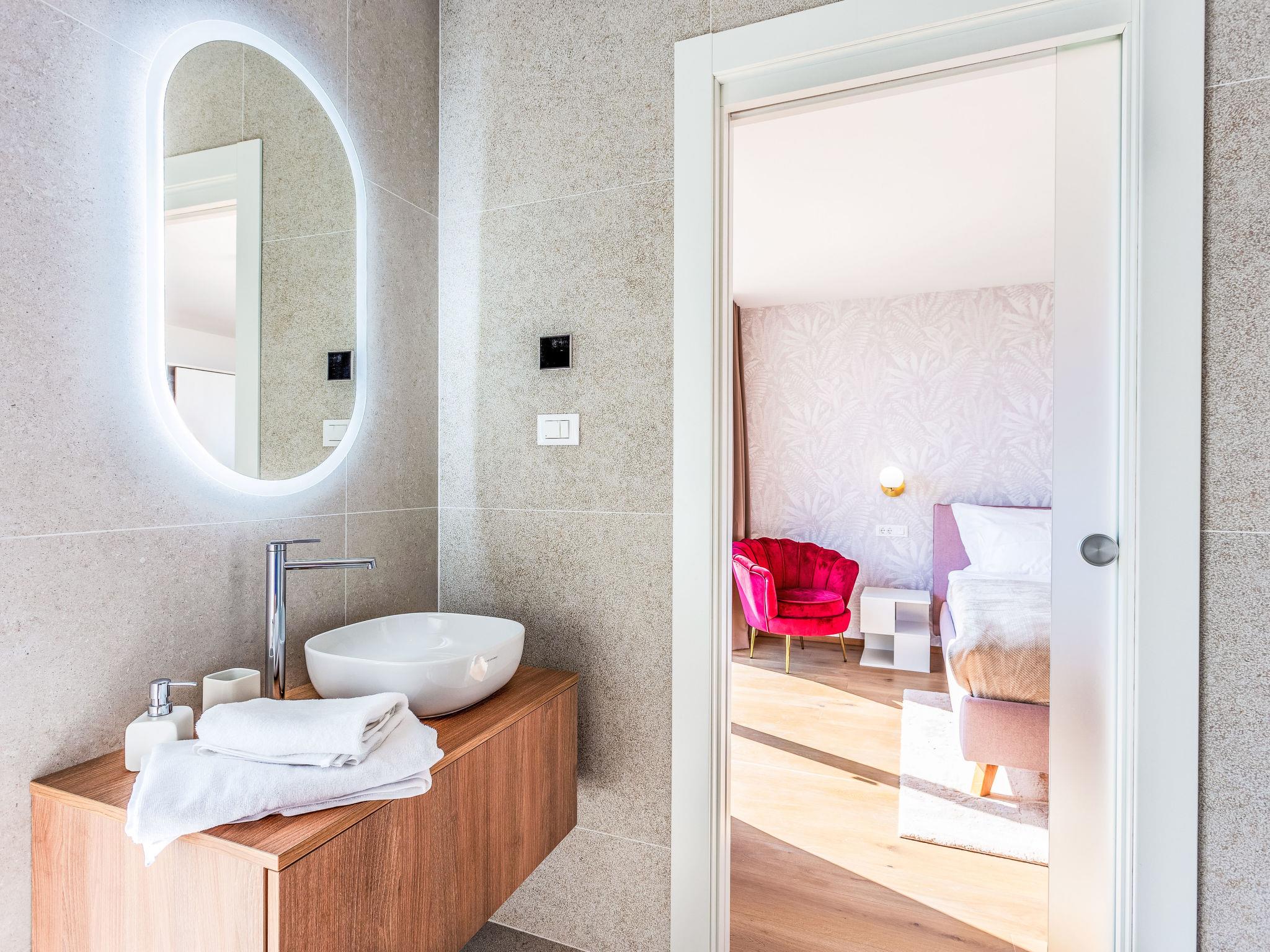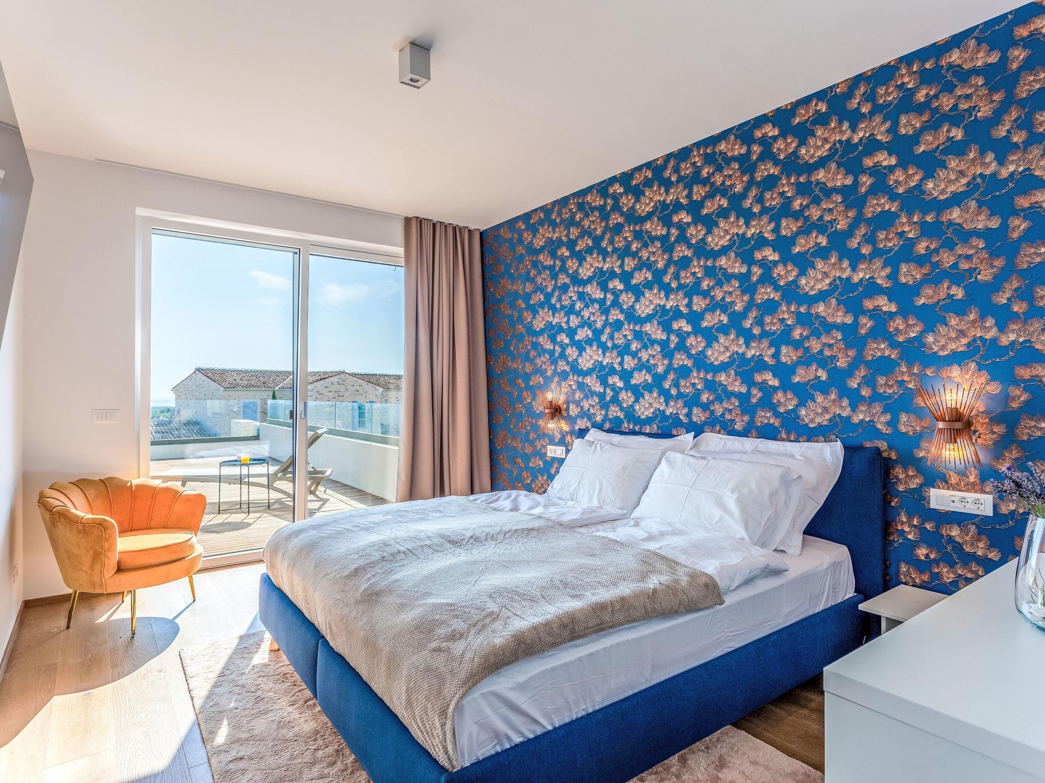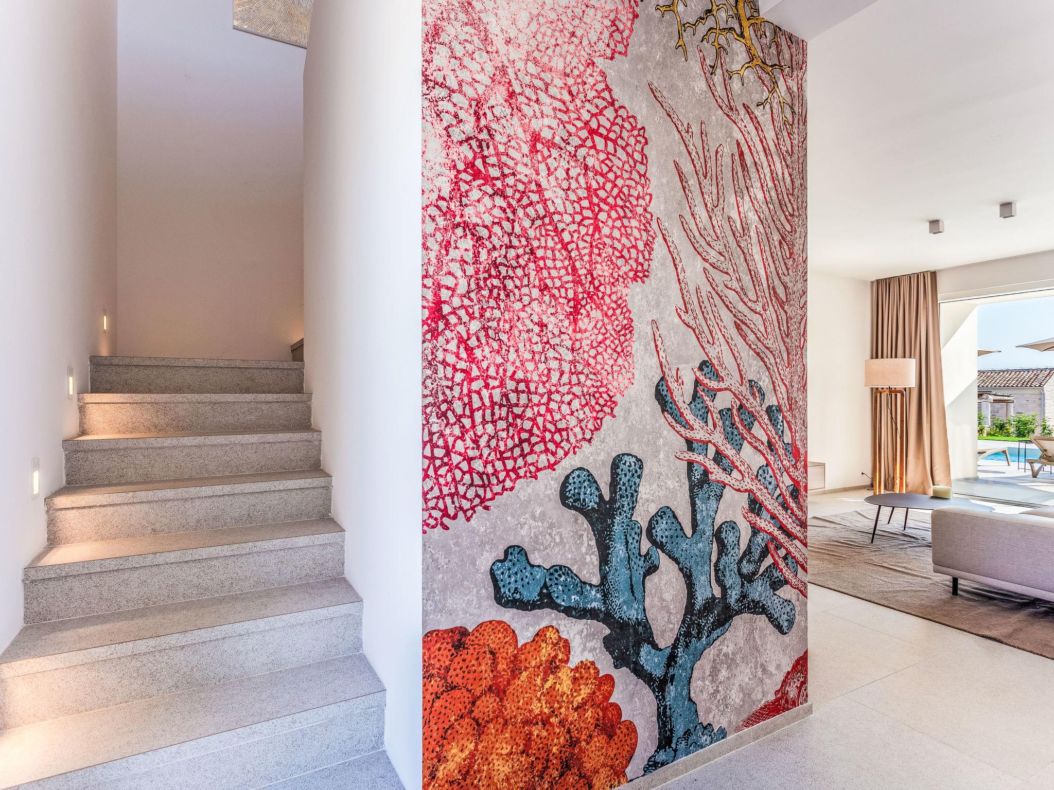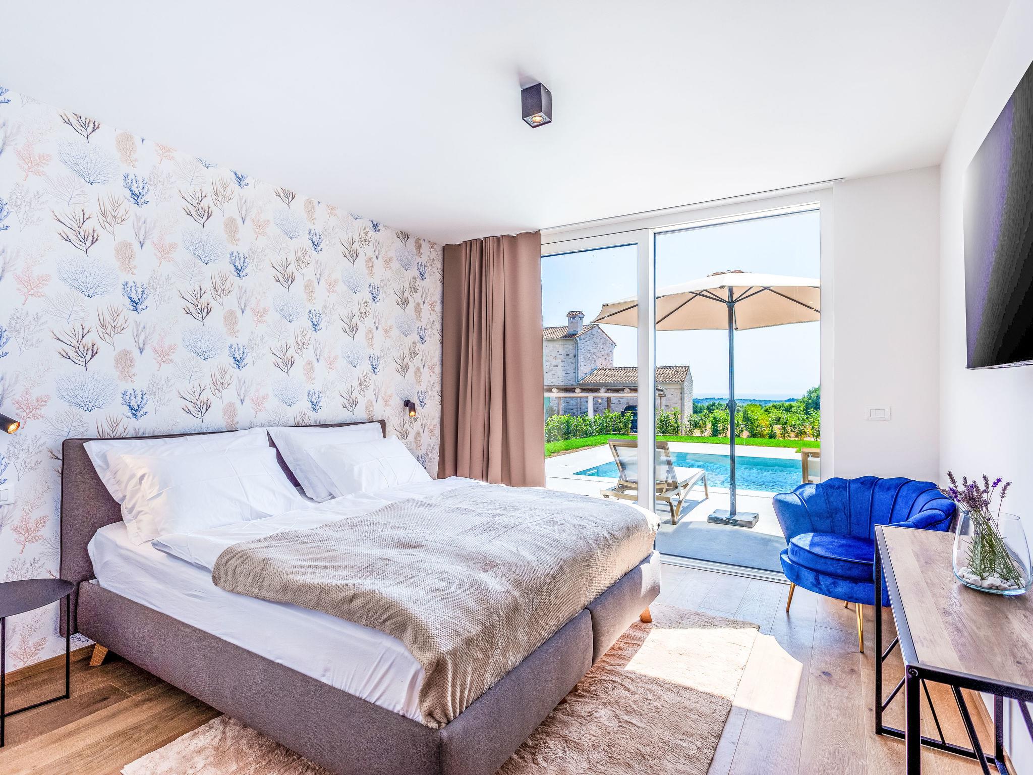 Very modern, beautiful villa "Design Emily White", 2 storeys. In the hamlet Cubani 3 km from the centre of Bale, in a sunny position residential area (villas), 6 km from the sea, 6 km from the beach. Private: property 690 m2 (fenced) with lawn, swimming pool angular (8 x 4 m, depth 140 cm, seasonal availability: 01.Apr. - 01.Nov.) with internal staircase. Outdoor shower, terrace (20 m2), garden furniture, barbecue. In the house: internet access, air conditioning, washing machine. Parking (for 3 cars) at the house on the premises. Grocery 3 km, restaurant 3 km, bus stop 3 km, pebble beach 6 km. The owner does not accept any youth groups.