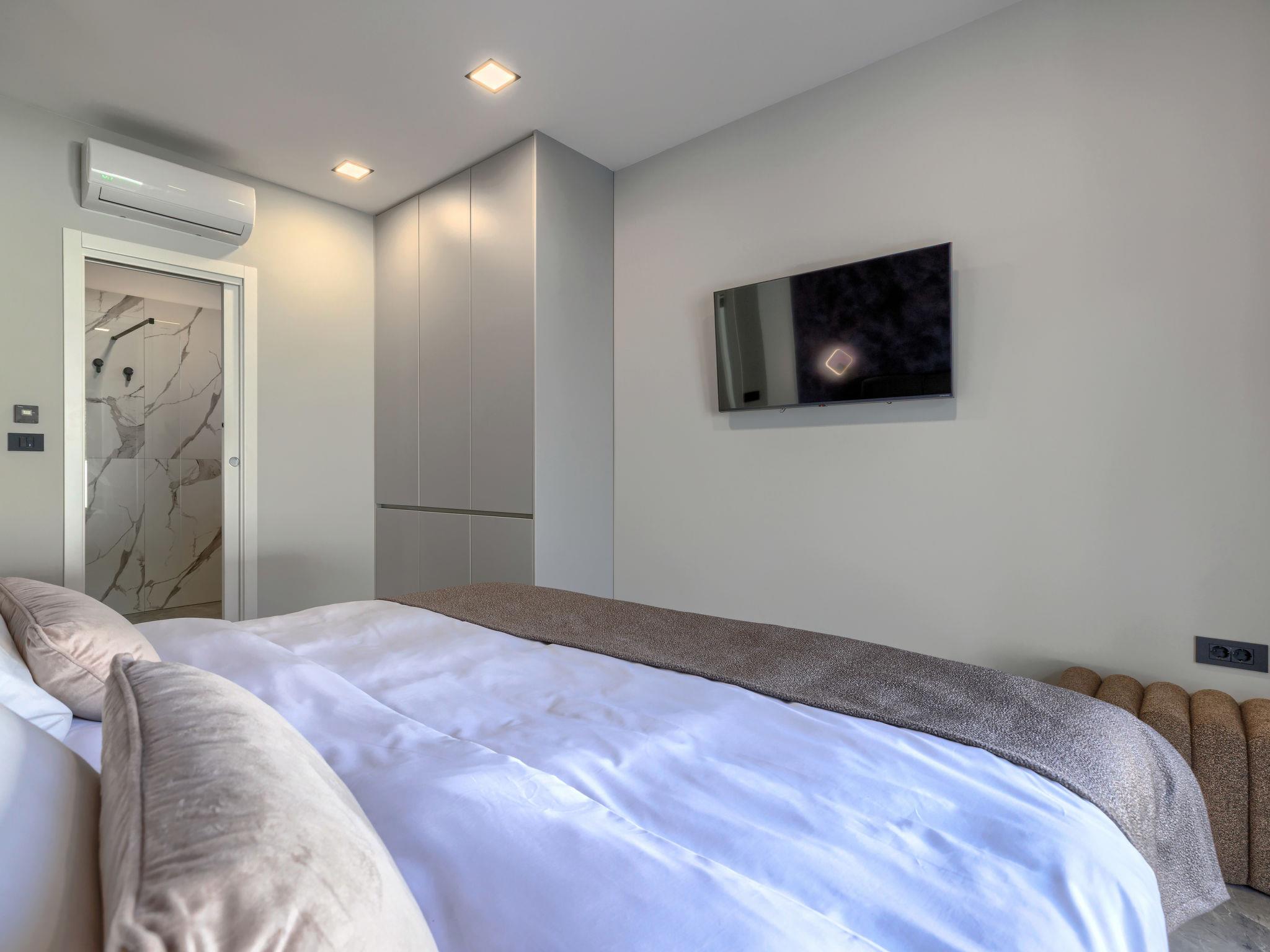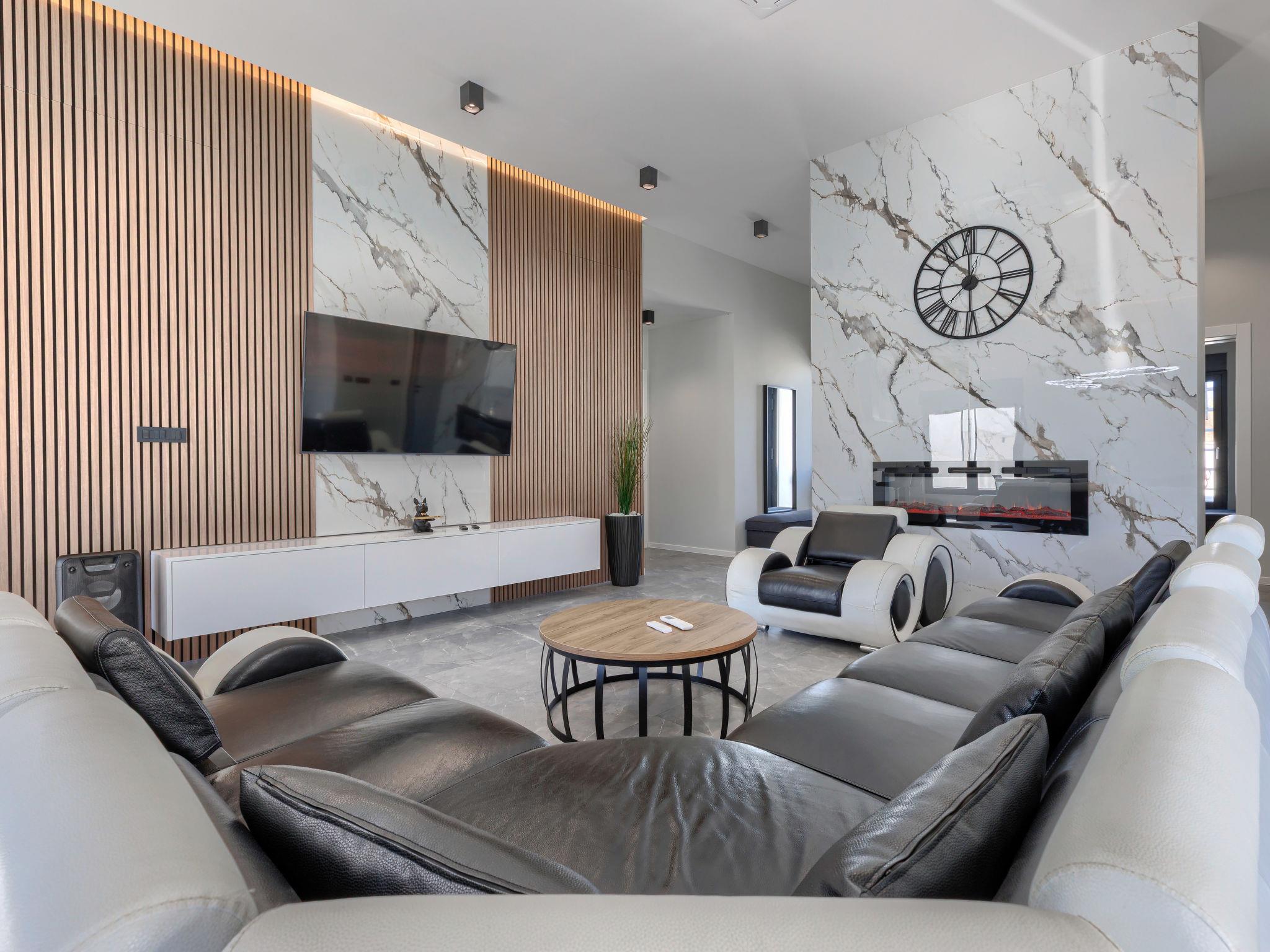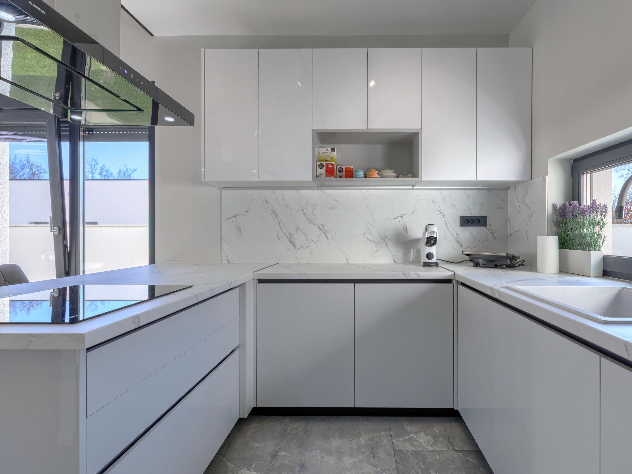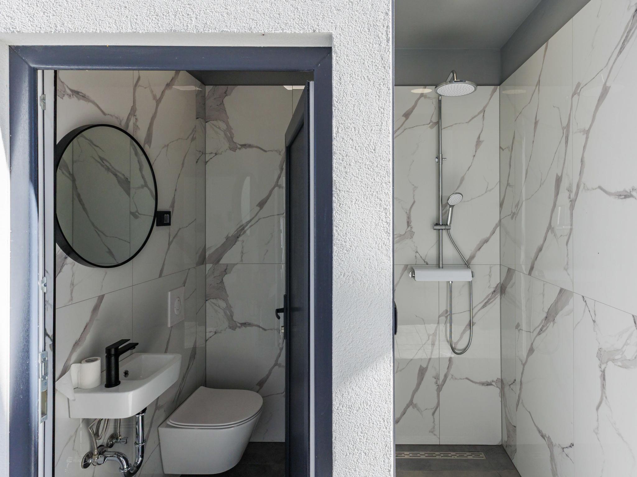 Modern villa "De Karlo", built in 2025. In the hamlet Ladici 9 km from the centre of Kanfanar, 26 km from the centre of Rovinj, 26 km from the sea, 26 km from the beach. Private: property 908 m2 (fenced), swimming pool angular, heated (11 x 5 m, 55 m2, depth 140 cm, seasonal availability: 01.Mar. - 01.Dec.) with internal staircase and salt-electrolysis pool-cleaning system. Hot tub, pool house with fridge, shower and WC, table tennis, terrace (20 m2), garden furniture, barbecue. In the house: internet access, sauna, washing machine. Parking (for 4 cars) at the house on the premises. Shop 9 km, restaurant 5 km, bus stop 3 km, pebble beach 26 km. Groups of teenagers on request only. Swimming pool heated (extra). It is necessary to announce 7 days in advance if the pool heating is required.