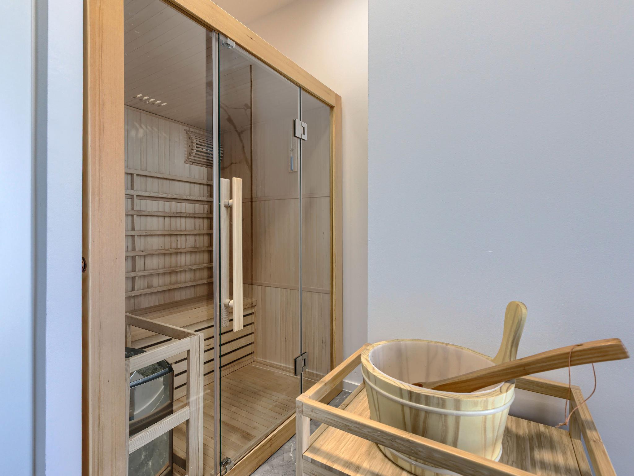 6-room villa 200 m2. Spacious and bright, luxurious furnishings: living/dining room with satellite TV (flat screen), air conditioning. Exit to the terrace, to the swimming pool. 4 rooms, each room with 1 french bed (180 cm, length 200 cm), shower/WC and satellite TV (flat screen), air conditioning. Open kitchen (oven, dishwasher, 4 ceramic glass hob hotplates, toaster, kettle, freezer, electric coffee machine). Shower/WC. Underfloor heating. Deck chairs. View of the swimming pool and the forest. Facilities: sauna, safe, iron, mosquito net, children's high chair, hair dryer. Internet (WiFi, free).
