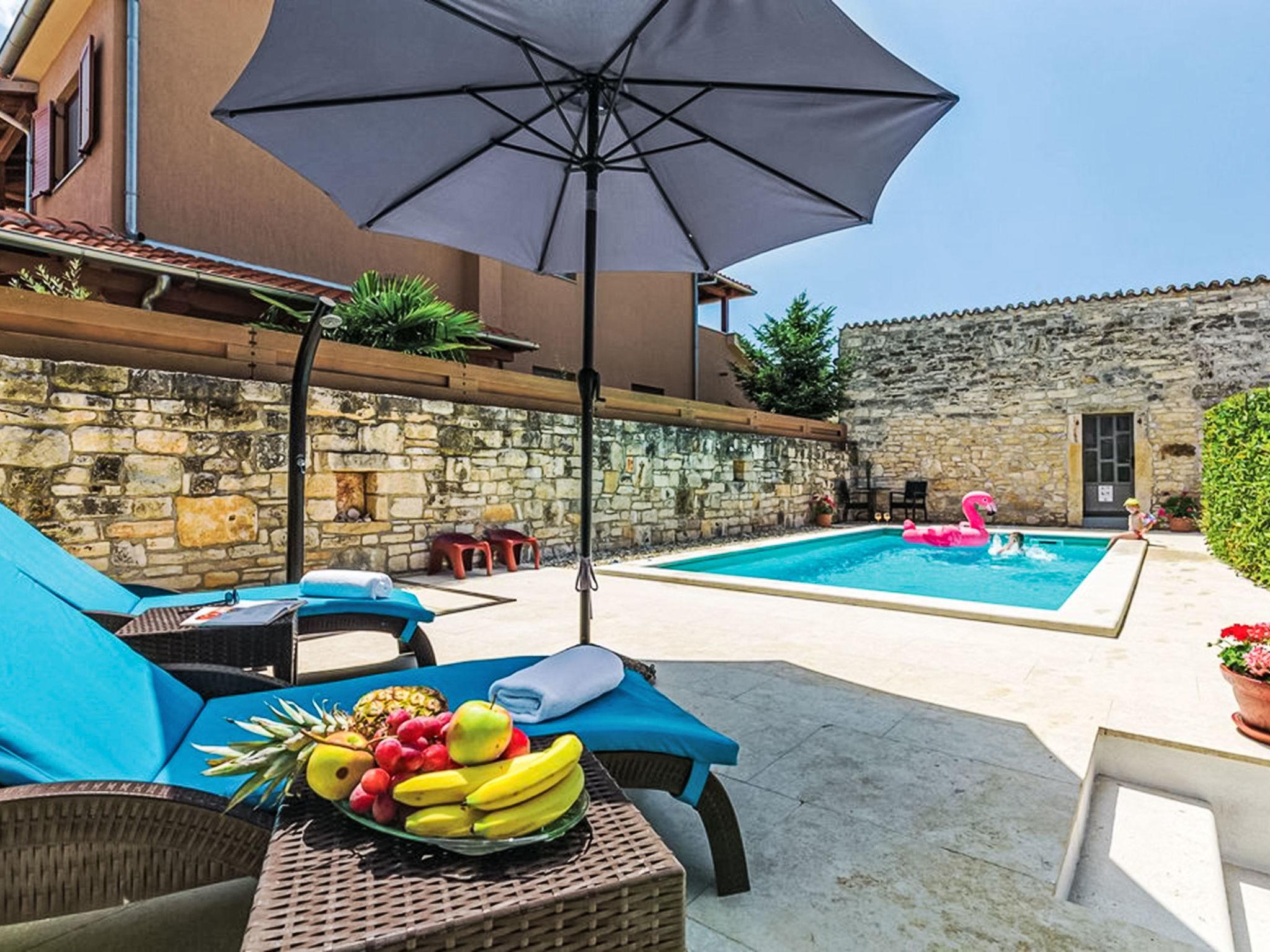 Rovinjsko Selo 6 km from Rovinj: Beautiful terraced house "Marlen", 2 storeys. 200 m from the centre of Rovinjsko Selo, in a quiet, sunny position, 6 km from the sea, 6 km from the beach. Private: property 320 m2 (fenced) with wildlife garden, swimming pool angular (25 m2, depth 145 cm, seasonal availability: 01.May. - 30.Sep.) with internal staircase. Outdoor shower, terrace (20 m2), garden furniture, barbecue, pool maintenance by the owner/gardener. In the house: internet access, table tennis, table football, washing machine. Parking (for 2 cars) at the house on the premises. Shop 100 m, restaurant 400 m, bus stop 500 m, pebble beach 6 km, rocky beach 6 km. Tennis 7 km, walking paths from the house 100 m. Nearby attractions: Lim Bay 7 km. Please note: airfield 40 km from the property.