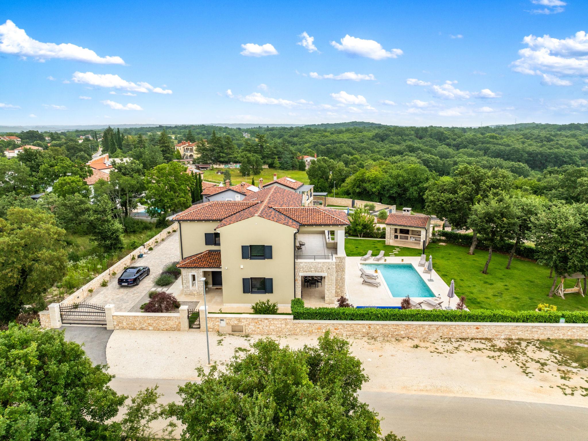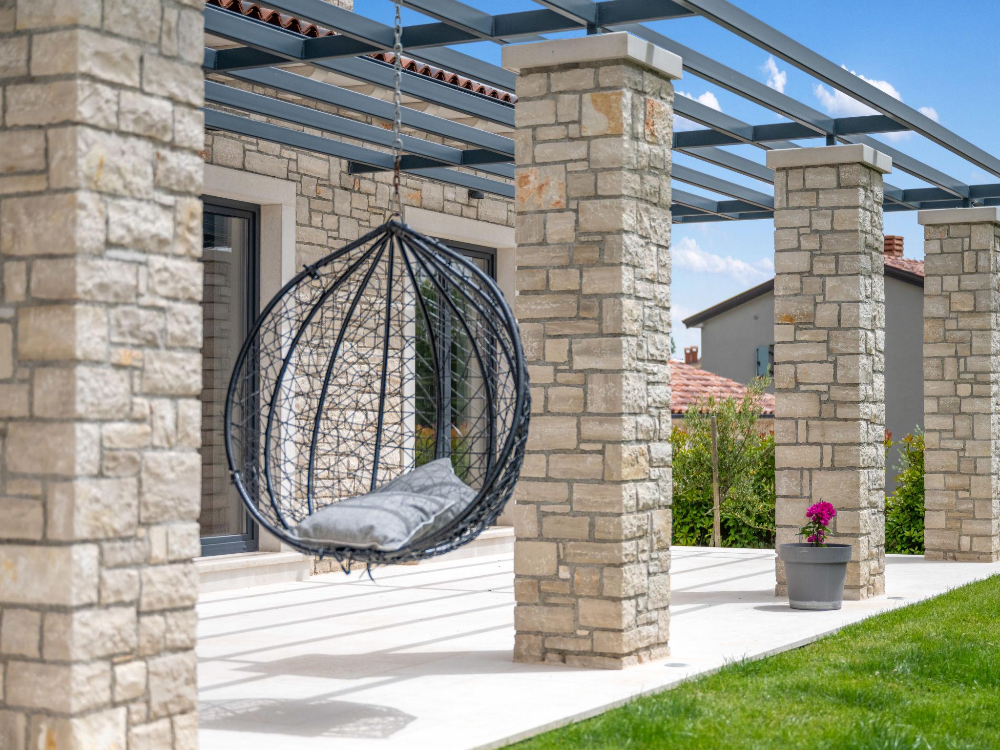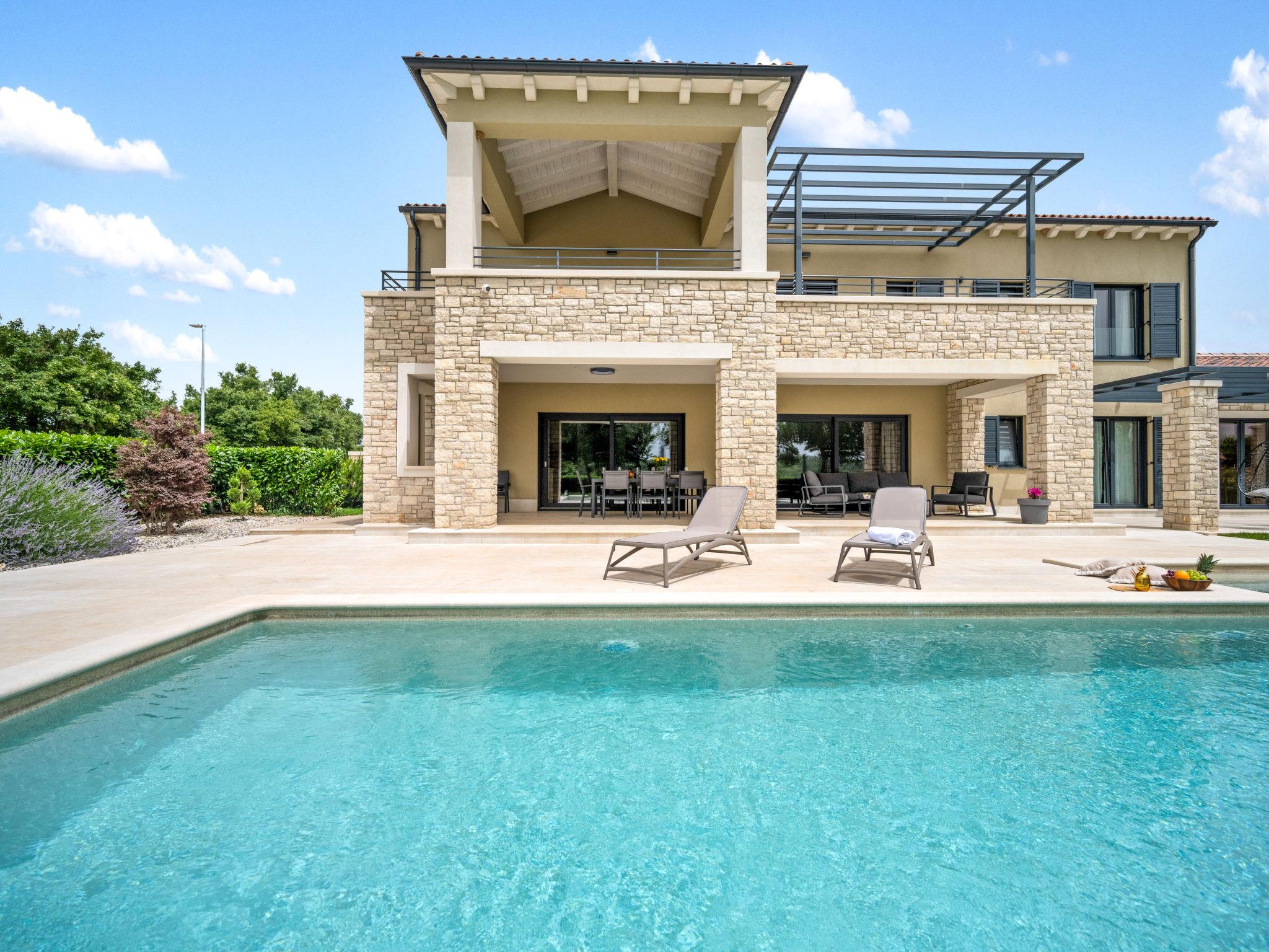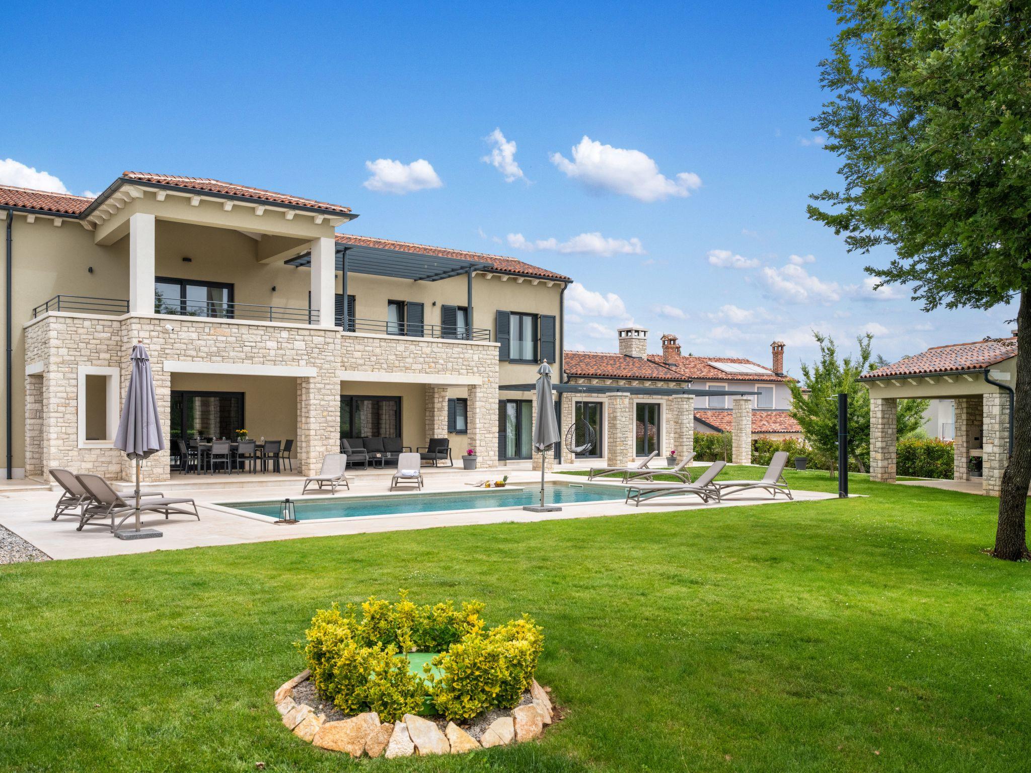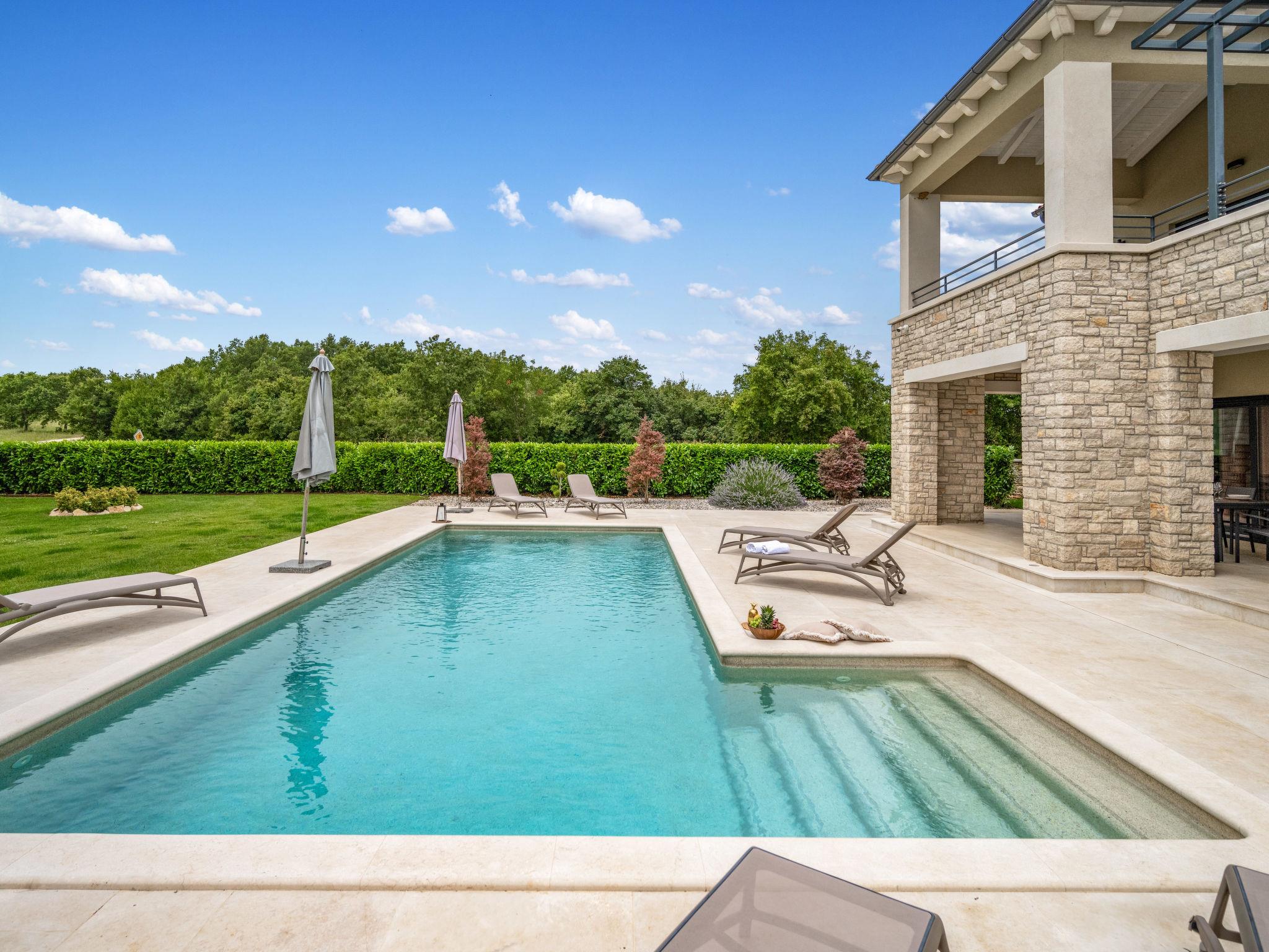 Rovinjsko Selo 6 km from Rovinj: Very beautiful single-family house "Villa Sogno Istriano", 2 storeys. In the hamlet Matohanci 4 km from the centre of Rovinjsko Selo, 7 km from the centre of Kanfanar, in a sunny position, 4.5 km from the sea. Private: property 1'500 m2 (fenced), garden with lawn, swimming pool heated (45 m2, depth 135 cm, seasonal availability: 01.May. - 15.Oct.) with internal staircase and salt-electrolysis pool-cleaning system. Outdoor shower, terrace (20 m2), garden furniture, barbecue. In the house: internet access, washing machine, tumble dryer. Parking (for 3 cars) at the house on the premises. Supermarket 4 km, restaurant 50 m, bus stop 1 km, pebble beach 4.5 km, rocky beach 4.5 km. Walking paths from the house 100 m, cycle lane 150 m. Nearby attractions: Lim Bay 4 km. The owner does not accept any groups. Swimming pool heated (extra).