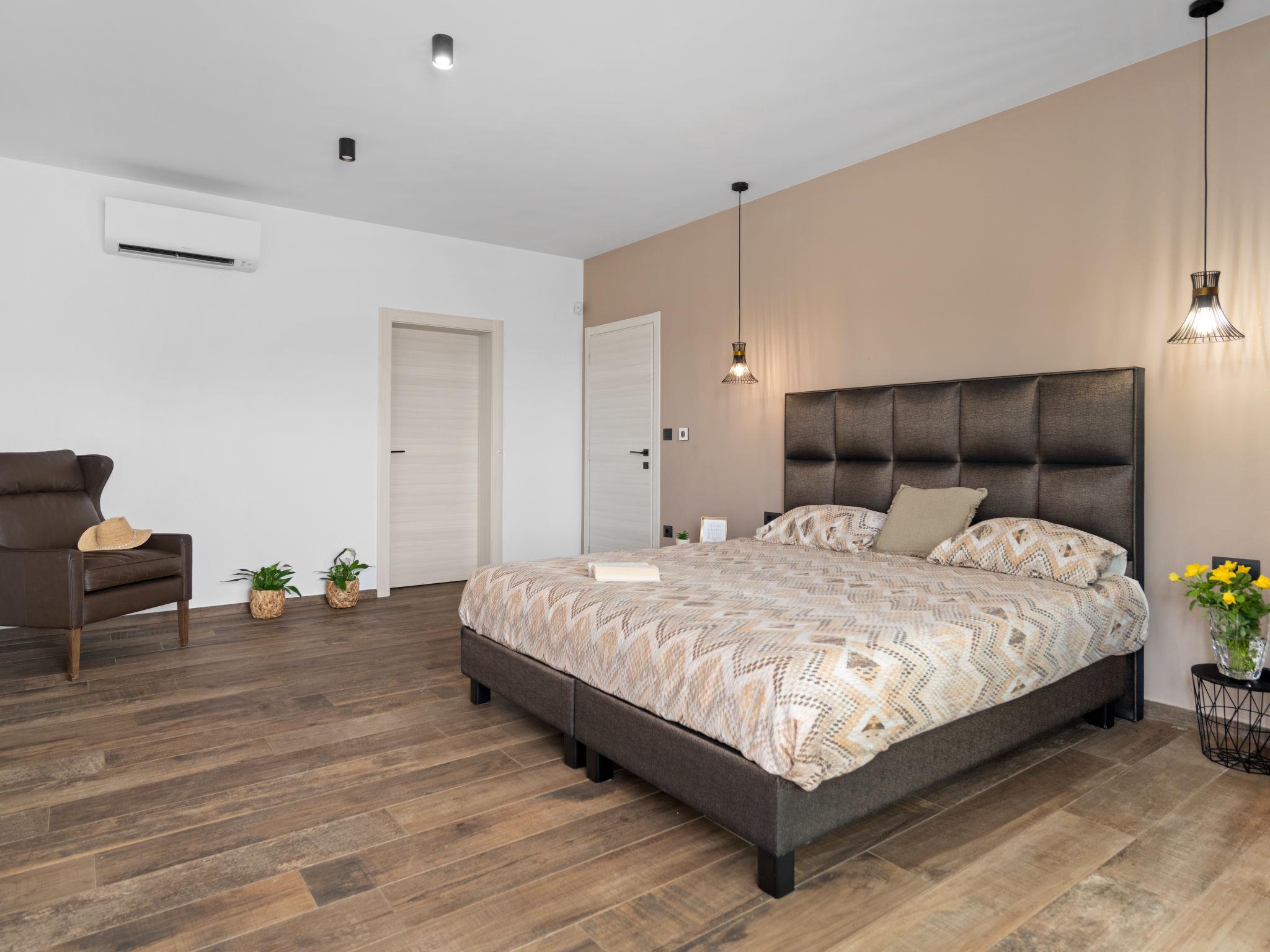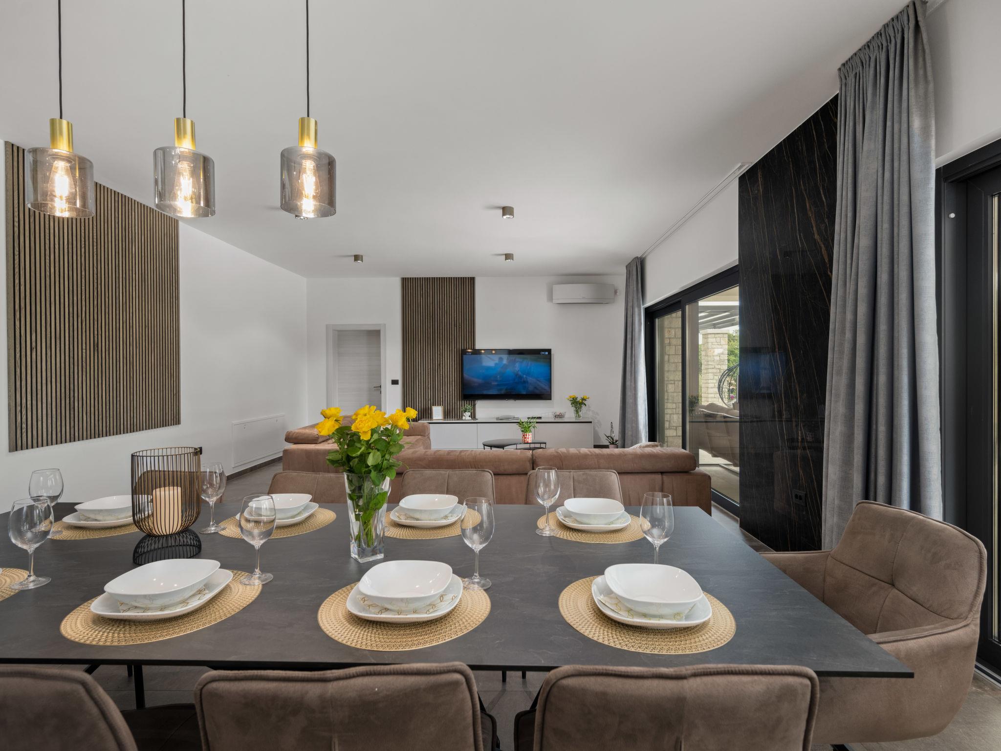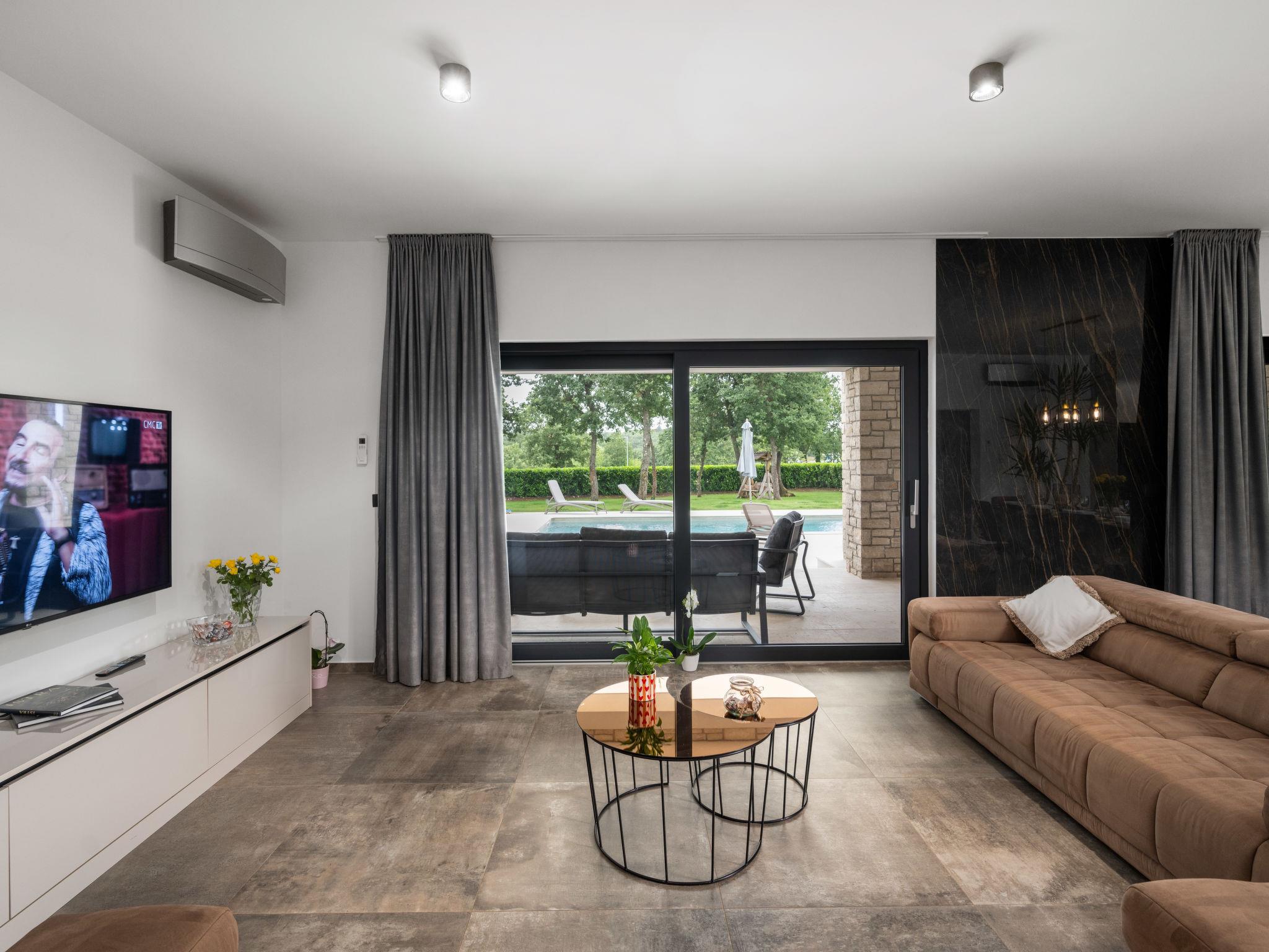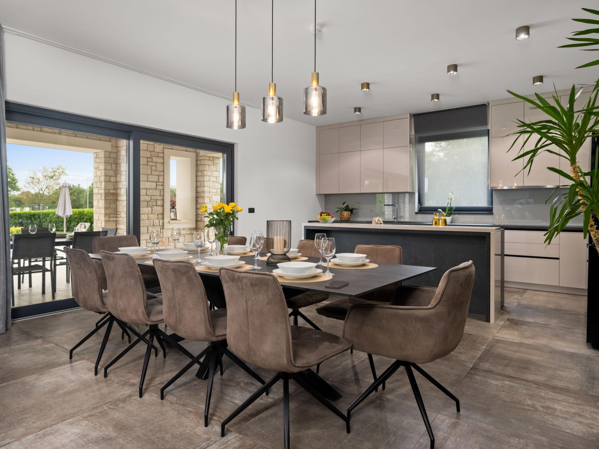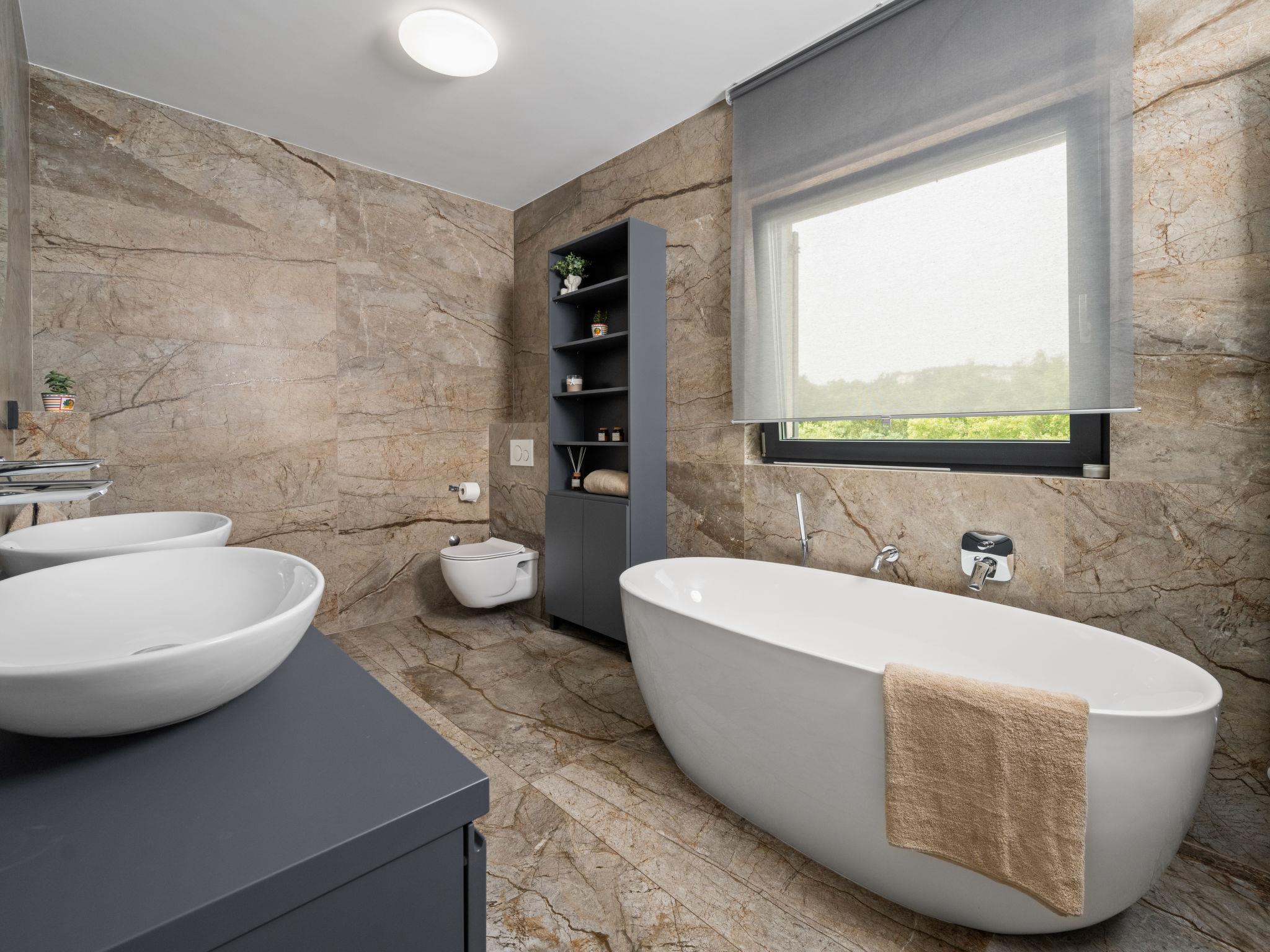 Rovinjsko Selo 6 km from Rovinj: Very beautiful single-family house "Villa Sogno Istriano", 2 storeys. In the hamlet Matohanci 4 km from the centre of Rovinjsko Selo, 7 km from the centre of Kanfanar, in a sunny position, 4.5 km from the sea. Private: property 1'500 m2 (fenced), garden with lawn, swimming pool heated (45 m2, depth 135 cm, seasonal availability: 01.May. - 15.Oct.) with internal staircase and salt-electrolysis pool-cleaning system. Outdoor shower, terrace (20 m2), garden furniture, barbecue. In the house: internet access, washing machine, tumble dryer. Parking (for 3 cars) at the house on the premises. Supermarket 4 km, restaurant 50 m, bus stop 1 km, pebble beach 4.5 km, rocky beach 4.5 km. Walking paths from the house 100 m, cycle lane 150 m. Nearby attractions: Lim Bay 4 km. The owner does not accept any groups. Swimming pool heated (extra).