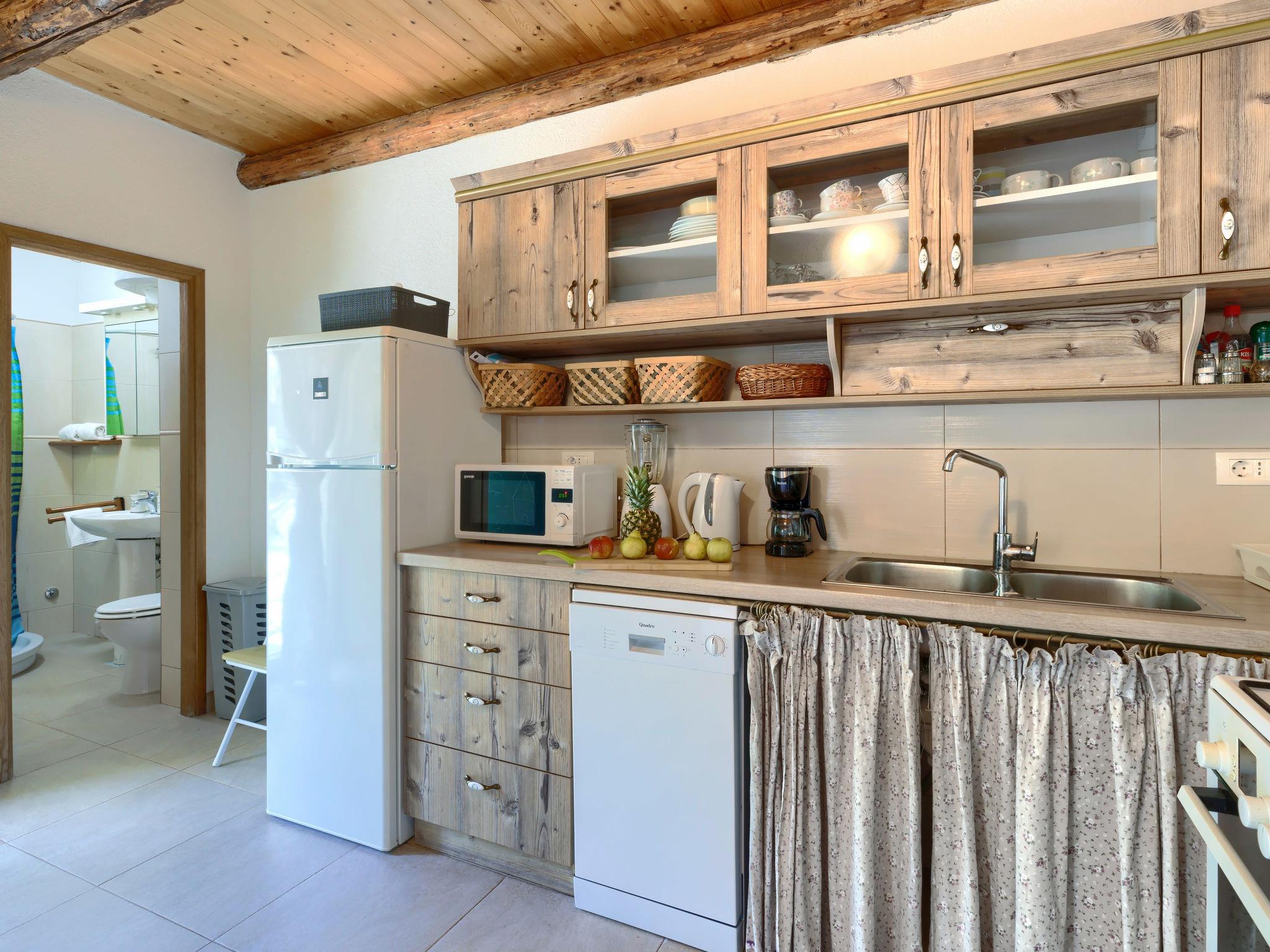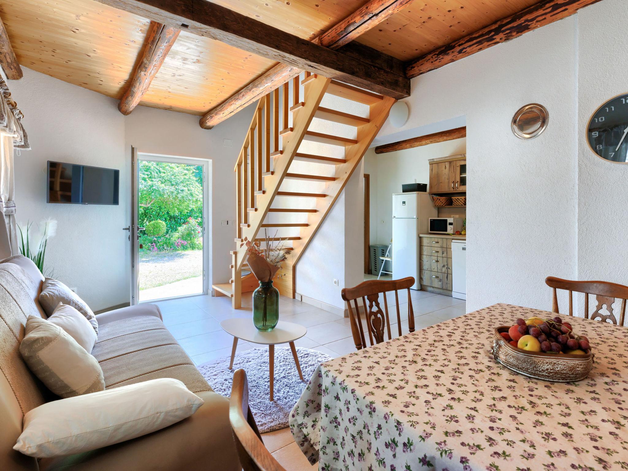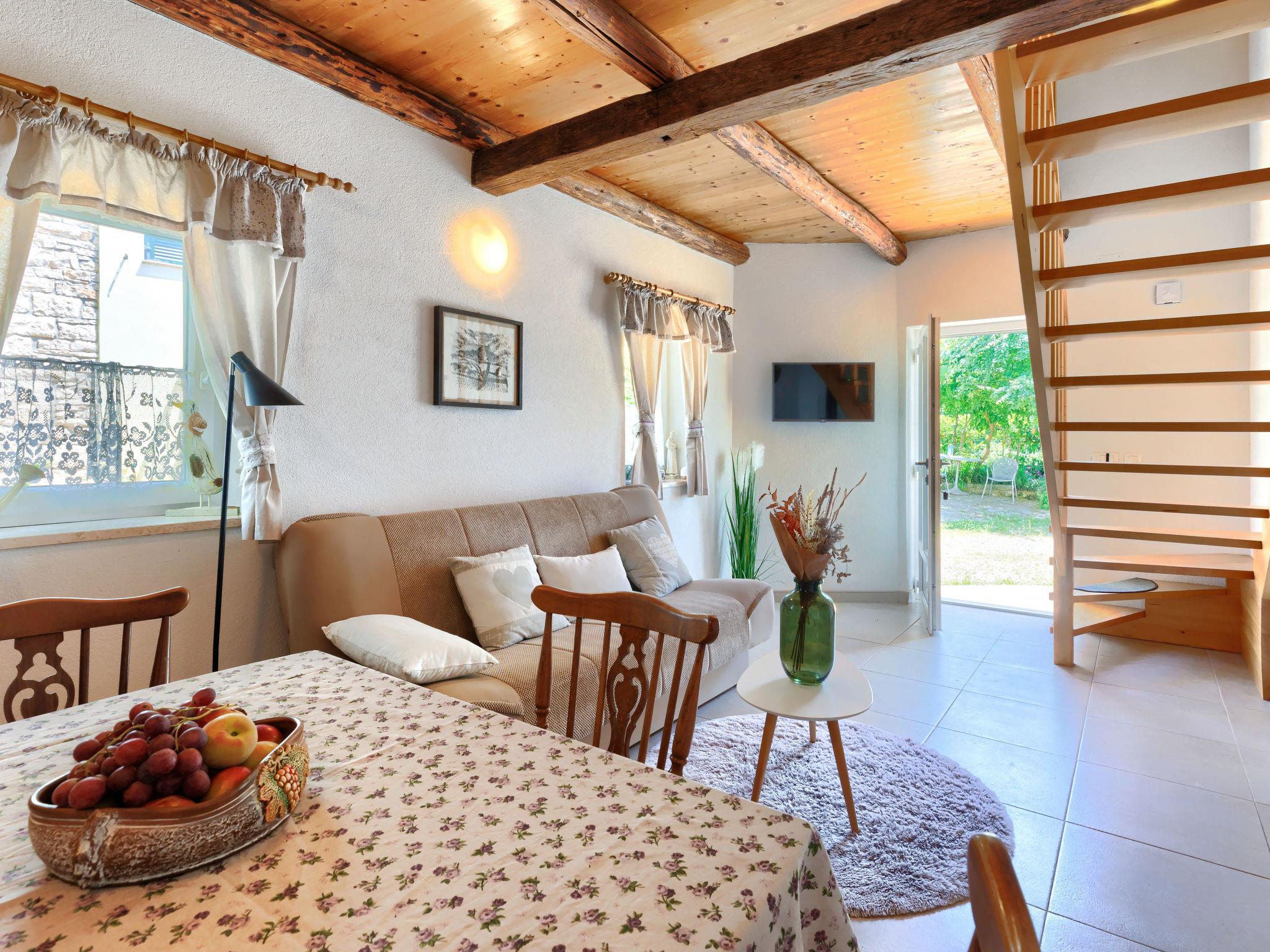 Rovinjsko Selo 6 km from Rovinj: Single-family house "Ana", 2 storeys. In the hamlet Bubani 5.6 km from the centre of Rovinjsko Selo, 9 km from the centre of Kanfanar, in a quiet, sunny position, 4.5 km from the sea. Private: property 25 m2 (fenced). In the house: internet access, hot tub, washing machine. Parking (for 2 cars) at the house on the premises. Shop 5 km, supermarket 9.5 km, restaurant 1 km, bus stop 650 m, pebble beach 4.5 km, rocky beach 4.5 km. Walking paths from the house 200 m, cycle lane 250 m. Please note: animals in the neighbourhood.