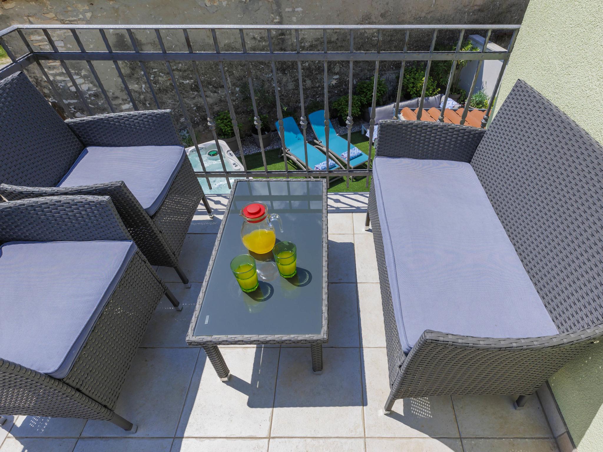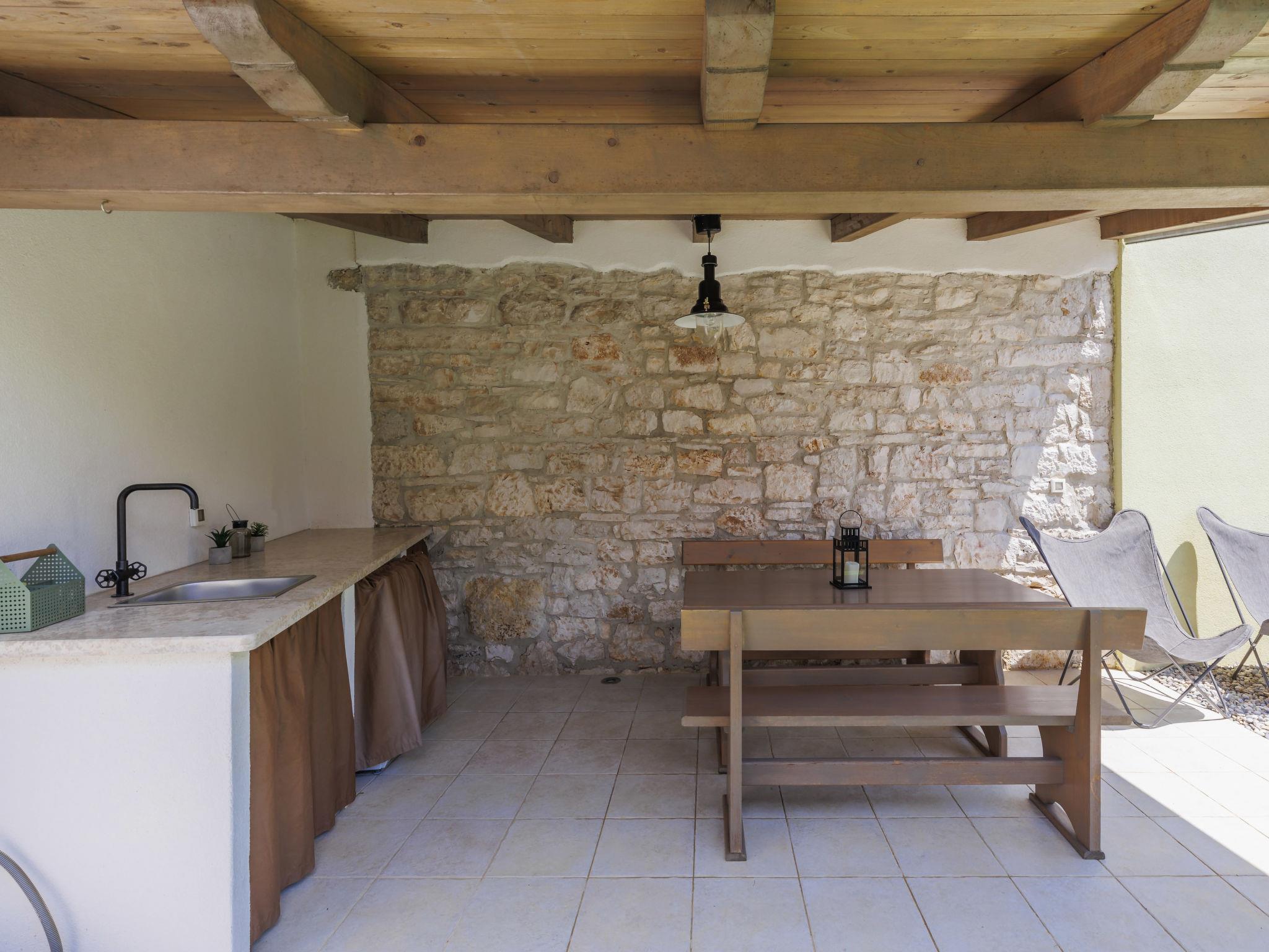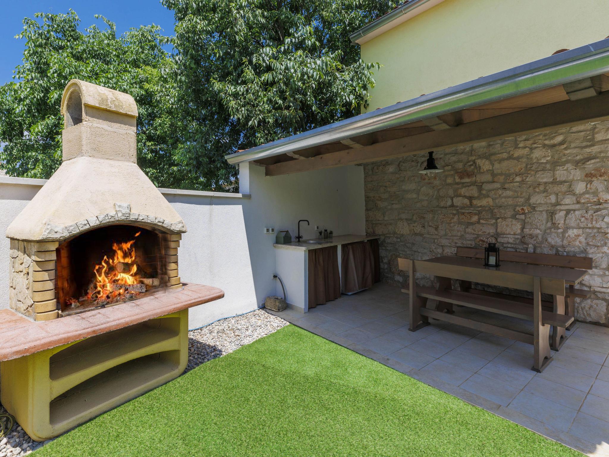 Rovinjsko Selo 6 km from Rovinj: Single-family house "Ana", 2 storeys. In the hamlet Bubani 5.6 km from the centre of Rovinjsko Selo, 9 km from the centre of Kanfanar, in a quiet, sunny position, 4.5 km from the sea. Private: property 25 m2 (fenced). In the house: internet access, hot tub, washing machine. Parking (for 2 cars) at the house on the premises. Shop 5 km, supermarket 9.5 km, restaurant 1 km, bus stop 650 m, pebble beach 4.5 km, rocky beach 4.5 km. Walking paths from the house 200 m, cycle lane 250 m. Please note: animals in the neighbourhood.