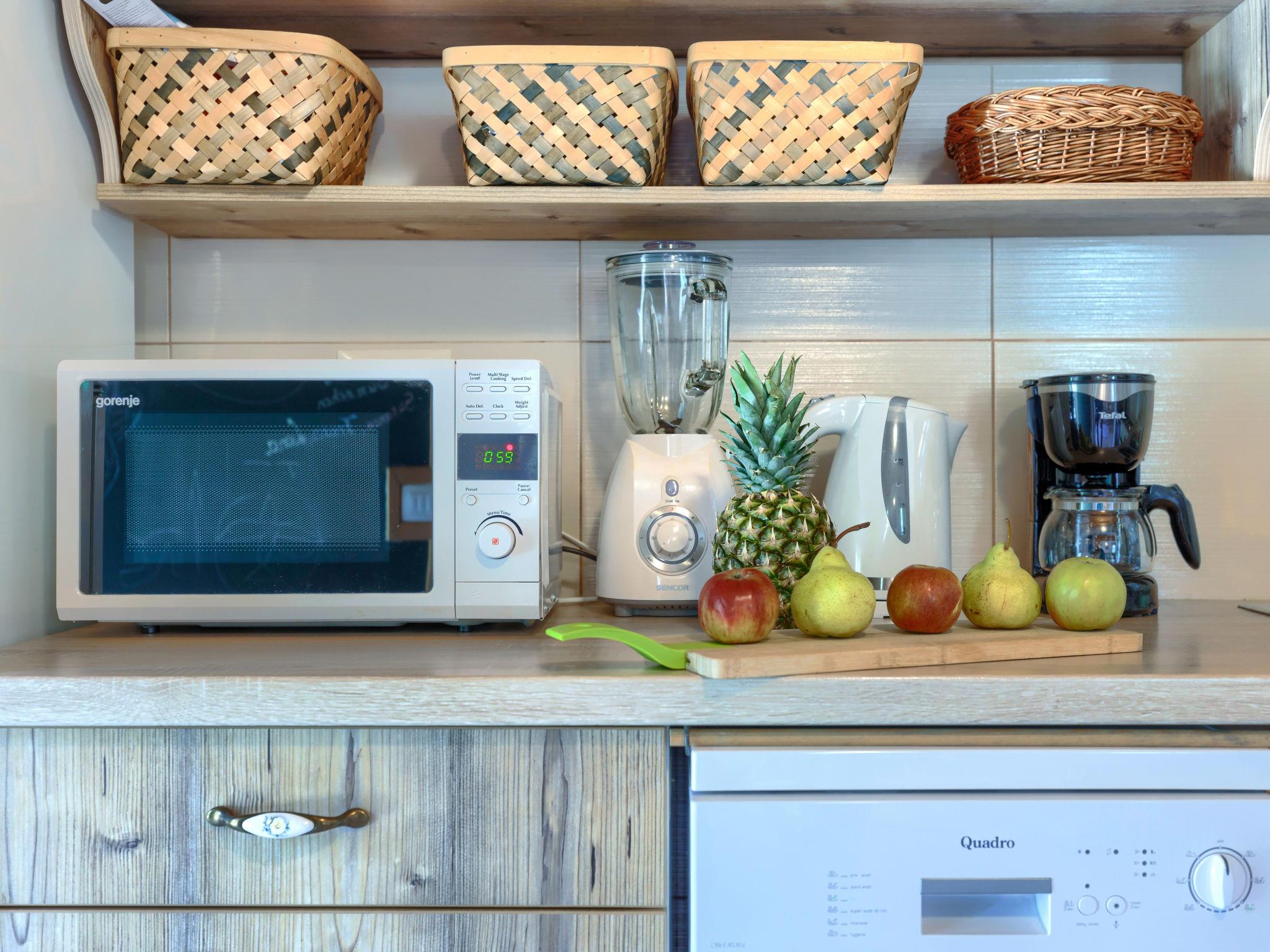 3-room house 68 m2 on 2 levels. Living/dining room with satellite TV (flat screen). Open kitchen (4 hot plates, oven, dishwasher, microwave, freezer, electric coffee machine). Exit to the terrace. Shower/WC. Upper floor: walk-through room with 1 french bed (160 cm, length 200 cm), air conditioning. 1 room with 1 pull-out bed (2 pers. 2 x 80 cm, length 200 cm). Exit to the terrace. Heating. Terrace 20 m2 partly roofed, terrace 12 m2. Terrace furniture, deck chairs. Facilities: hair dryer, logs (free). Internet (WiFi, free). Please note: non-smoking house.