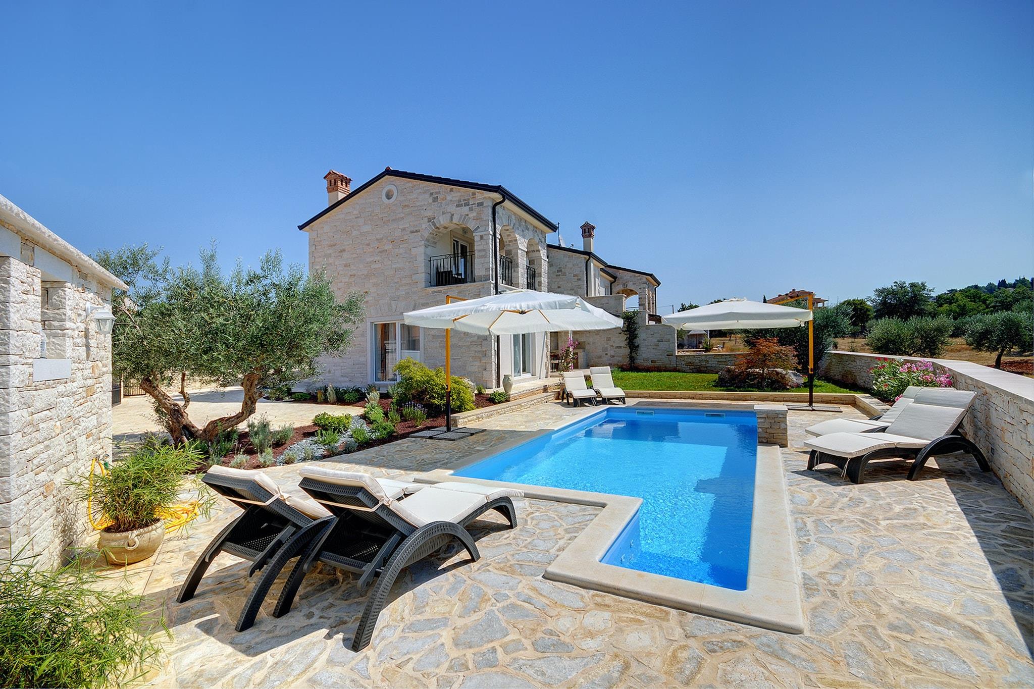 Villa nær Rovinj med pool og havudsigt