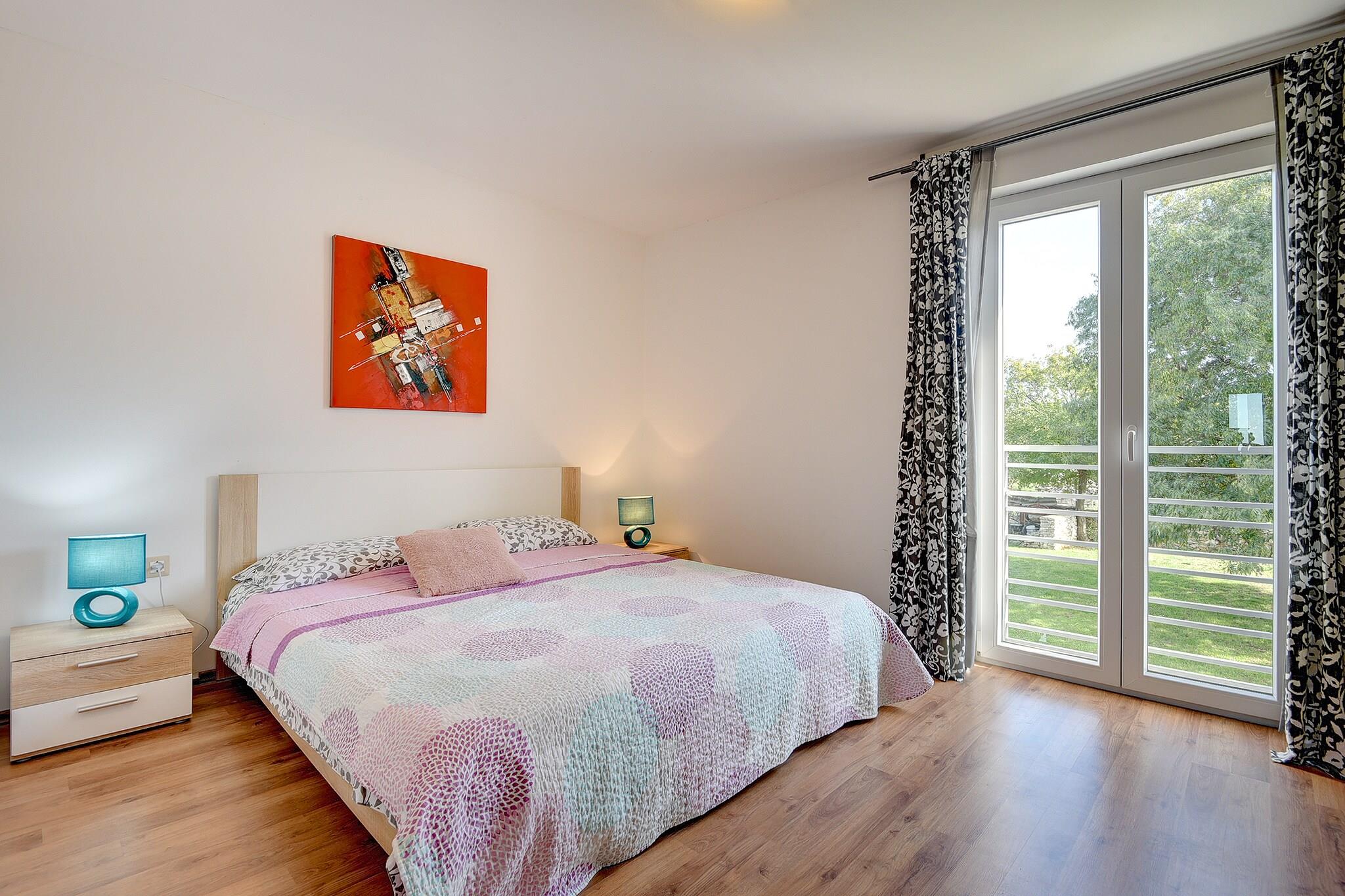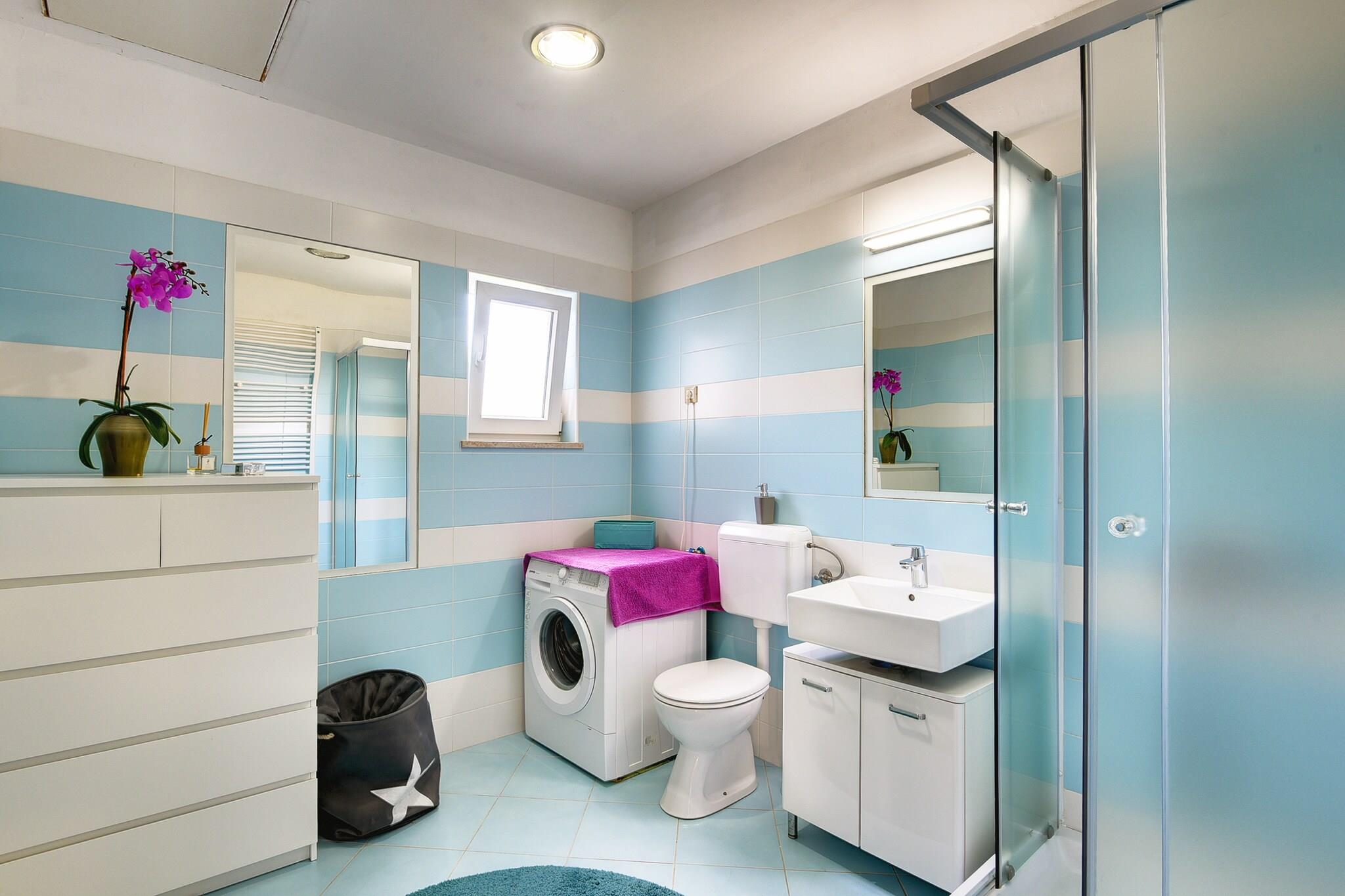 Villa Rubini ligger i landsbyen Rovinjsko Selo, kun 8 km fra den maleriske by Rovinj. I Rovinjsko Selo finder du et lille supermarked og en restaurant. De smukke strande på vestkysten er mere eller mindre en 10 minutters kørsel væk. Du vil helt sikkert hygge dig i den indhegnede have! Du har en swimmingpool, liggestole, en jacuzzi og en volleyballbane til rådighed! Du kan tilbringe aftenen på terrassen med havemøbler og grill. Interiøret er behageligt. I stueetagen finder du en stue med et opholdsområde og spisebord, et åbent køkken og et badeværelse. På første sal er der tre soveværelser og et badeværelse.