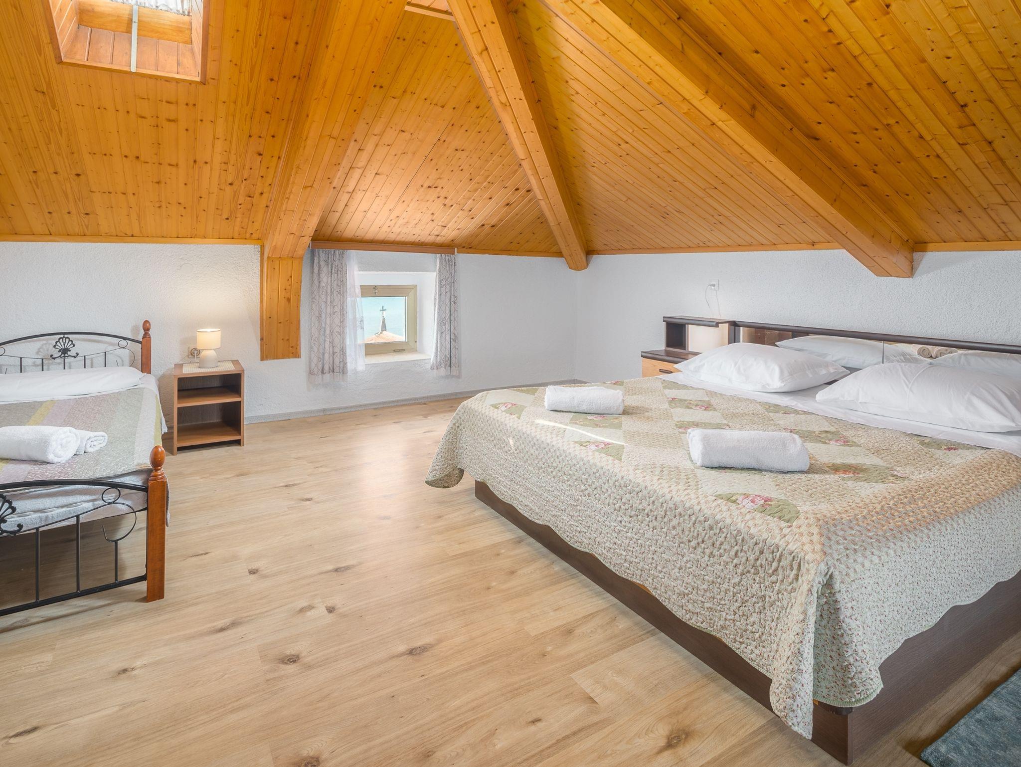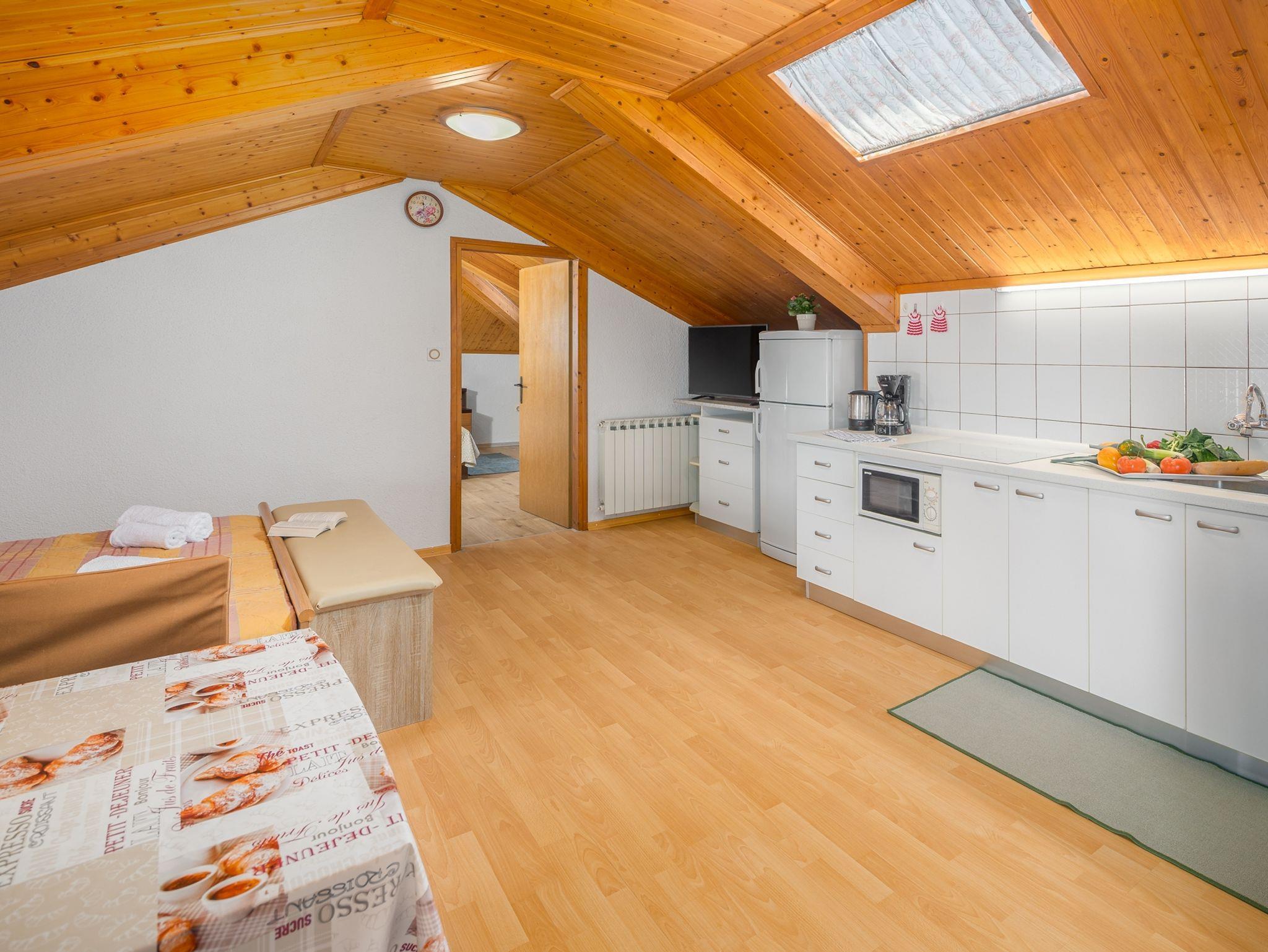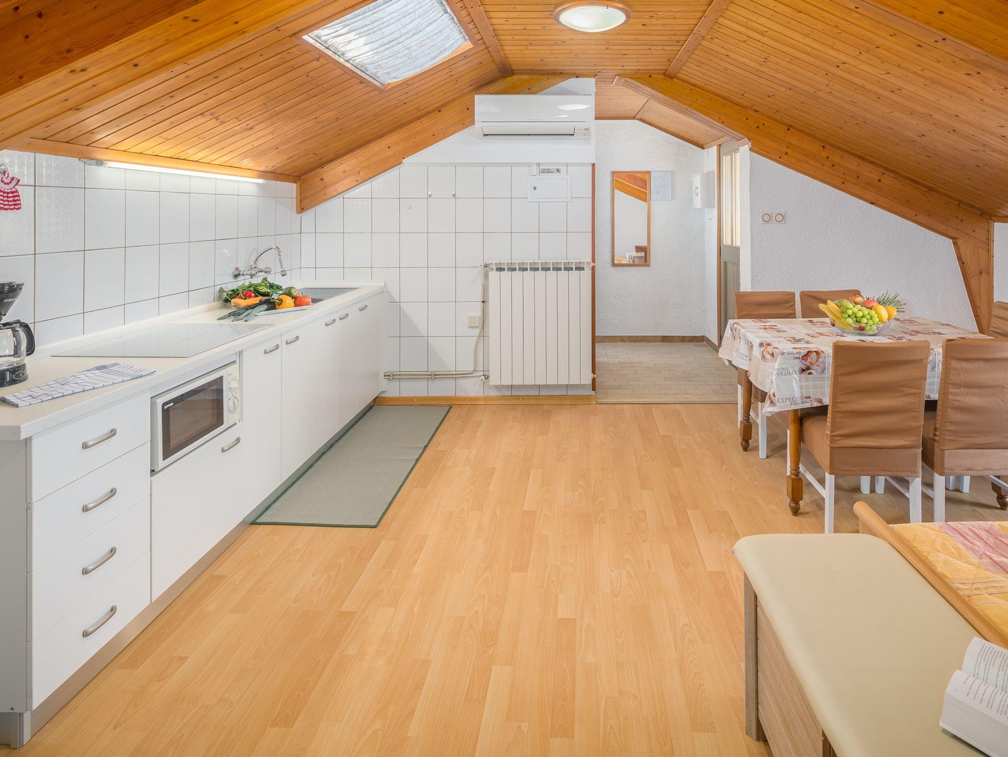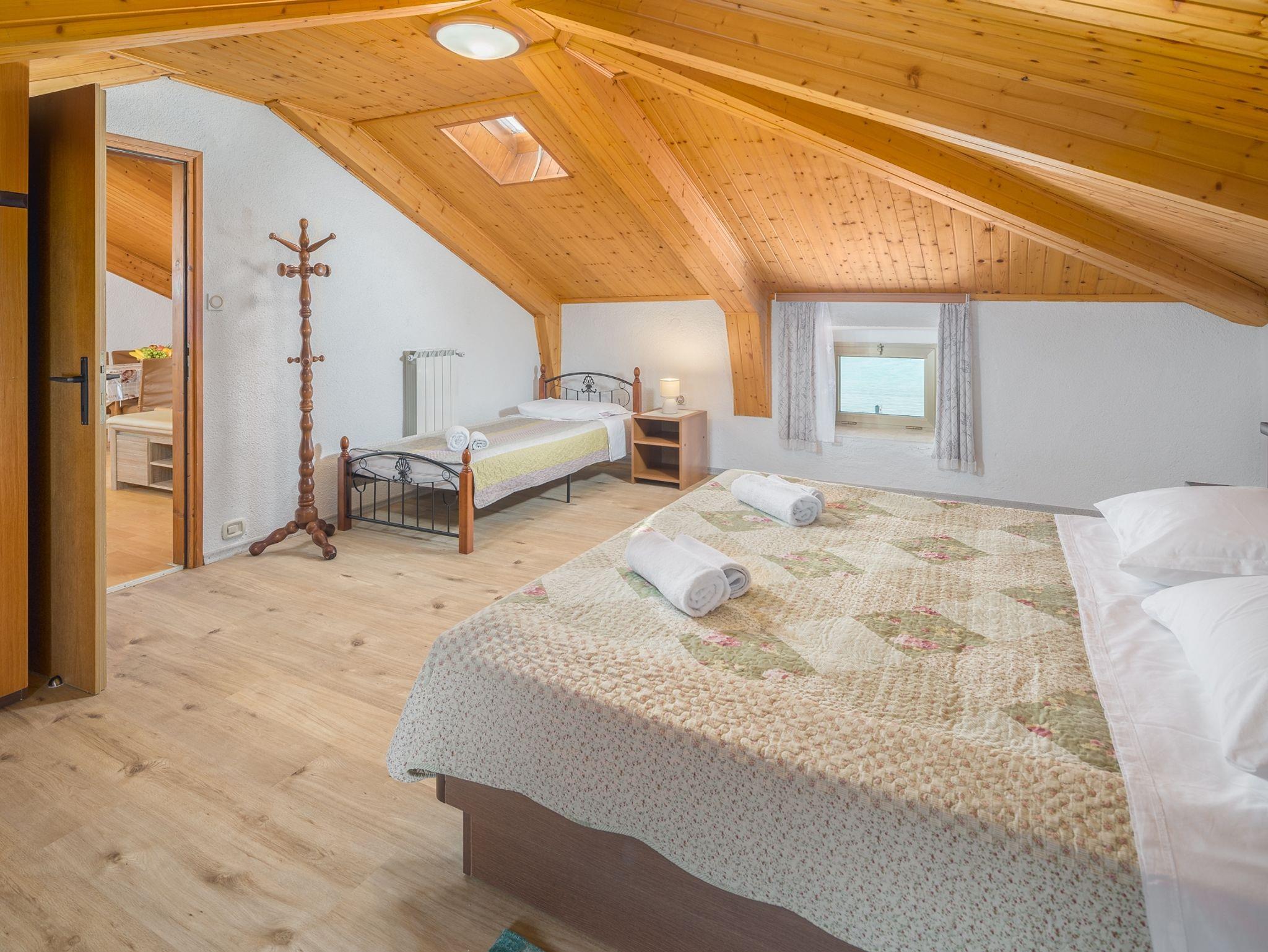 Ferienwohnung bietet Platz für 4 Gäste. Die Betten sind in Schlafzimmern, die es 1 gibt, und in Wohnzimmer, innerhalb einer Gesamtfläche von 58m2, angeordnet. Die Gäste haben eine eigene Terrasse zur Verfügung, auf der sie in warmen Sommernächten genießen können. Das Apartment bietet Meerblick. In der Unterkunftseinheit besteht die Möglichkeit des Mitbringens von Haustieren gegen Aufpreis. IM PREIS INBEGRIFFEN: Kurtaxe, Endreinigung, Klimatisierung, Zentralheizung, Parkplatz, Internet, Föhn. VERBINDLICHE ZUSÄTZLICHE KOSTEN: Aufzahlung für Kurzaufenthalte (prozentualer Zuschlag pro Nächtigungsanzahl: 30% - 1, 20% - 2, 10% - 3). UNVERBINDLICHE ZUSÄTZLICHE KOSTEN: Wäschewaschen (3,00 € Waschen), Haustiere (10,00 € pro Nacht), Zusatzbett (10,00 € pro Nacht). Die Verfügbarkeit zusätzlicher Dienstleistungen in Ihrem reservierten Termin und die Preise derselben (falls nicht aufgeführt) müssen im Voraus überprüft werden. Zusätzliche Dienstleistungen die in der Zahlungsaufforderung nicht aufgeführt sind werden direkt beim Vermieter bezahlt, angenommen der Gast nutzt auch diese.