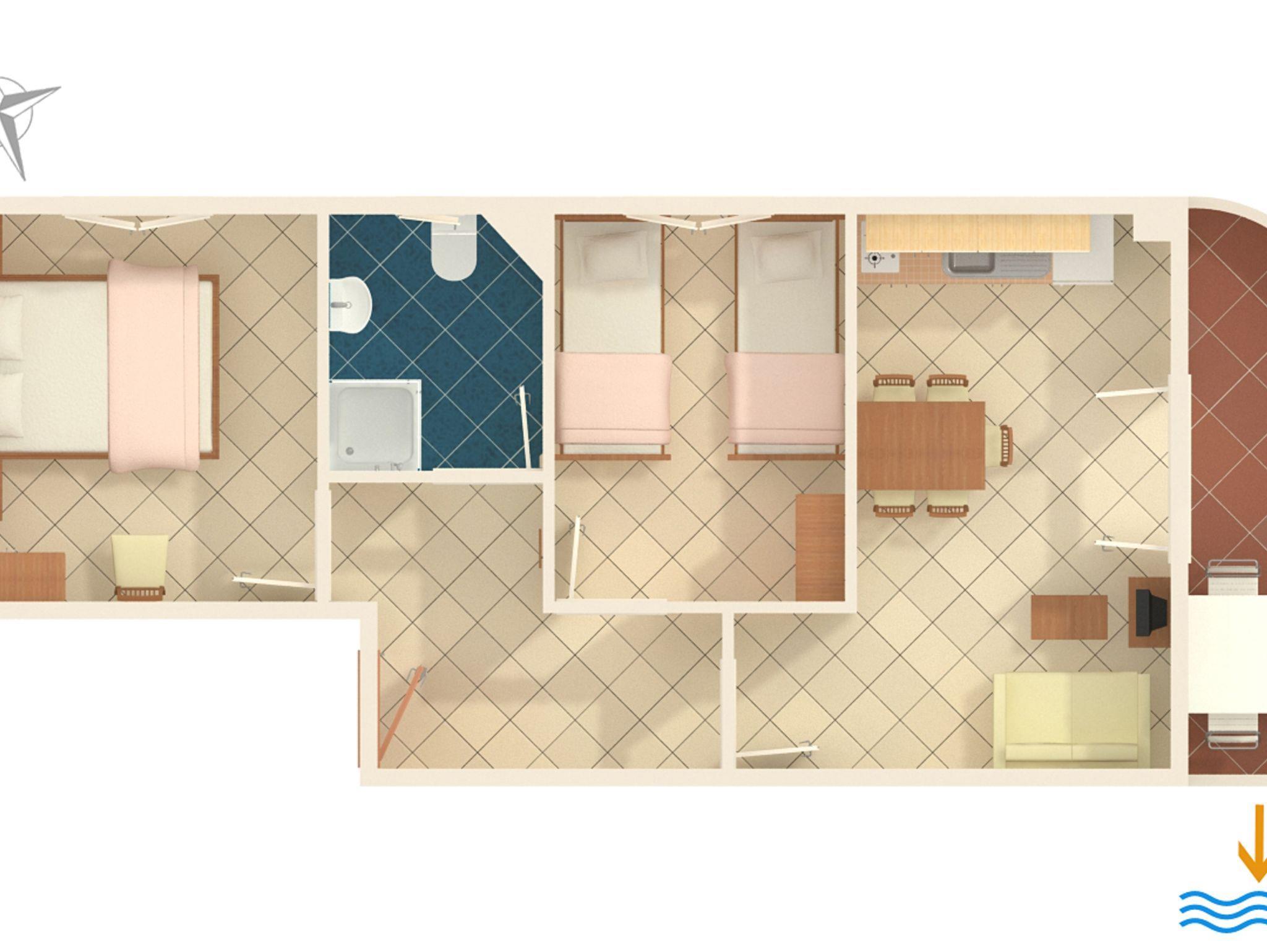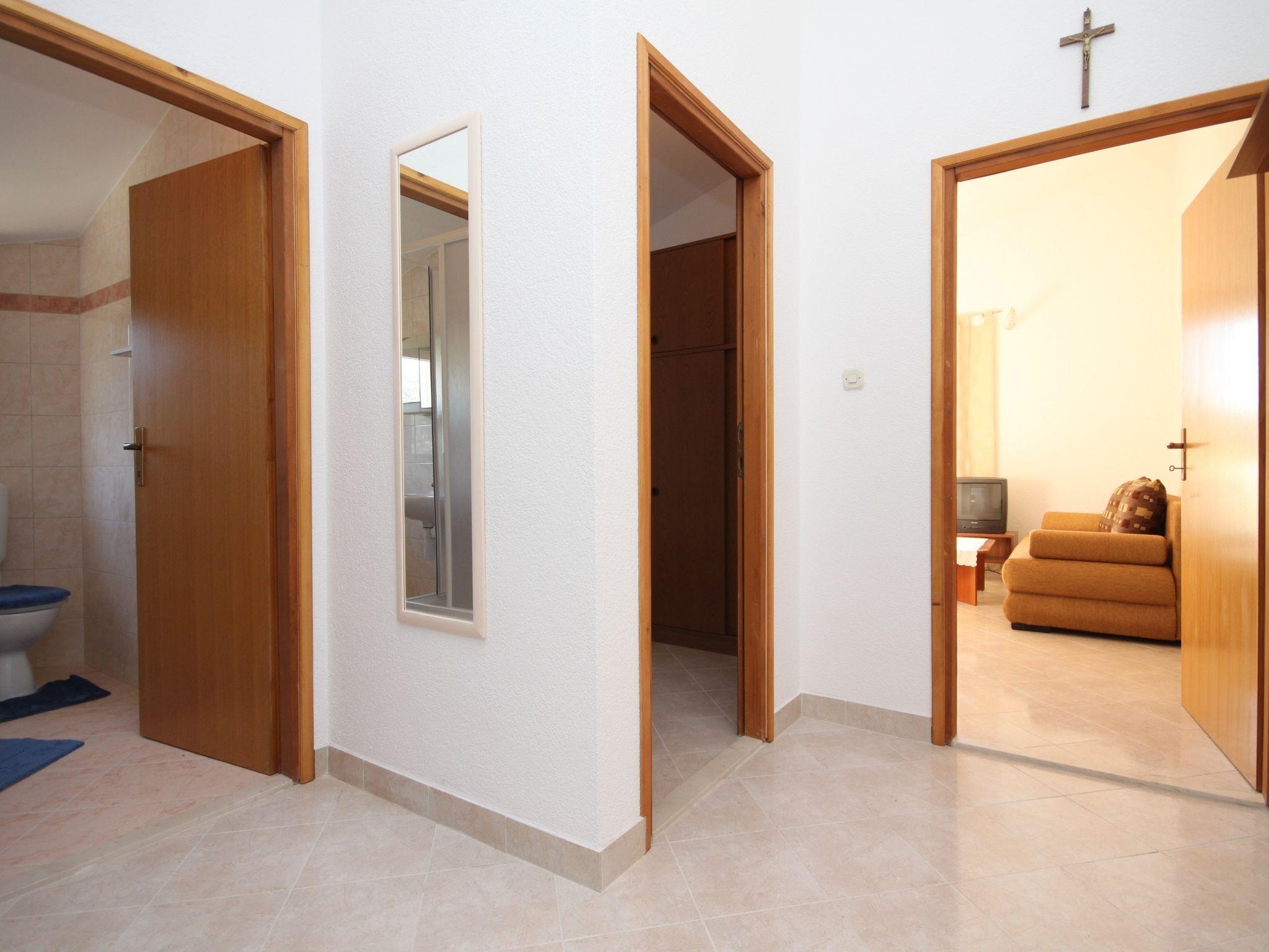 Ferienwohnung bietet Platz für 5 Gäste. Die Betten sind in Schlafzimmern, die es 2 gibt, und in Wohnzimmer, innerhalb einer Gesamtfläche von 42m2, angeordnet. Die Gäste haben einen eigenen Balkon zur Verfügung, auf der sie in warmen Sommernächten genießen können. Das Apartment bietet Meerblick. Es ist erlaubt, Speisen auf dem Gemeinschafts-Grill vorzubereiten. IM PREIS INBEGRIFFEN: Kurtaxe, Endreinigung, Klimatisierung, Parkplatz, Internet, Kinderbett, Bügeleisen, Bügelbrett, Föhn. VERBINDLICHE ZUSÄTZLICHE KOSTEN: Aufzahlung für Kurzaufenthalte (prozentualer Zuschlag pro Nächtigungsanzahl: 30% - 1, 20% - 2, 10% - 3). UNVERBINDLICHE ZUSÄTZLICHE KOSTEN: Wäschewaschen (5,00 € Waschen). Die Verfügbarkeit zusätzlicher Dienstleistungen in Ihrem reservierten Termin und die Preise derselben (falls nicht aufgeführt) müssen im Voraus überprüft werden. Zusätzliche Dienstleistungen die in der Zahlungsaufforderung nicht aufgeführt sind werden direkt beim Vermieter bezahlt, angenommen der Gast nutzt auch diese.