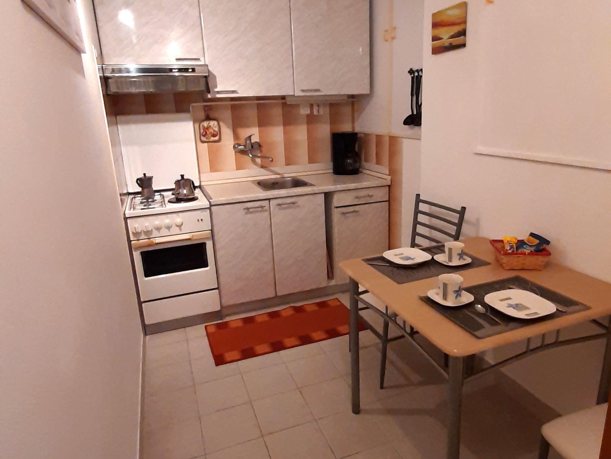 Ferienwohnung bietet Platz für 3 Gäste. Die Betten sind in Schlafzimmern, die es 1 gibt, innerhalb einer Gesamtfläche von 25m2, angeordnet. Das Apartment bietet Meerblick. Es ist erlaubt, Speisen auf dem Gemeinschafts-Grill vorzubereiten. Die reservierte Unterkunftseinheit verfügt über einen gemeinsame Terrasse. IM PREIS INBEGRIFFEN: Kurtaxe, Endreinigung, Klimatisierung, Parkplatz, Internet, Kinderbett, Bügeleisen, Föhn, Sonnenschirm. Die Verfügbarkeit zusätzlicher Dienstleistungen in Ihrem reservierten Termin und die Preise derselben (falls nicht aufgeführt) müssen im Voraus überprüft werden. Zusätzliche Dienstleistungen die in der Zahlungsaufforderung nicht aufgeführt sind werden direkt beim Vermieter bezahlt, angenommen der Gast nutzt auch diese.