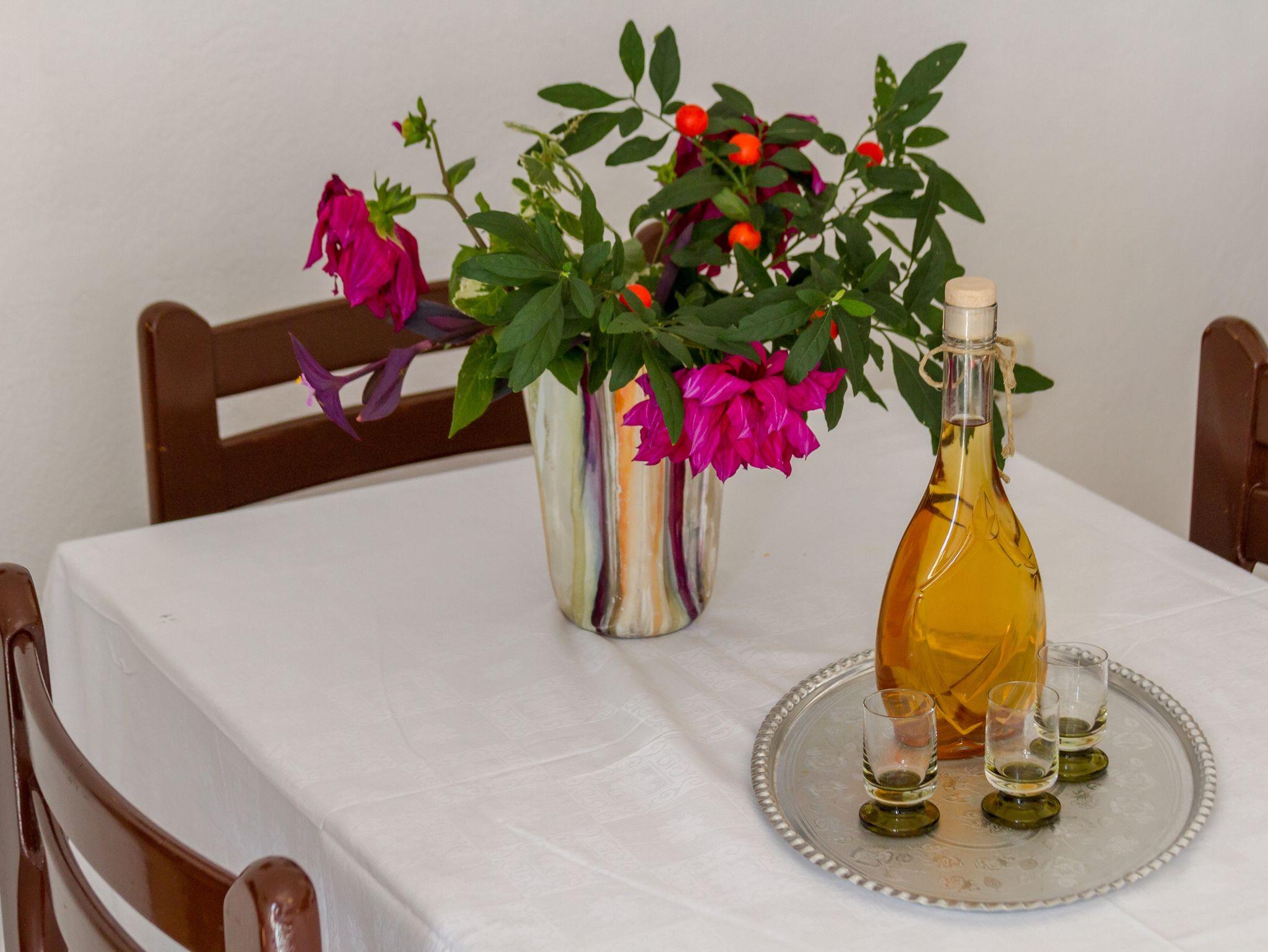Ferienwohnung bietet Platz für 4 Gäste. Die Betten sind in Schlafzimmern, die es 1 gibt, und in Esszimmer, innerhalb einer Gesamtfläche von 31m2, angeordnet. Die Gäste haben einen eigenen Balkon zur Verfügung, auf der sie in warmen Sommernächten genießen können. Das Apartment bietet Meerblick. Es ist erlaubt, Speisen auf dem Gemeinschafts-Grill vorzubereiten. IM PREIS INBEGRIFFEN: Kurtaxe, Endreinigung, Klimatisierung, Parkplatz, Internet, Bügeleisen, Bügelbrett, Föhn, Sonnenschirm, Liegestühle. VERBINDLICHE ZUSÄTZLICHE KOSTEN: Aufzahlung für Kurzaufenthalte (prozentualer Zuschlag pro Nächtigungsanzahl: 30% - 1, 20% - 2, 10% - 3). UNVERBINDLICHE ZUSÄTZLICHE KOSTEN: Wäschewaschen (5,00 € Waschen). Die Verfügbarkeit zusätzlicher Dienstleistungen in Ihrem reservierten Termin und die Preise derselben (falls nicht aufgeführt) müssen im Voraus überprüft werden. Zusätzliche Dienstleistungen die in der Zahlungsaufforderung nicht aufgeführt sind werden direkt beim Vermieter bezahlt, angenommen der Gast nutzt auch diese.