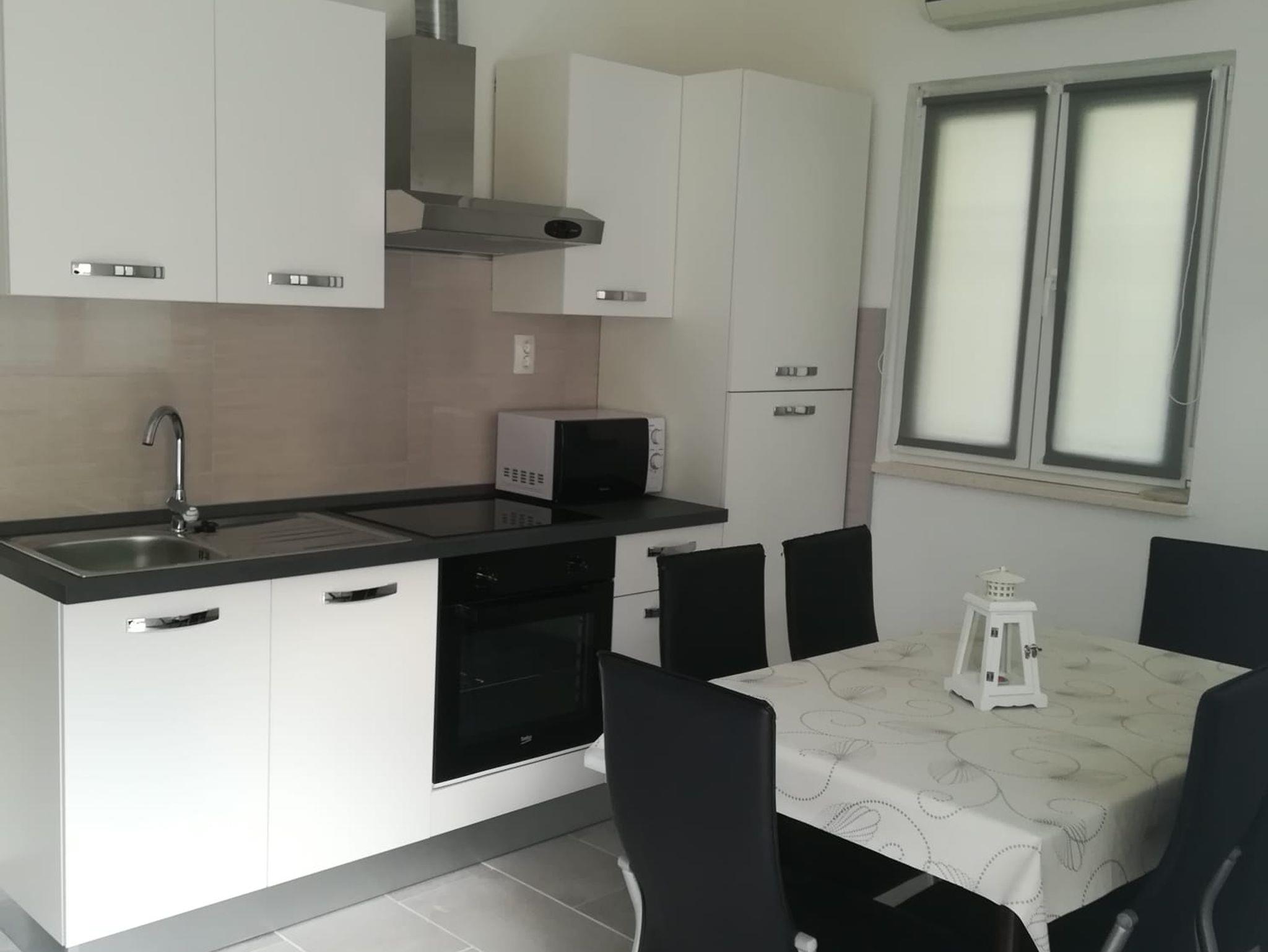 Ferienwohnung bietet Platz für 6 Gäste. Die Betten sind in Schlafzimmern, die es 2 gibt, innerhalb einer Gesamtfläche von 51m2, angeordnet. Die Gäste haben eine eigene Terrasse zur Verfügung, auf der sie in warmen Sommernächten genießen können. Das Apartment bietet Meerblick. Es ist erlaubt, Speisen auf dem Gemeinschafts-Grill vorzubereiten. IM PREIS INBEGRIFFEN: Kurtaxe, Endreinigung, Klimatisierung, Parkplatz, Internet, Kinderbett. Die Verfügbarkeit zusätzlicher Dienstleistungen in Ihrem reservierten Termin und die Preise derselben (falls nicht aufgeführt) müssen im Voraus überprüft werden. Zusätzliche Dienstleistungen die in der Zahlungsaufforderung nicht aufgeführt sind werden direkt beim Vermieter bezahlt, angenommen der Gast nutzt auch diese.