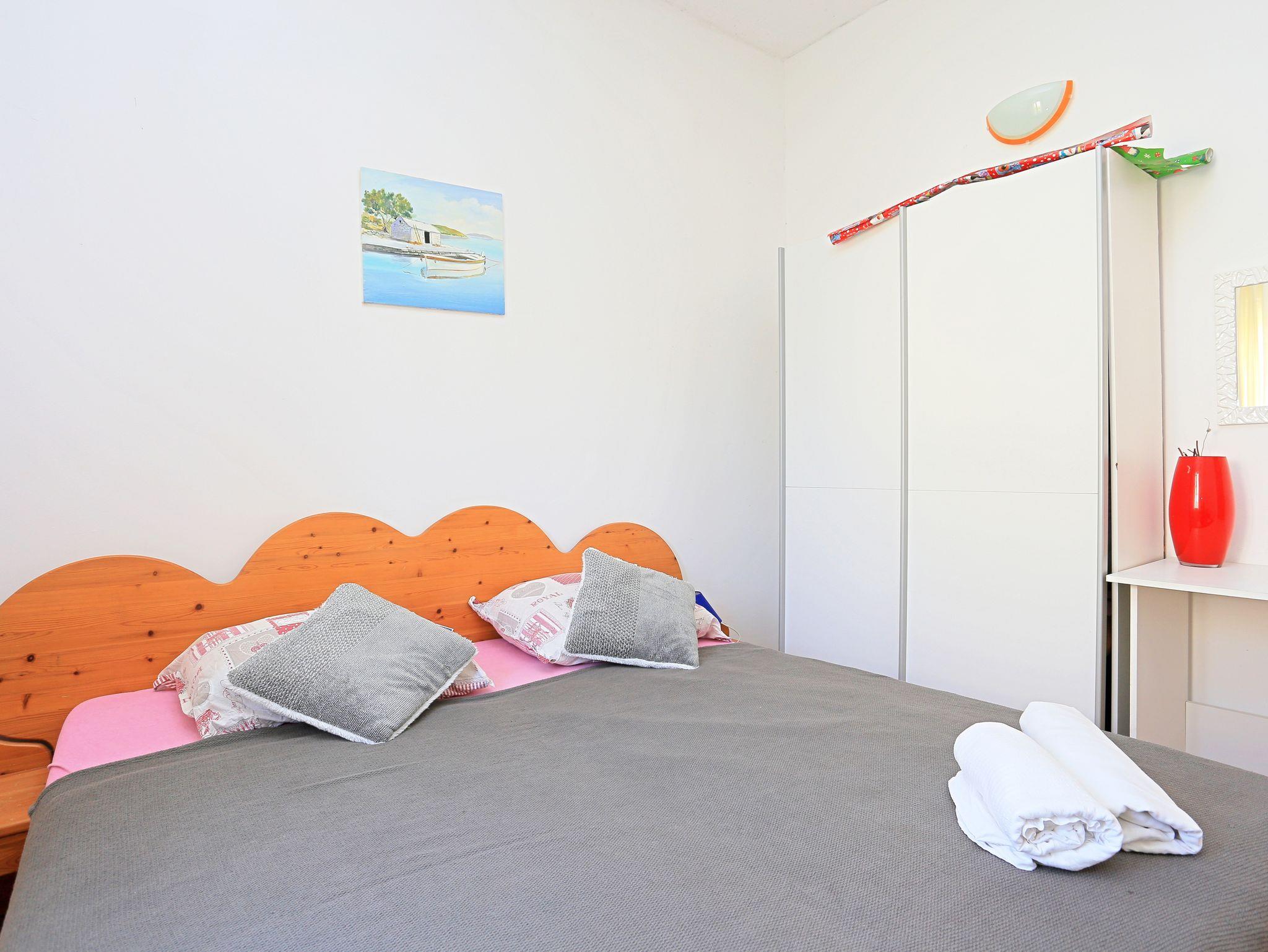 Ferienwohnung bietet Platz für 4 Gäste. Die Betten sind in Schlafzimmern, die es 1 gibt, und in Wohnzimmer, innerhalb einer Gesamtfläche von 28m2, angeordnet. Die Gäste haben eine eigene Terrasse zur Verfügung, auf der sie in warmen Sommernächten genießen können. Es ist erlaubt, Speisen auf dem Gemeinschafts-Grill vorzubereiten. In der Unterkunftseinheit besteht die Möglichkeit des Mitbringens von Haustieren, und die Dienstleistung ist im Preis der Unterkunft enthalten. IM PREIS INBEGRIFFEN: Kurtaxe, Endreinigung, Klimatisierung, Parkplatz, Internet, Wäschewaschen, Haustiere, Bügeleisen, Föhn. VERBINDLICHE ZUSÄTZLICHE KOSTEN: Aufzahlung für Kurzaufenthalte (prozentualer Zuschlag pro Nächtigungsanzahl: 30% - 1, 20% - 2, 10% - 3). UNVERBINDLICHE ZUSÄTZLICHE KOSTEN: Boot (150,00 € pro Nacht), Bootsanlegeplatz (15,00 € pro Nacht). Die Verfügbarkeit zusätzlicher Dienstleistungen in Ihrem reservierten Termin und die Preise derselben (falls nicht aufgeführt) müssen im Voraus überprüft werden. Zusätzliche Dienstleistungen die in der Zahlungsaufforderung nicht aufgeführt sind werden direkt beim Vermieter bezahlt, angenommen der Gast nutzt auch diese.