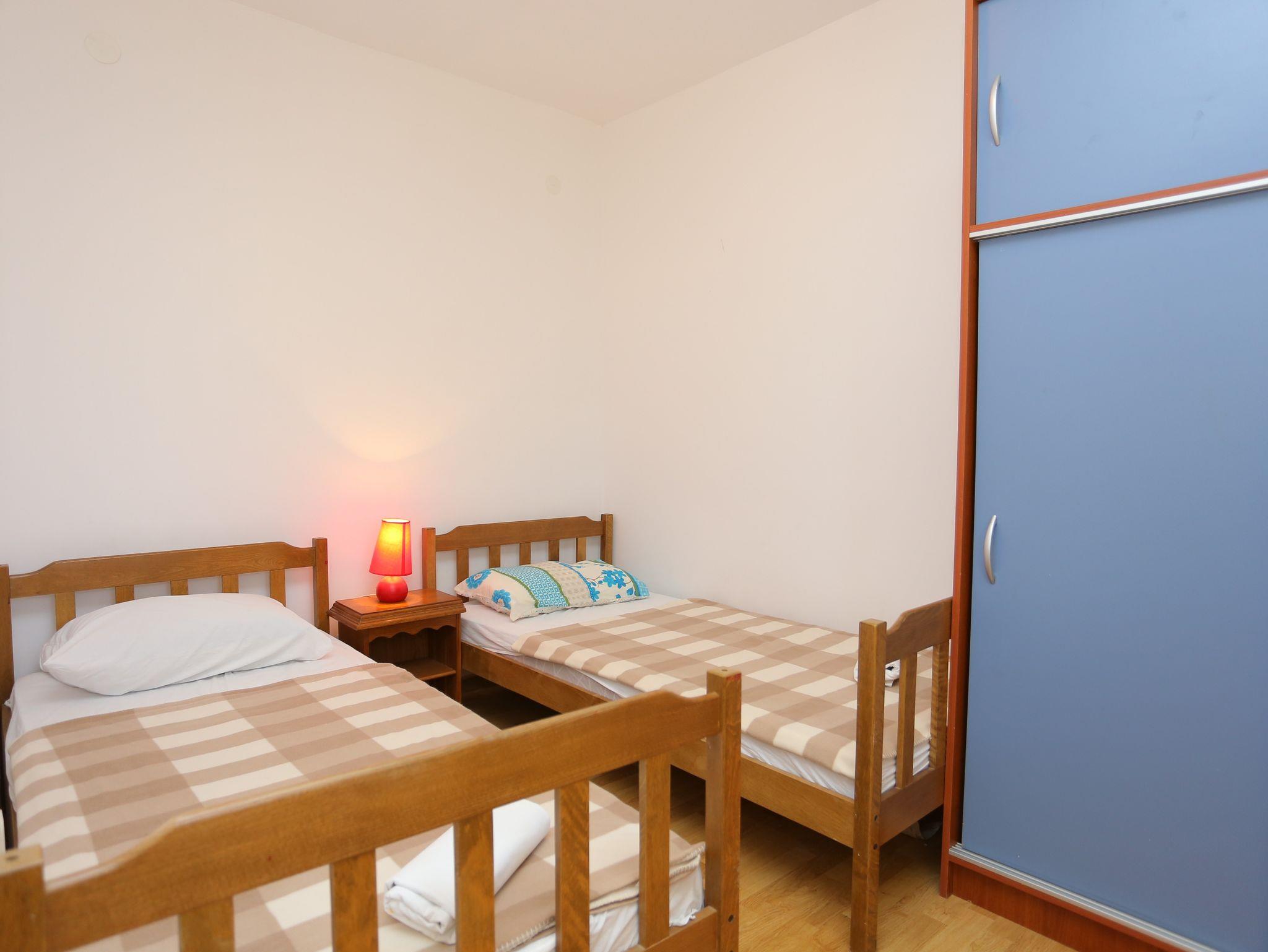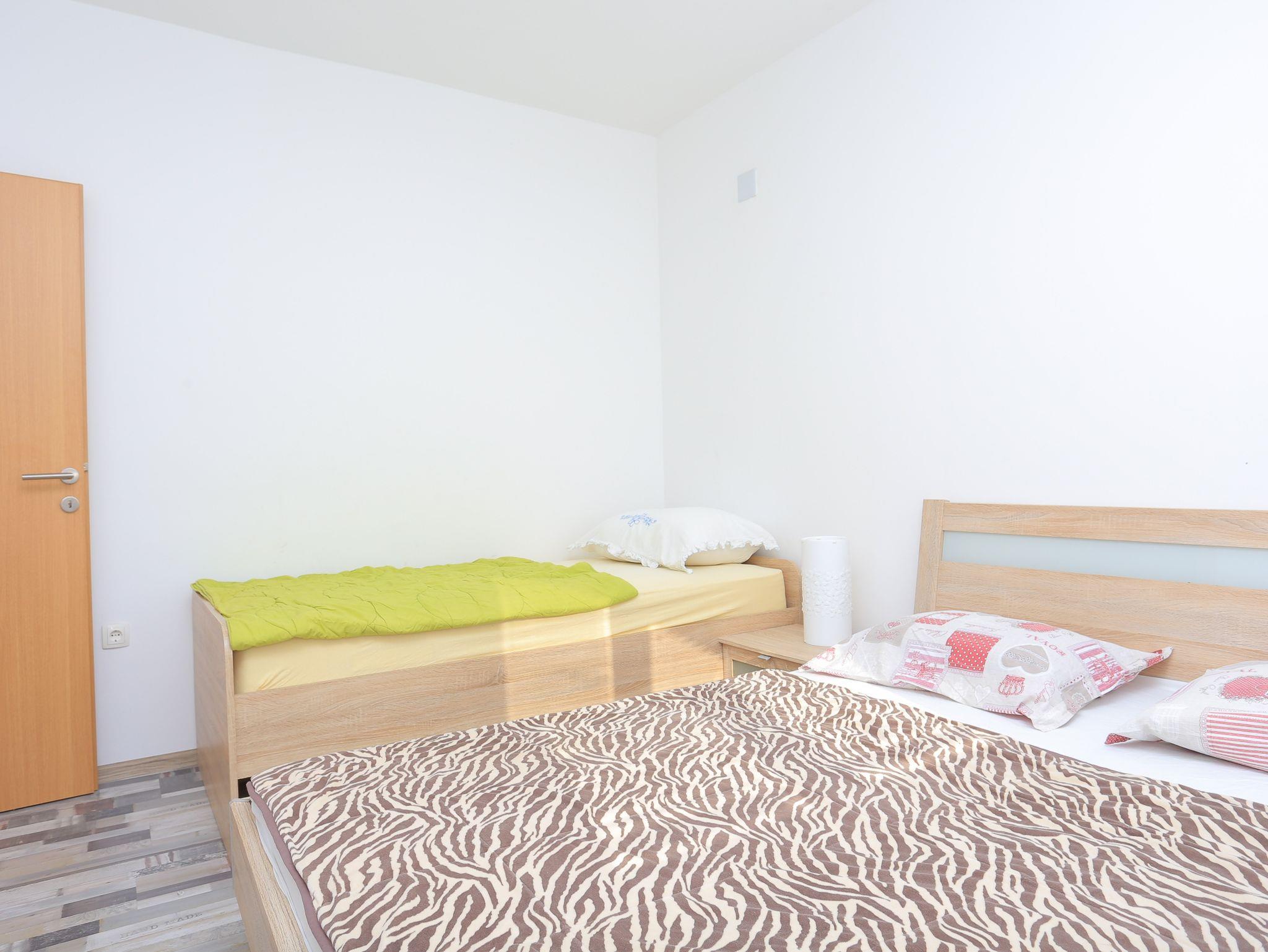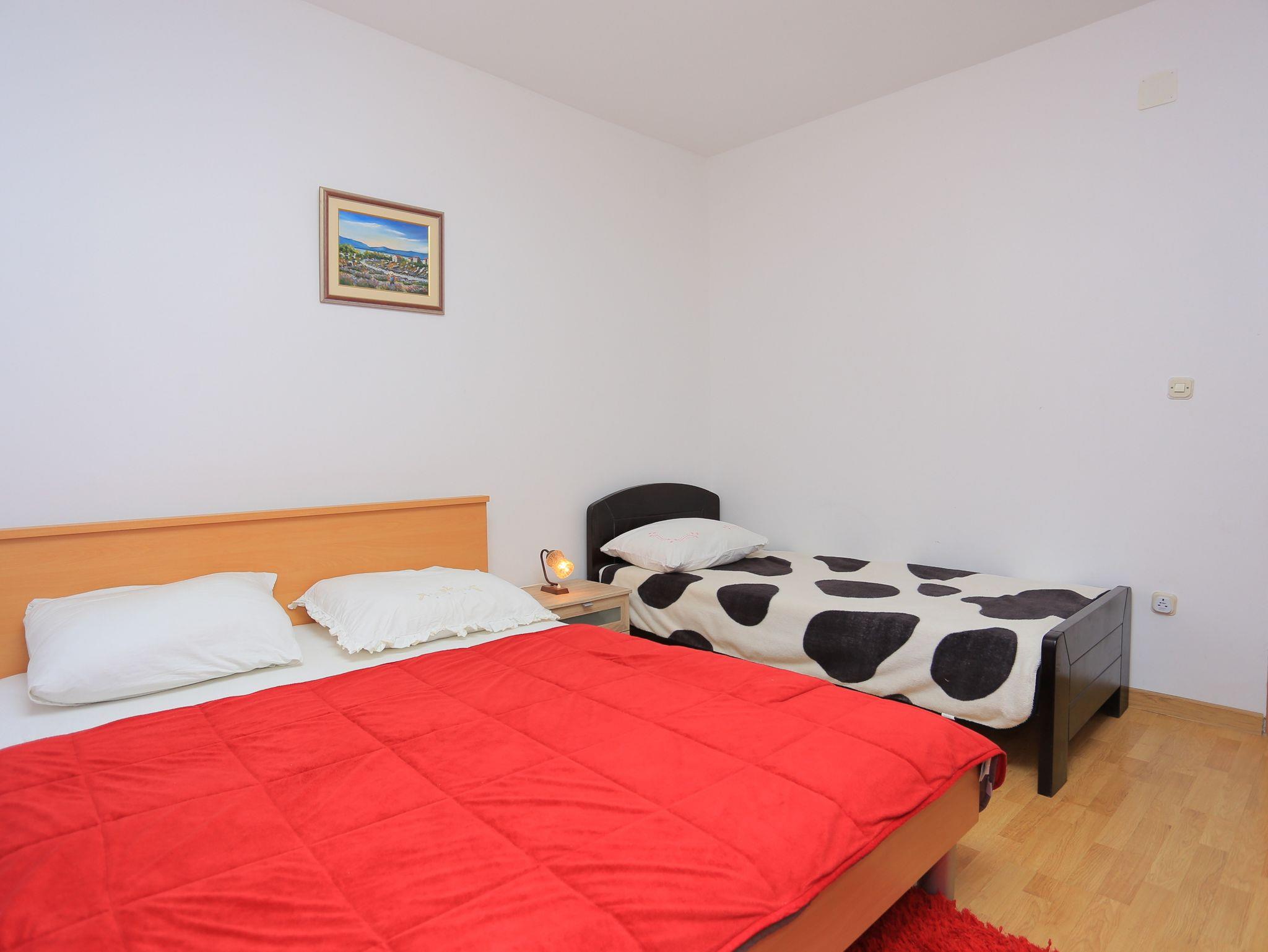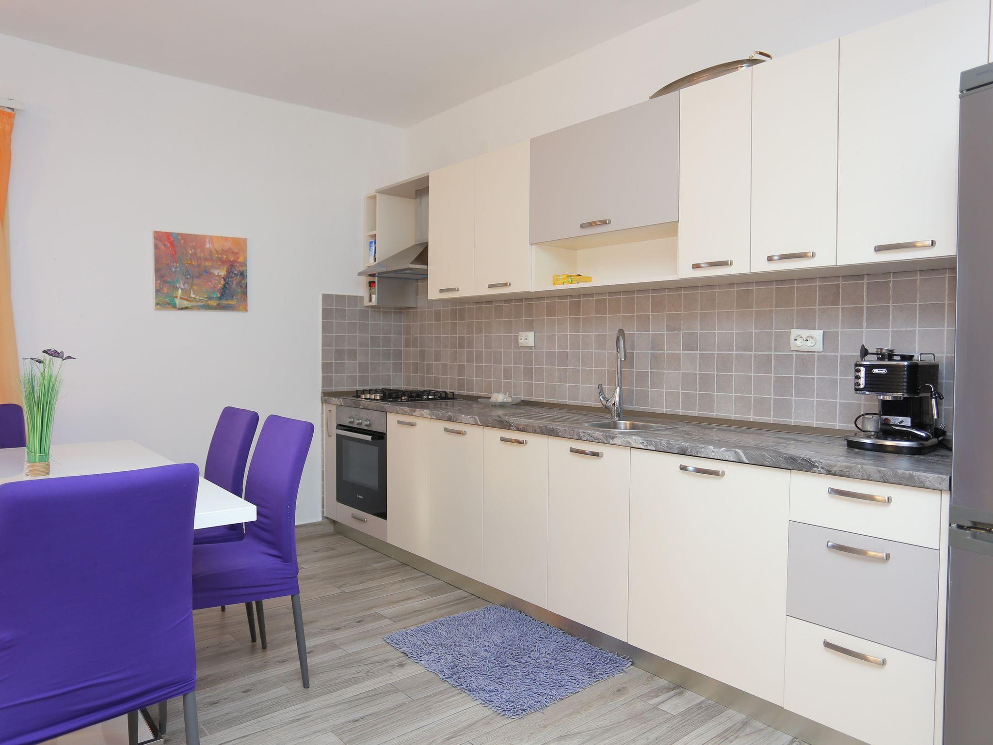 Ferienwohnung bietet Platz für 8 Gäste. Die Betten sind in Schlafzimmern, die es 3 gibt, innerhalb einer Gesamtfläche von 73m2, angeordnet. Die Gäste haben eine eigene Terrasse zur Verfügung, auf der sie in warmen Sommernächten genießen können. Das Apartment bietet Meerblick. Es ist erlaubt, Speisen auf dem Gemeinschafts-Grill vorzubereiten. In der Unterkunftseinheit besteht die Möglichkeit des Mitbringens von Haustieren, und die Dienstleistung ist im Preis der Unterkunft enthalten. IM PREIS INBEGRIFFEN: Kurtaxe, Endreinigung, Klimatisierung, Parkplatz, Internet, Wäschewaschen, Haustiere, Bügeleisen, Föhn. VERBINDLICHE ZUSÄTZLICHE KOSTEN: Aufzahlung für Kurzaufenthalte (prozentualer Zuschlag pro Nächtigungsanzahl: 30% - 1, 20% - 2, 10% - 3). UNVERBINDLICHE ZUSÄTZLICHE KOSTEN: Boot (150,00 € pro Nacht), Bootsanlegeplatz (15,00 € pro Nacht). Die Verfügbarkeit zusätzlicher Dienstleistungen in Ihrem reservierten Termin und die Preise derselben (falls nicht aufgeführt) müssen im Voraus überprüft werden. Zusätzliche Dienstleistungen die in der Zahlungsaufforderung nicht aufgeführt sind werden direkt beim Vermieter bezahlt, angenommen der Gast nutzt auch diese.