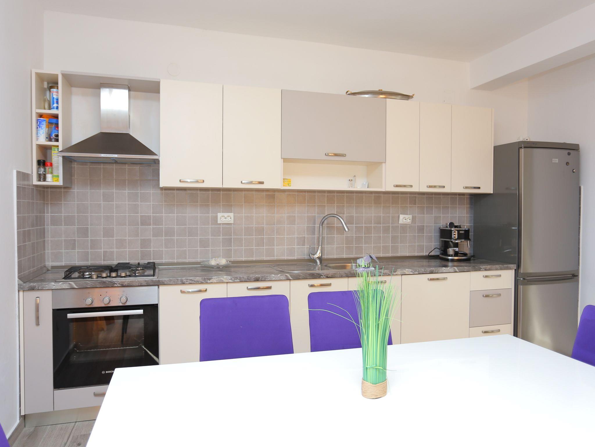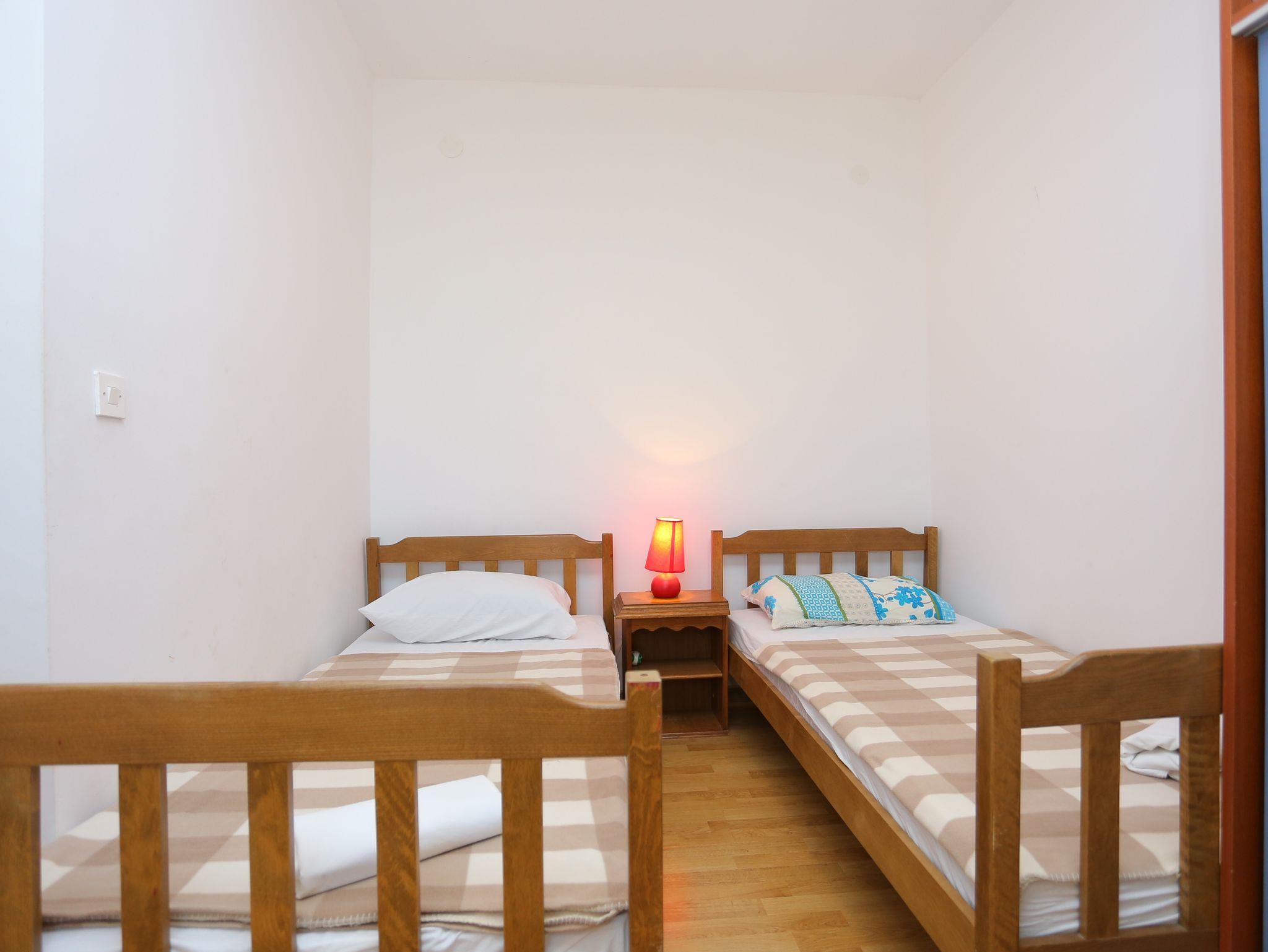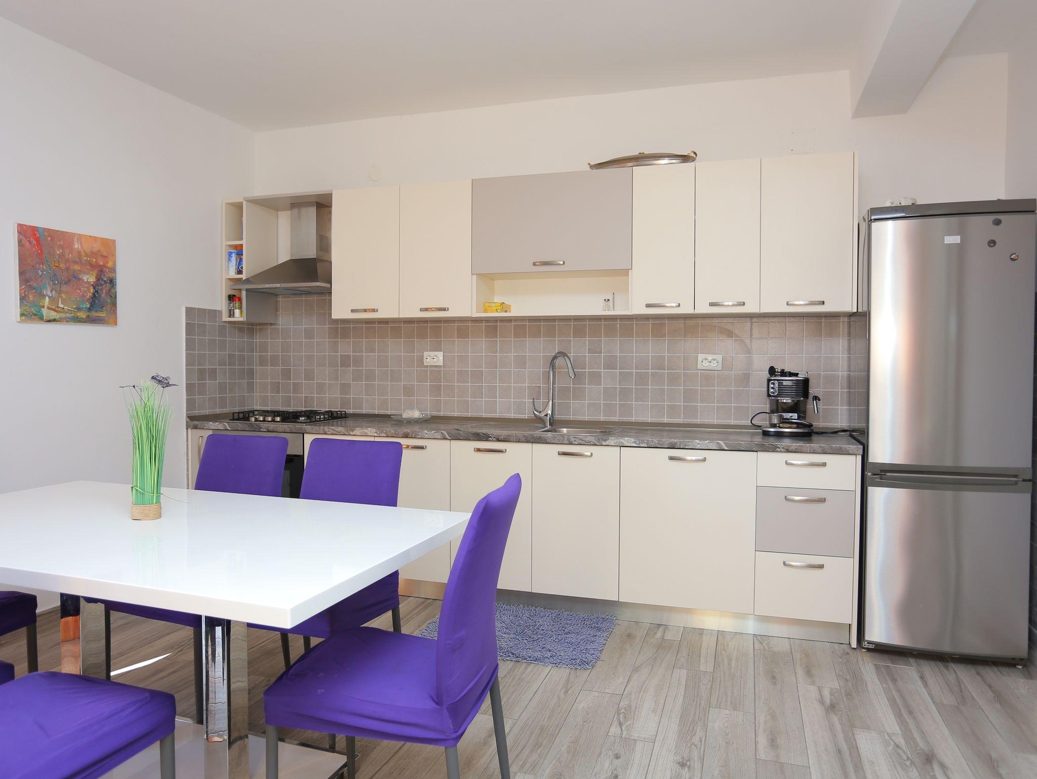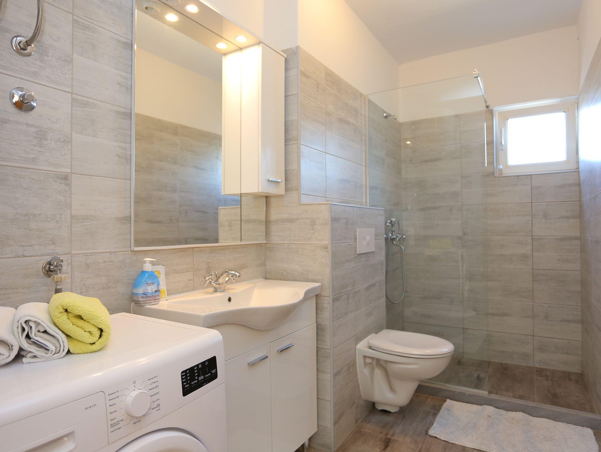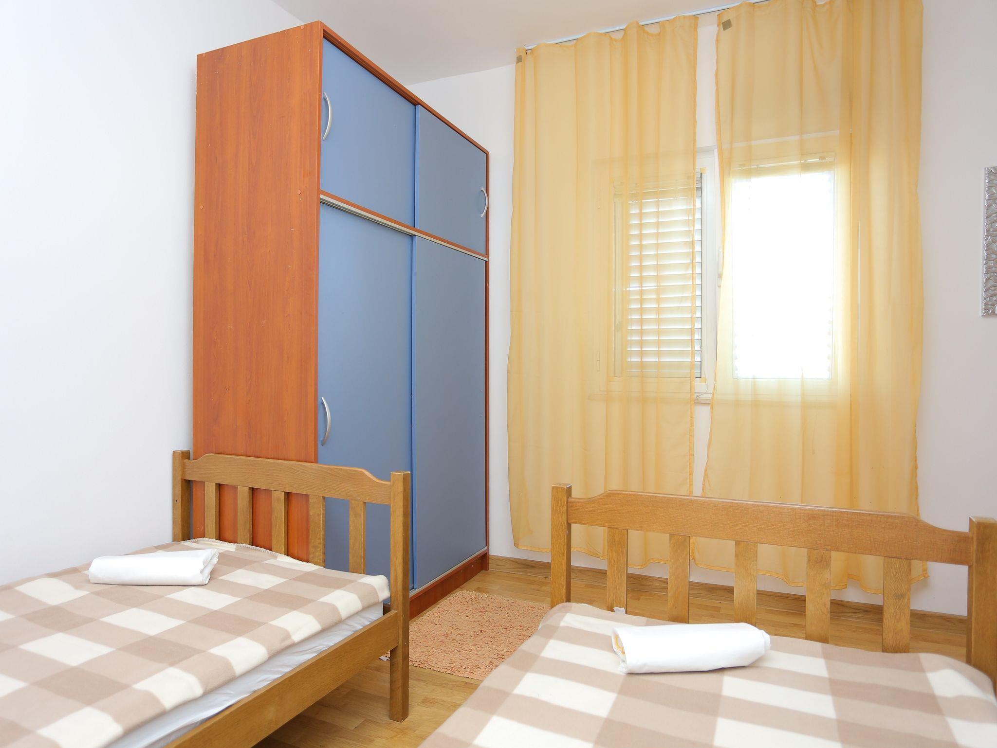 Ferienwohnung bietet Platz für 8 Gäste. Die Betten sind in Schlafzimmern, die es 3 gibt, innerhalb einer Gesamtfläche von 73m2, angeordnet. Die Gäste haben eine eigene Terrasse zur Verfügung, auf der sie in warmen Sommernächten genießen können. Das Apartment bietet Meerblick. Es ist erlaubt, Speisen auf dem Gemeinschafts-Grill vorzubereiten. In der Unterkunftseinheit besteht die Möglichkeit des Mitbringens von Haustieren, und die Dienstleistung ist im Preis der Unterkunft enthalten. IM PREIS INBEGRIFFEN: Kurtaxe, Endreinigung, Klimatisierung, Parkplatz, Internet, Wäschewaschen, Haustiere, Bügeleisen, Föhn. VERBINDLICHE ZUSÄTZLICHE KOSTEN: Aufzahlung für Kurzaufenthalte (prozentualer Zuschlag pro Nächtigungsanzahl: 30% - 1, 20% - 2, 10% - 3). UNVERBINDLICHE ZUSÄTZLICHE KOSTEN: Boot (150,00 € pro Nacht), Bootsanlegeplatz (15,00 € pro Nacht). Die Verfügbarkeit zusätzlicher Dienstleistungen in Ihrem reservierten Termin und die Preise derselben (falls nicht aufgeführt) müssen im Voraus überprüft werden. Zusätzliche Dienstleistungen die in der Zahlungsaufforderung nicht aufgeführt sind werden direkt beim Vermieter bezahlt, angenommen der Gast nutzt auch diese.