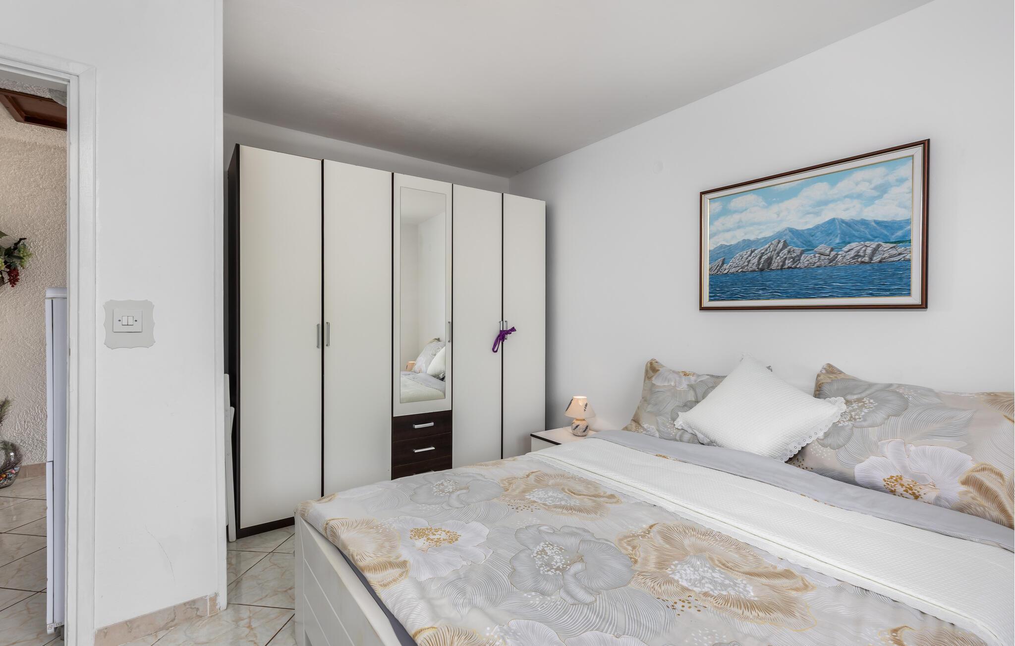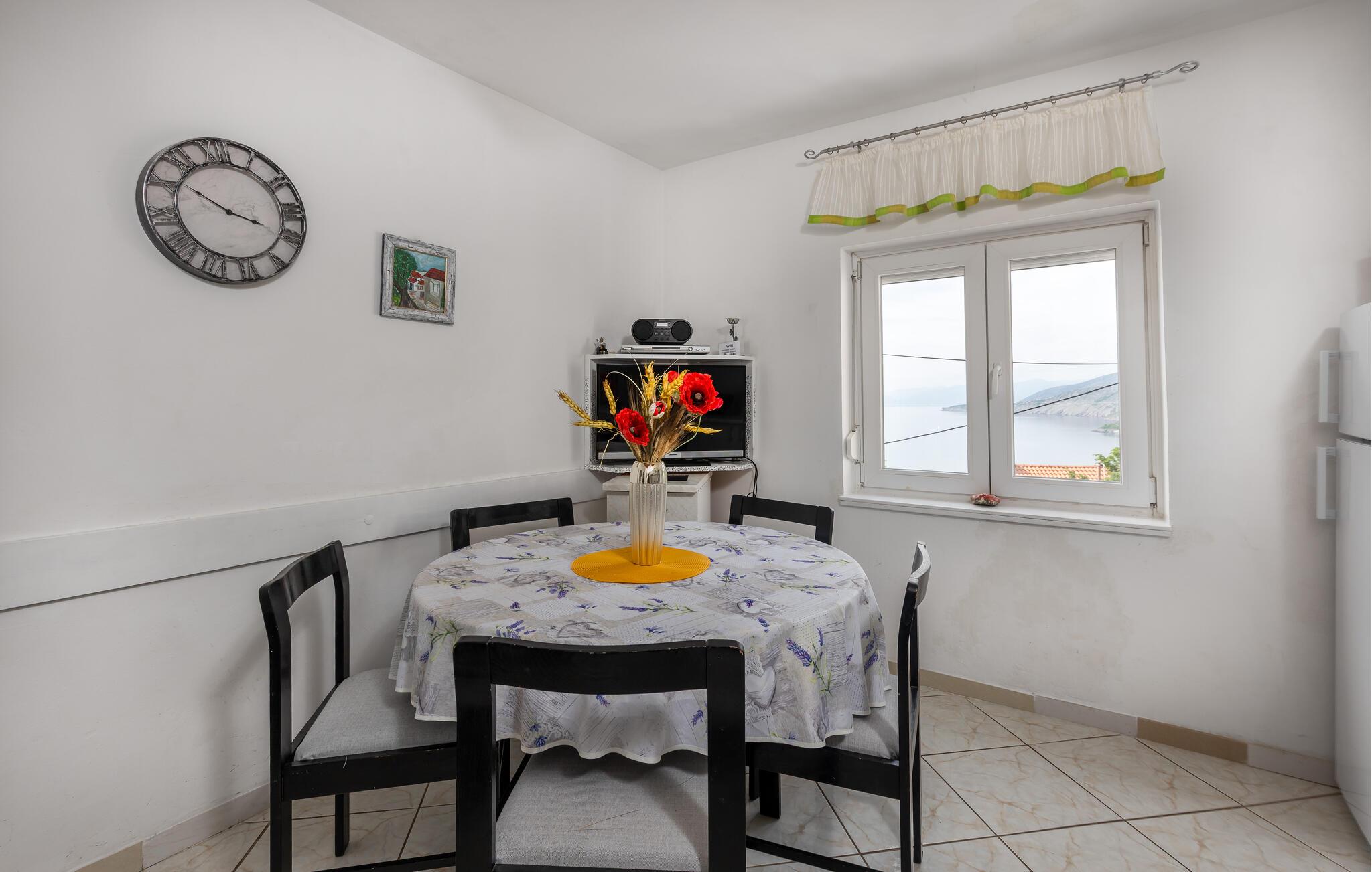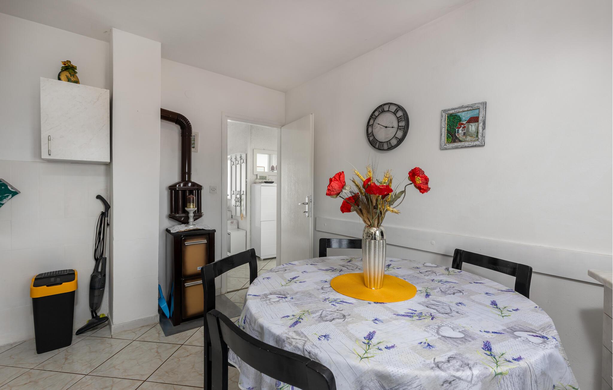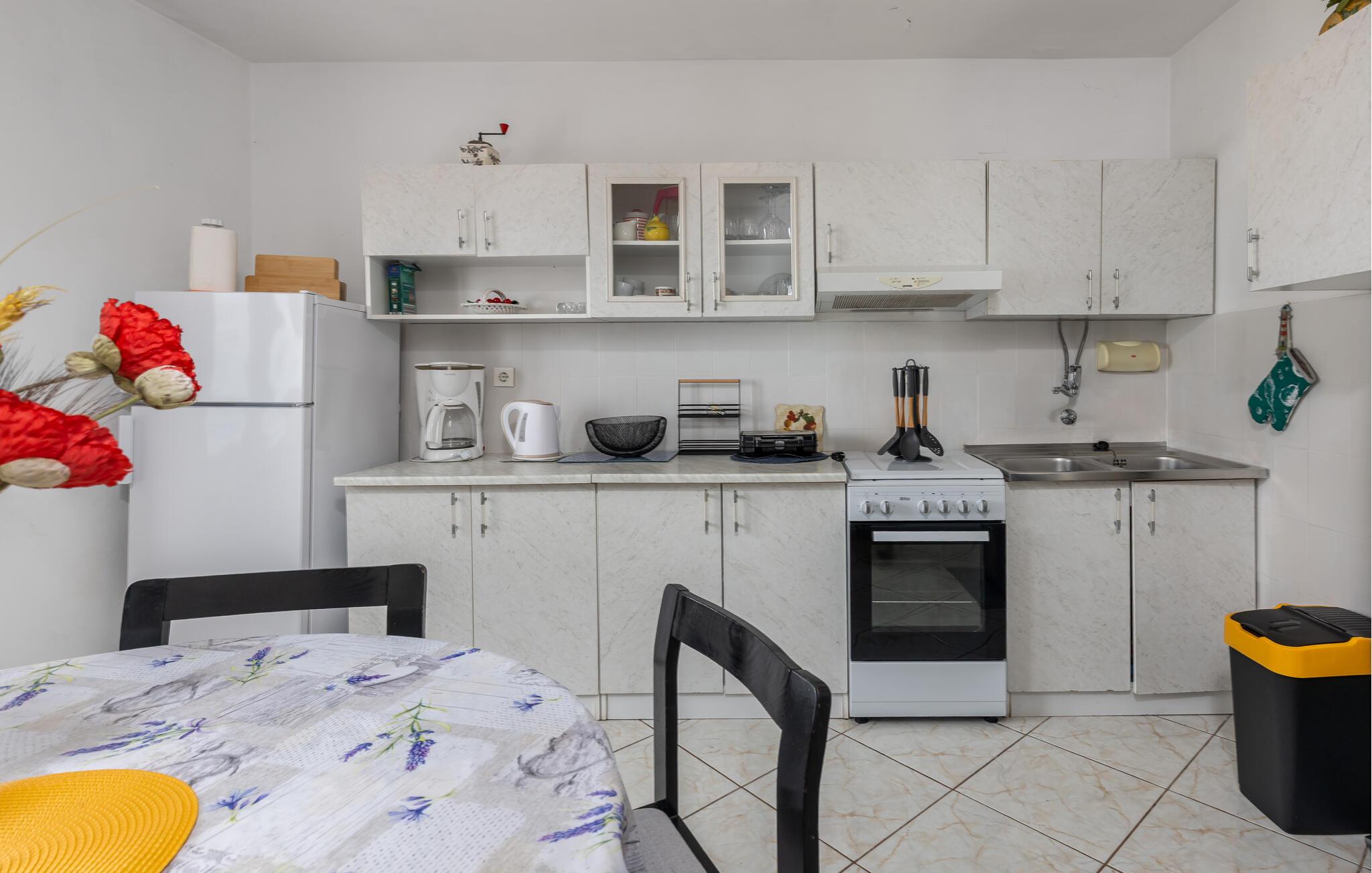 Lad jer fortrylle af Adriaterhavskystens betagende natur, som denne skønne ferielejlighed giver jer nem adgang til. Begynd dagene i det lyse, hyggelige køkken, som er godt udstyret til at tilberede lækre måltider. Ved spisebordet med farverige sædehynder kan I nyde morgenmaden med udsigt til det grønne. Planlæg jeres næste udflugter her og hyg jer med spilleaftener oven på dagens program.