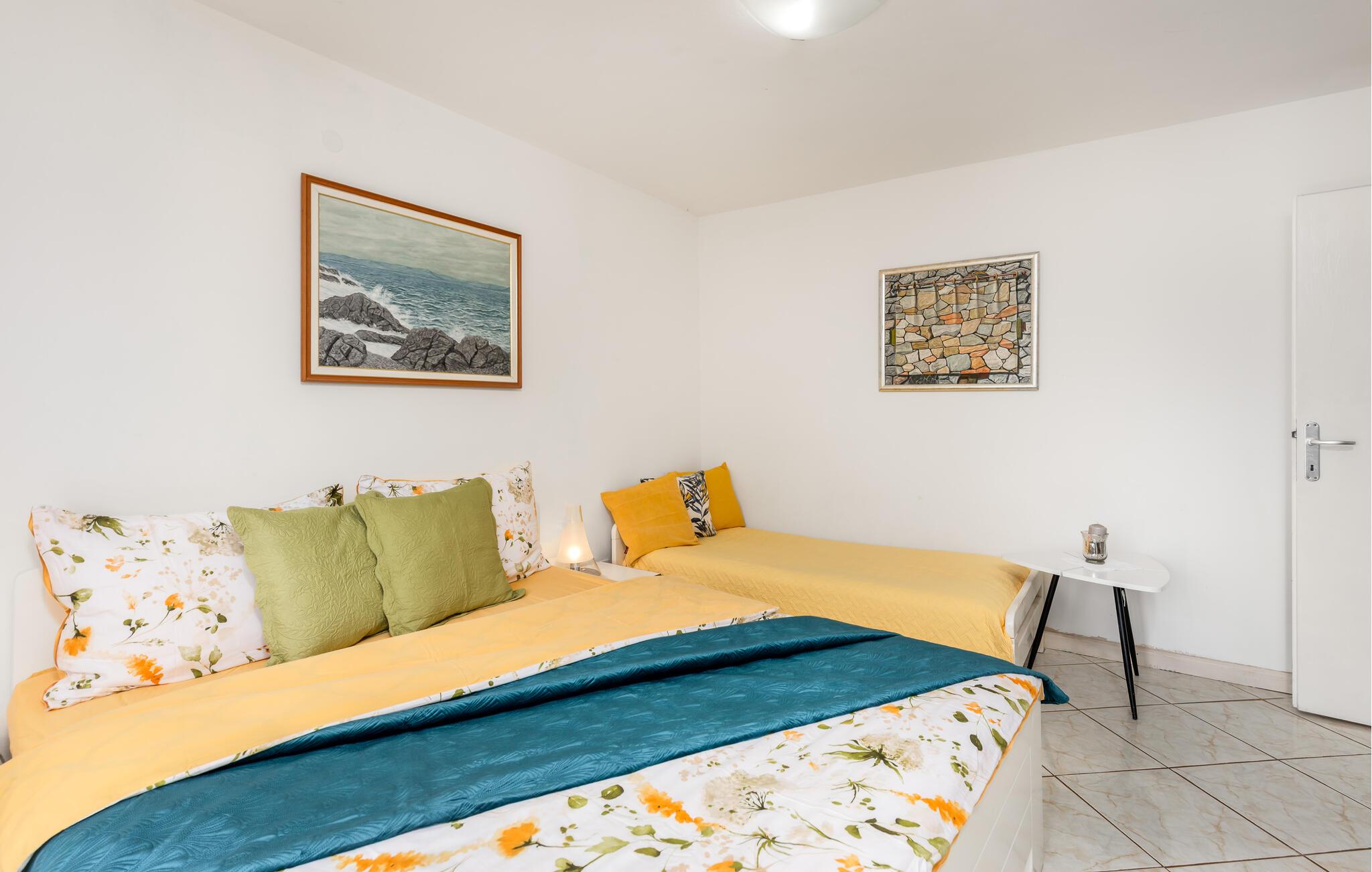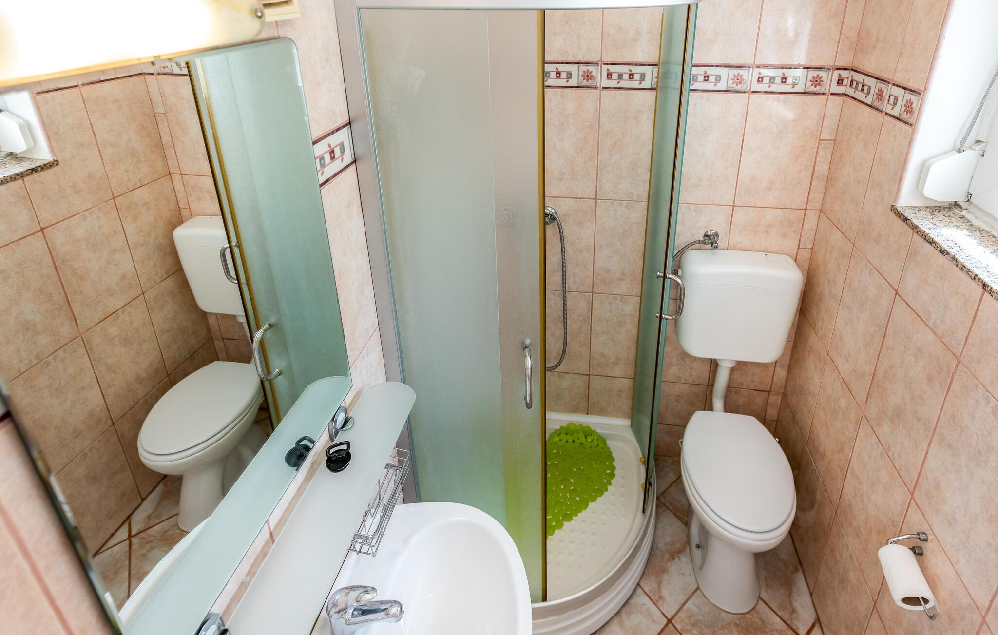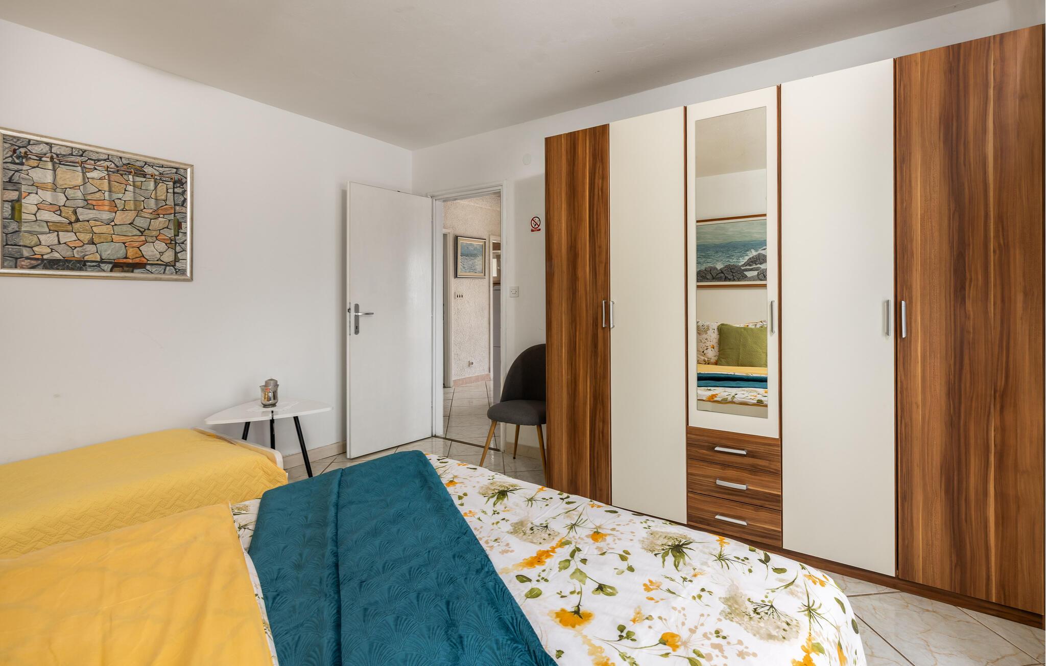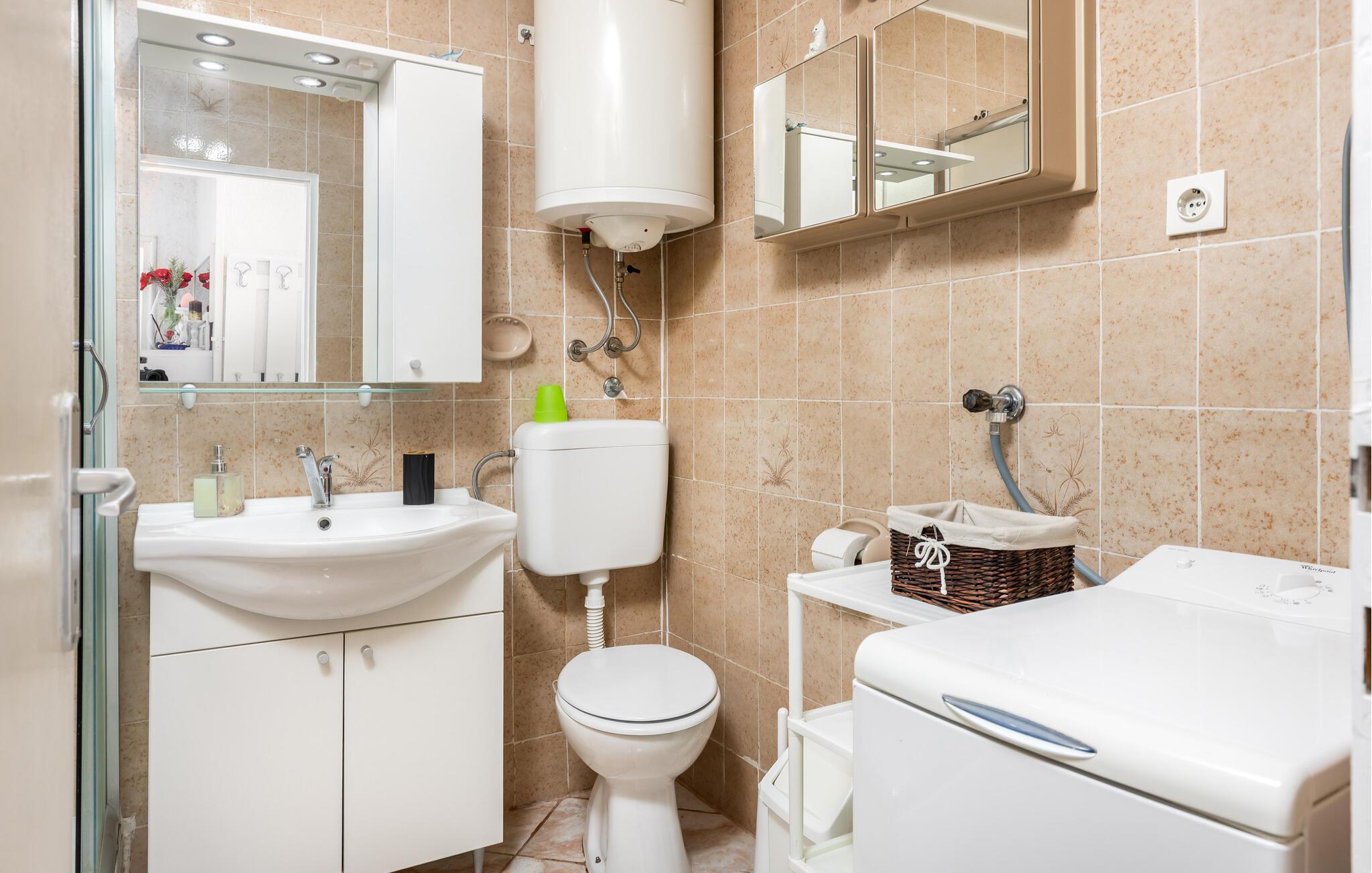 Lad jer fortrylle af Adriaterhavskystens betagende natur, som denne skønne ferielejlighed giver jer nem adgang til. Begynd dagene i det lyse, hyggelige køkken, som er godt udstyret til at tilberede lækre måltider. Ved spisebordet med farverige sædehynder kan I nyde morgenmaden med udsigt til det grønne. Planlæg jeres næste udflugter her og hyg jer med spilleaftener oven på dagens program.