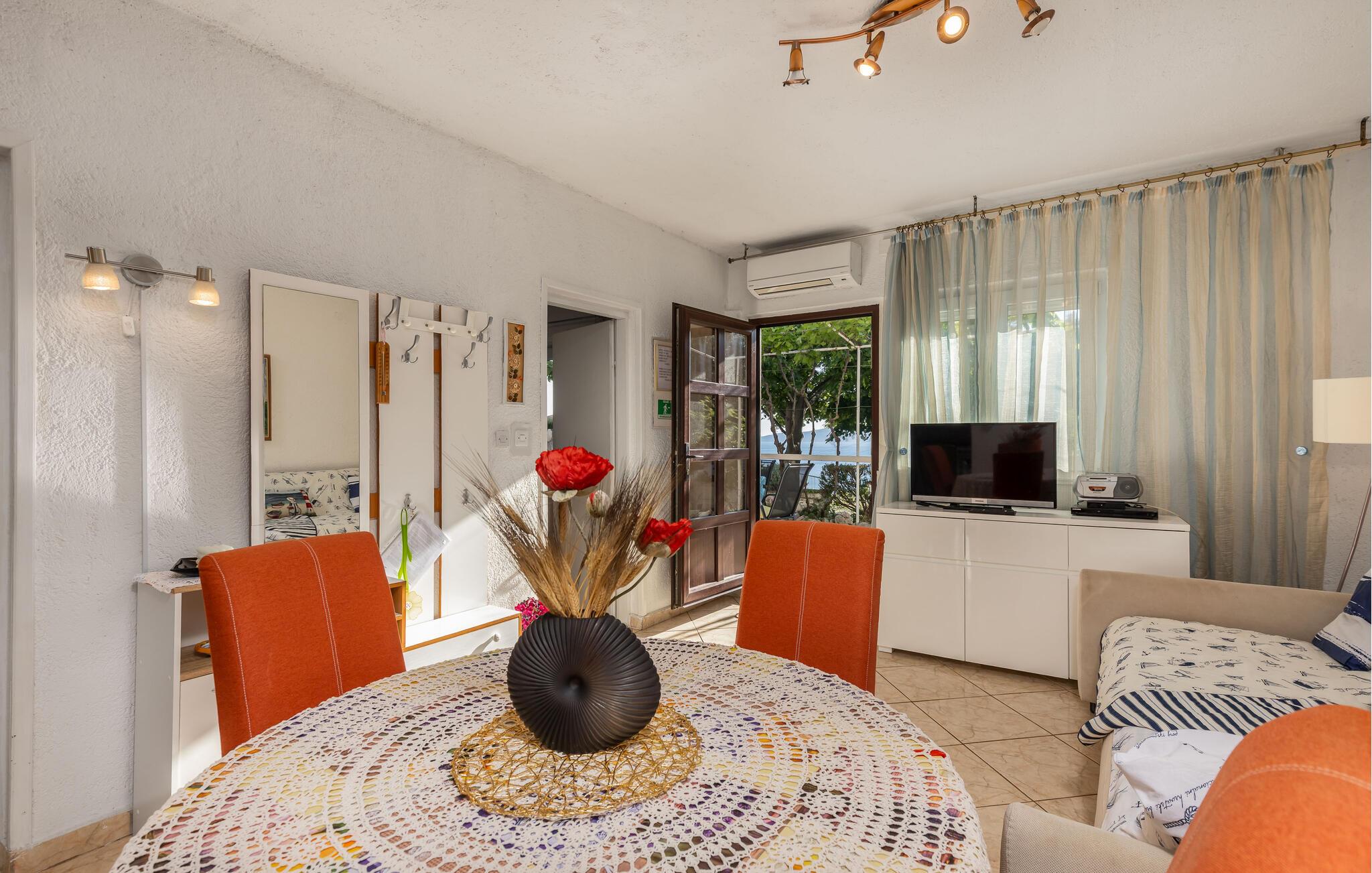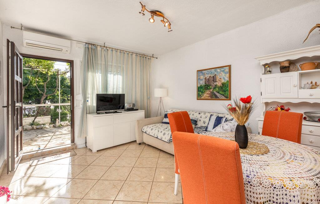 Lad jer fortrylle af Adriaterhavskystens betagende natur, som denne venlige ferielejlighed tilbyder jer. Tilbered jeres livretter i det lyse og indbydende køkken, og brug dens dejlige stemning til at arrangere spilleaftener sammen. Efter en solskinsdag kan I sætte fødderne op og gøre jer godt tilpas i den hyggelige sofa med en god bog.
