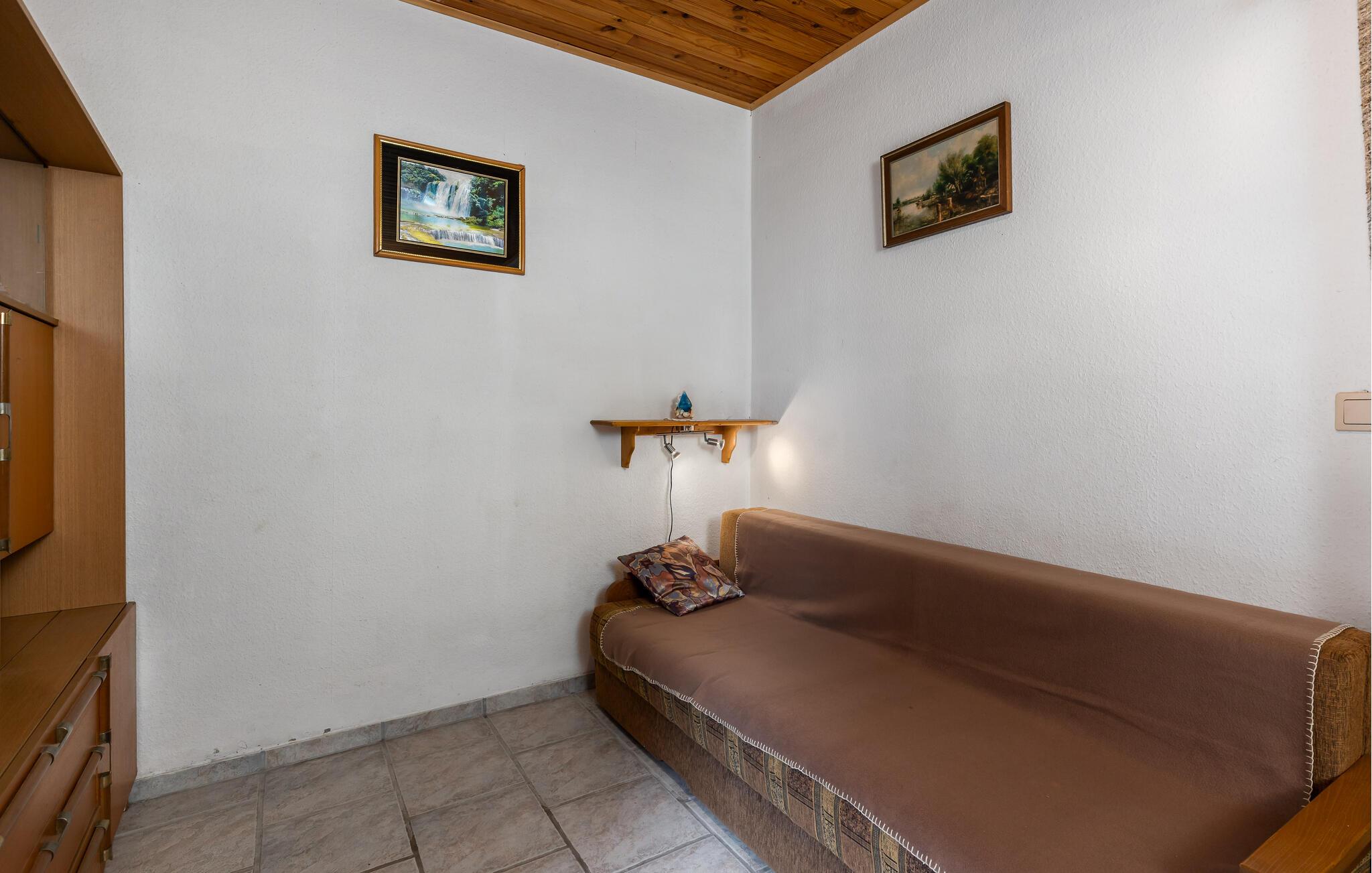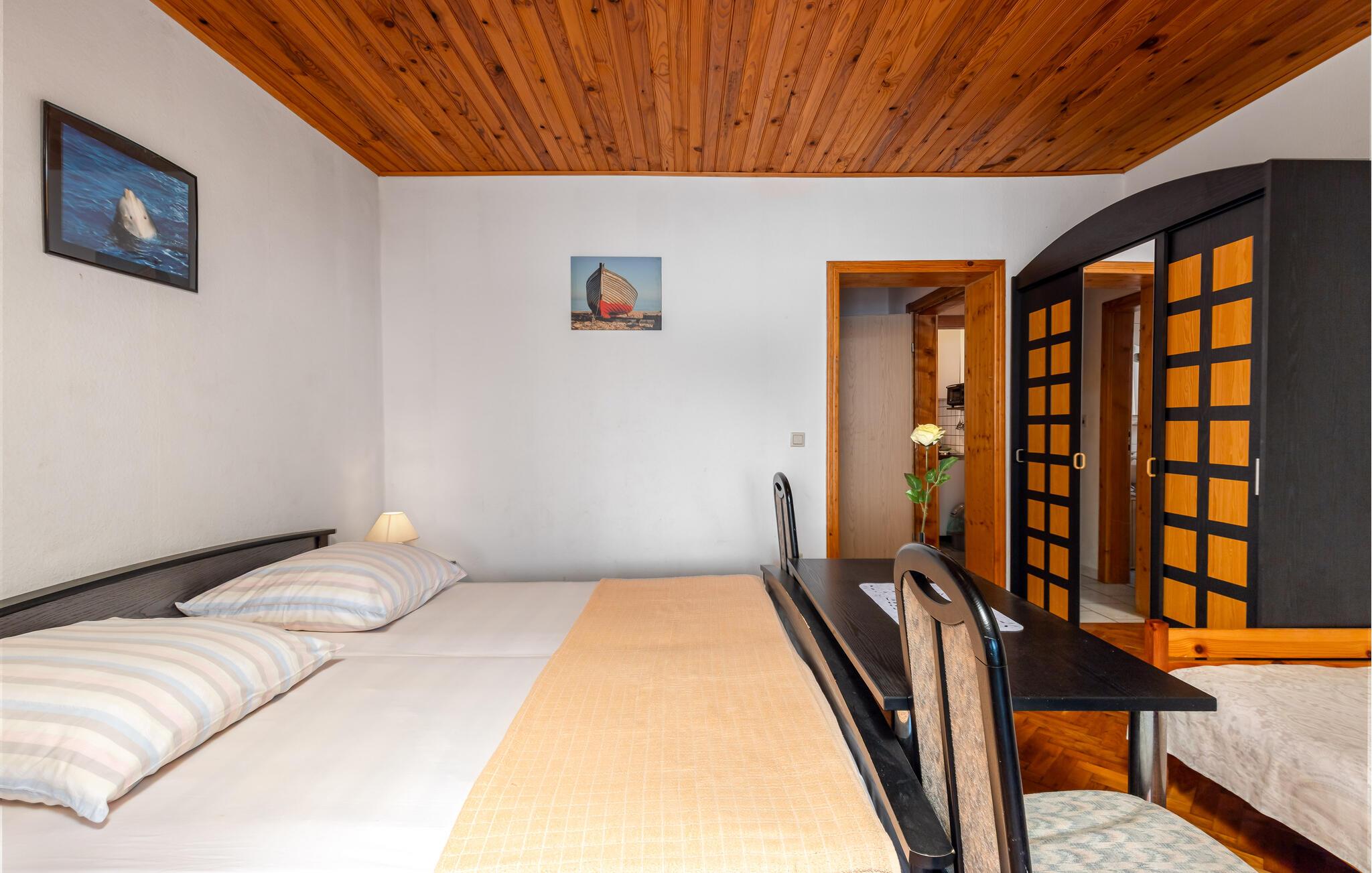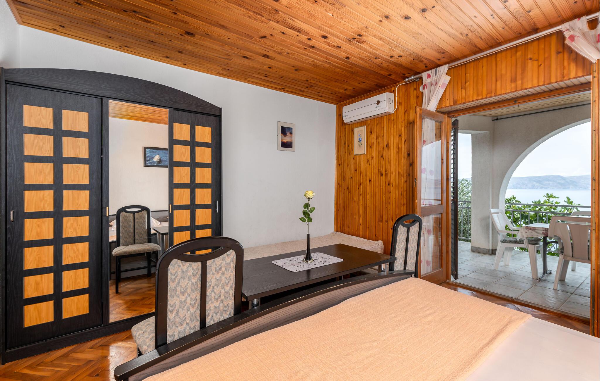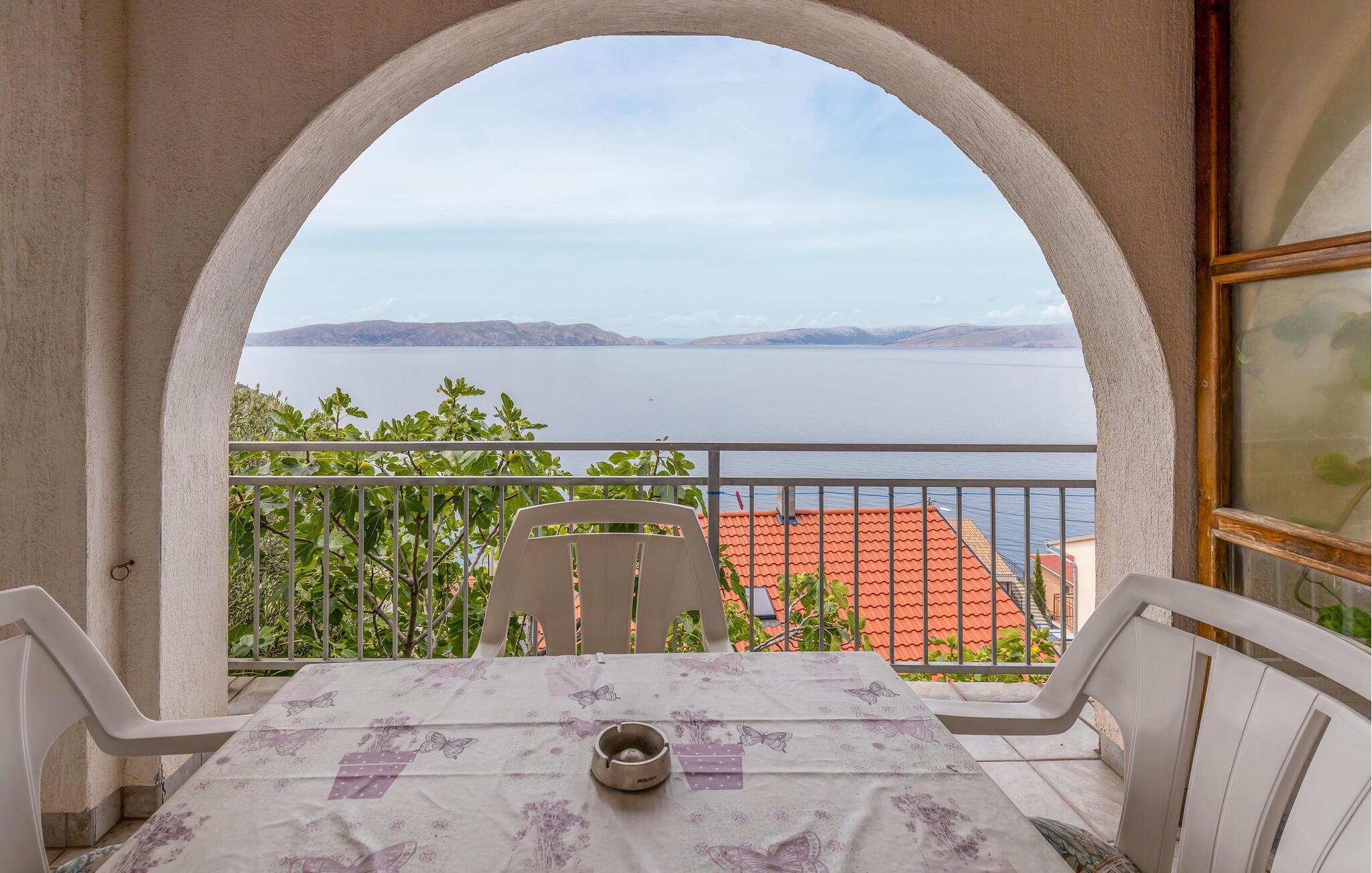 Tilbring en uforglemmelig ferie i denne charmerende ferielejlighed med betagende havudsigt. Lejligheden tilbyder det perfekte tilflugtssted for afslappende dage væk fra hverdagens travlhed. Nyd den vidtstrakte udsigt over vandet når som helst på dagen, og slap af med samtale eller musik – omgivet af varmt træ, lyse farver og en hyggelig atmosfære. I det moderne køkken kan I tilberede lækre måltider, der smager særligt godt med et glas regional vin. Åbn altandøren om morgenen, indånd den friske havluft, og start dagen med morgenmad på terrassen. Her kan I roligt lægge planer for nye oplevelser. Om aftenen vil solnedgangen med sit farvespil ledsage jer ind i en fredelig nat. Gå en tur til stranden og nyd afslappende timer med svømning, solbadning eller snorkling i det klare vand. Tag en tur til byen Senj med dens imponerende Nehaj-fæstning, smalle gader og udsigt over øerne langs kysten. Omkring Sveti Juraj inviterer rolige kyststier og små stier til slentreture og vandreture. For aktive feriegæster er den nærliggende Velebit Nationalpark med sine imponerende landskaber en spændende destination.