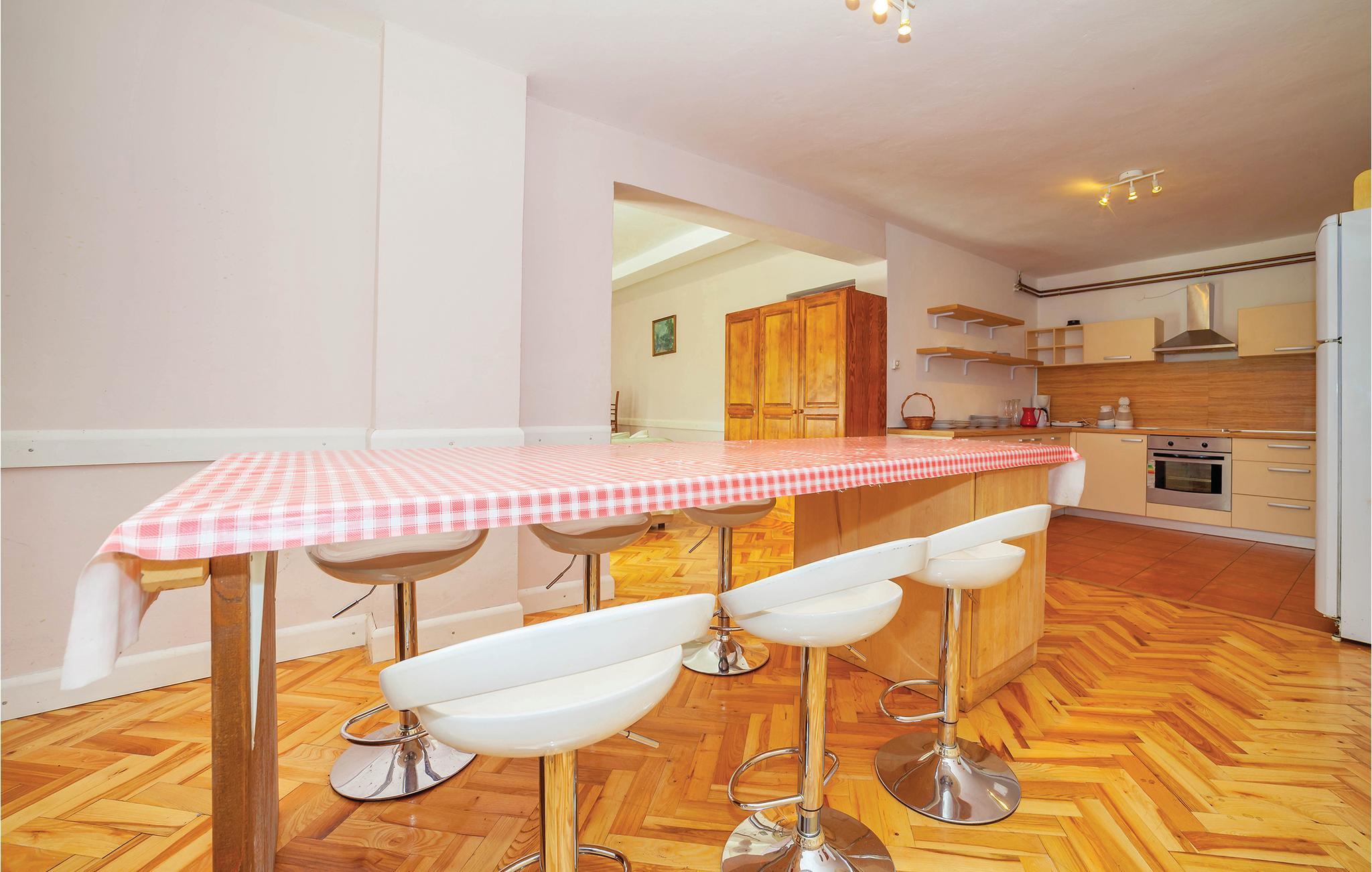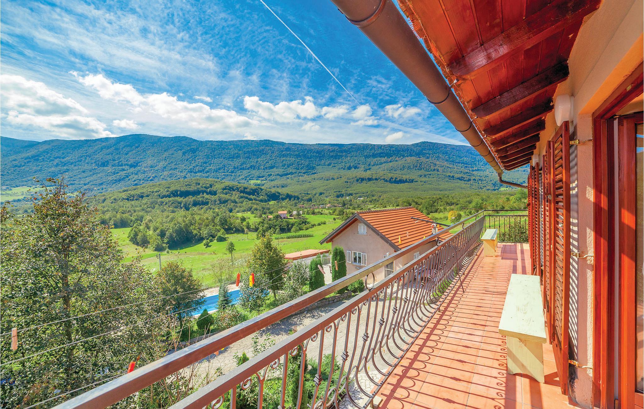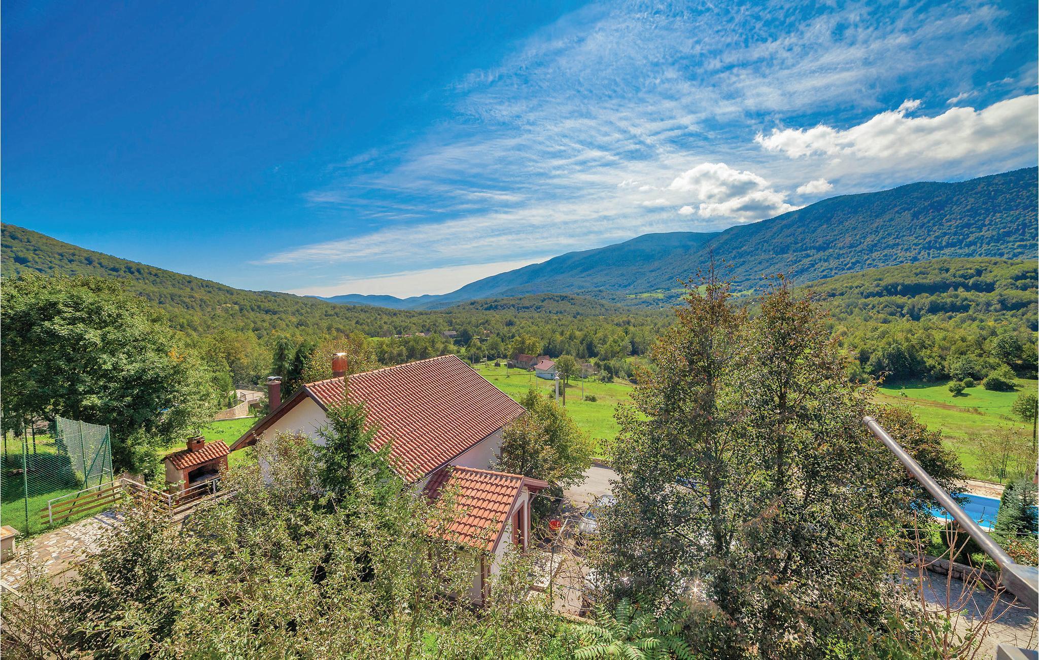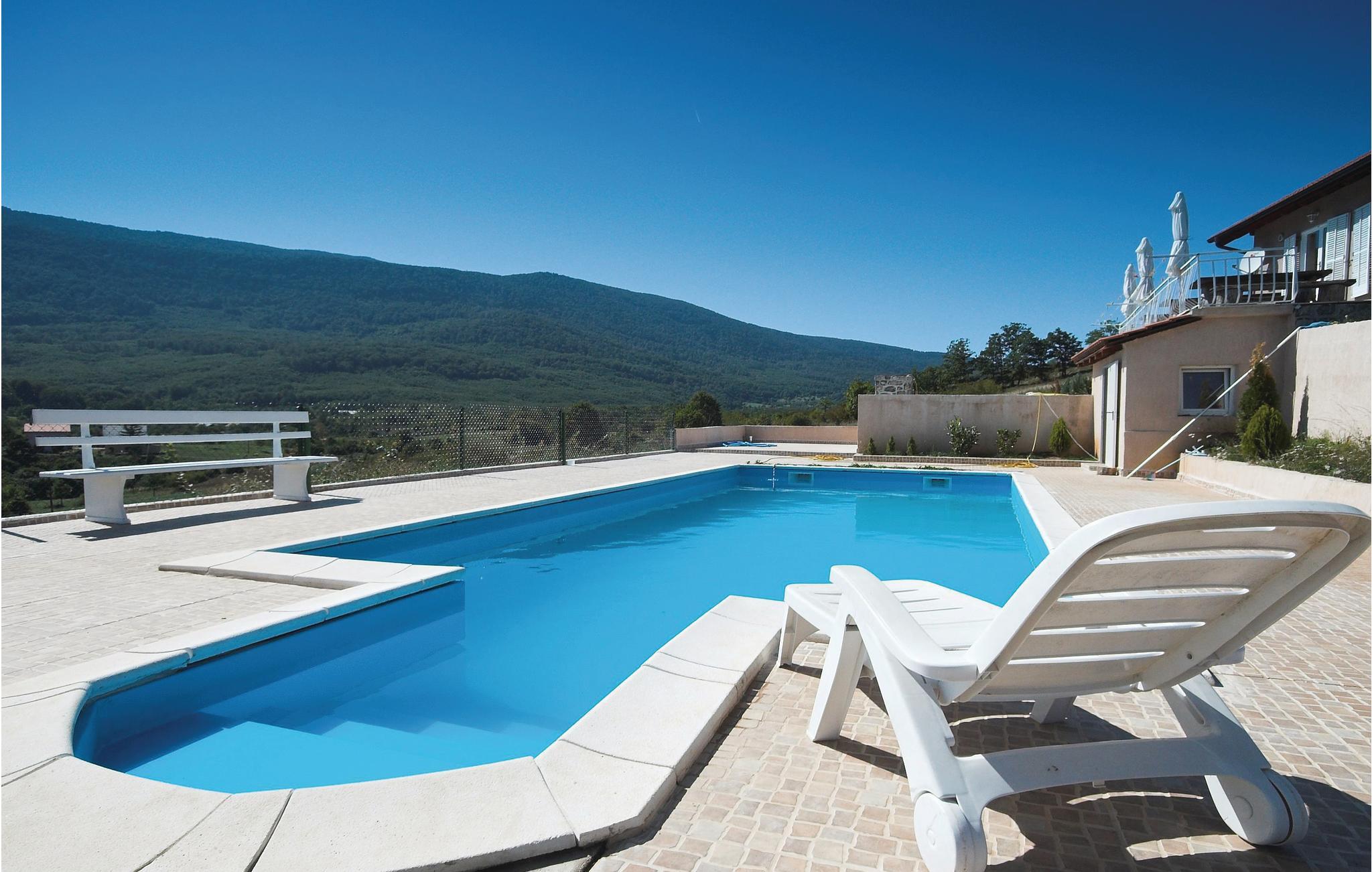 Dette feriehus er beliggende i den lille landsby Crni Kal i Velebit bjergene. Stedet er ideelt til et afslappende ophold i rolige omgivelser og smuk natur. Huset består af syv soveværelser og en stue i stueetagen med køkken, som står til rådighed foralle gæsterne. De øvrige etager har også hver et lille køkken. Alle værelserne i huset er praktisk indrettede. På den rummelige terrasse ved siden af huset kan I nyde de milde aftener, når I spiser lækre grillretter. Alle sportslige gæster har en lille fodboldbane, bordtennis og en 50 m² stor pool til rådighed fælles med gæsterne fra CKV180. Fra poolområdet har I en herlig udsigt over det fortryllende landskab. Besøg den nærliggende nationalpark Velebit med fantastiske udsigtspunkter, høje klatreklipper og talrige huler og den imponerende tal Gacka dolina. Den vidunderlige nationalpark Plivic-Søerne, der er Kroatiens største nationalpark, ligger kun en times kørsel væk.